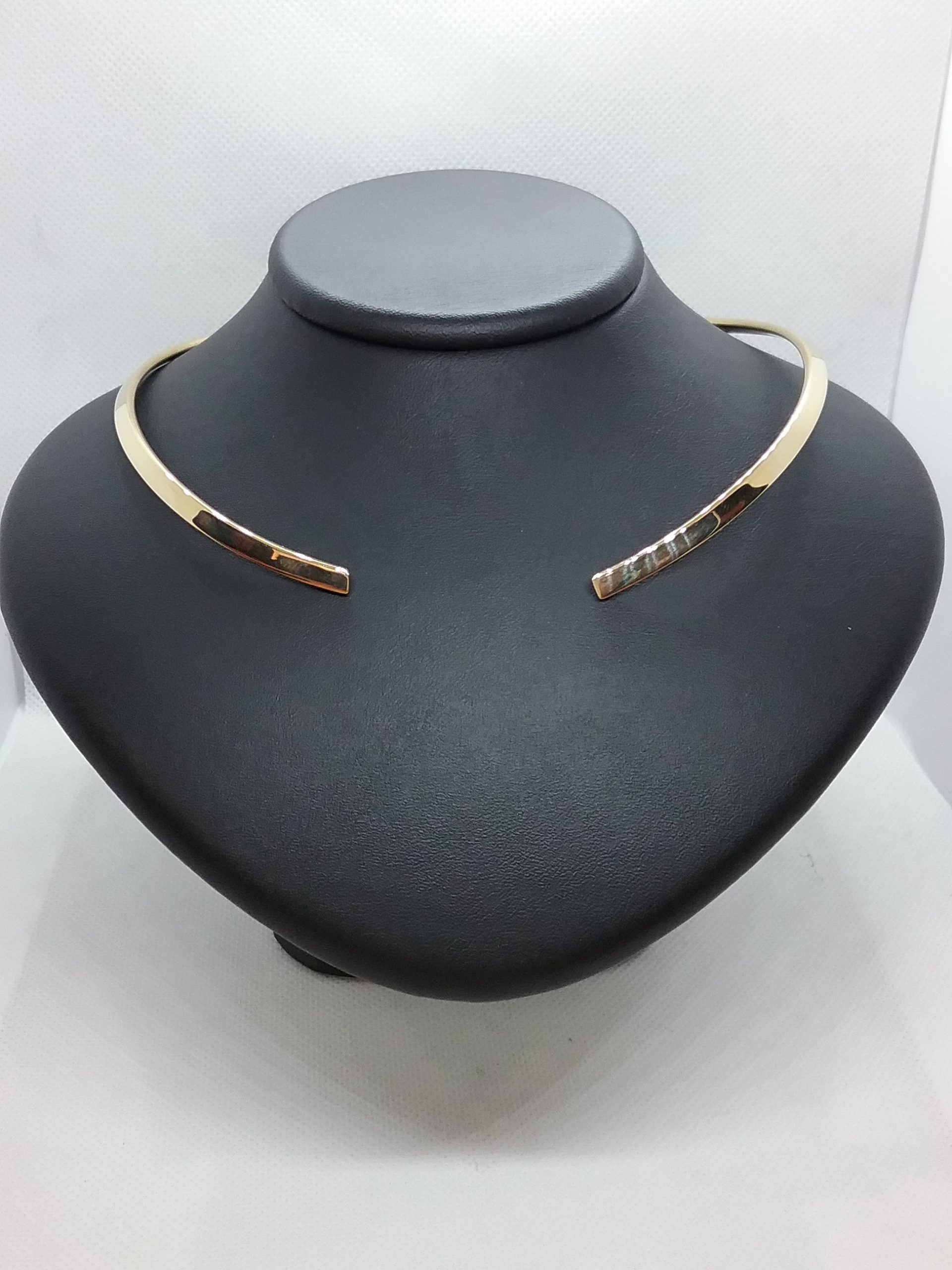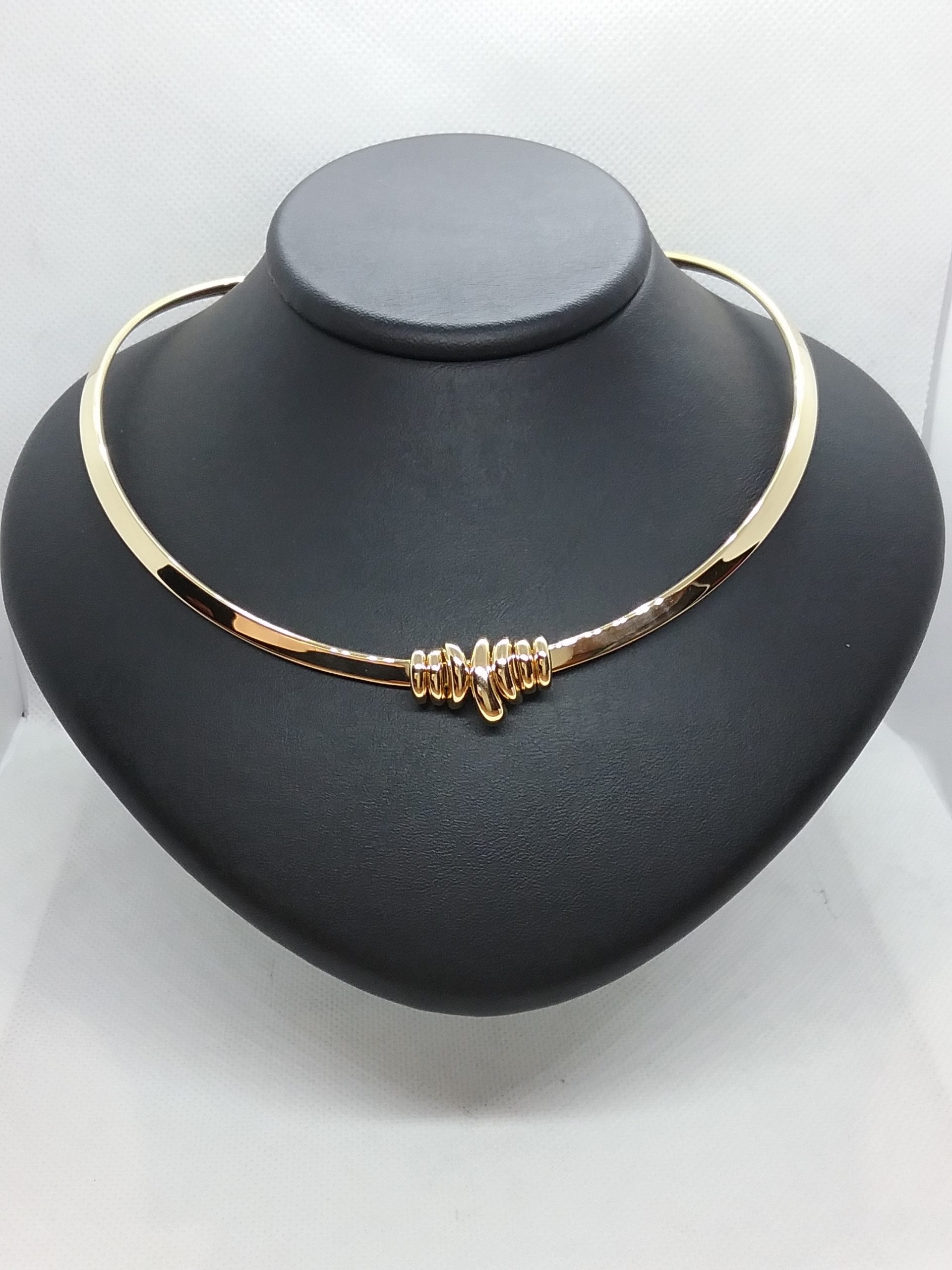 Collier torque flexible ouvert en or jaune 750/1000e pesant 21,55 gr avec motif godron devant