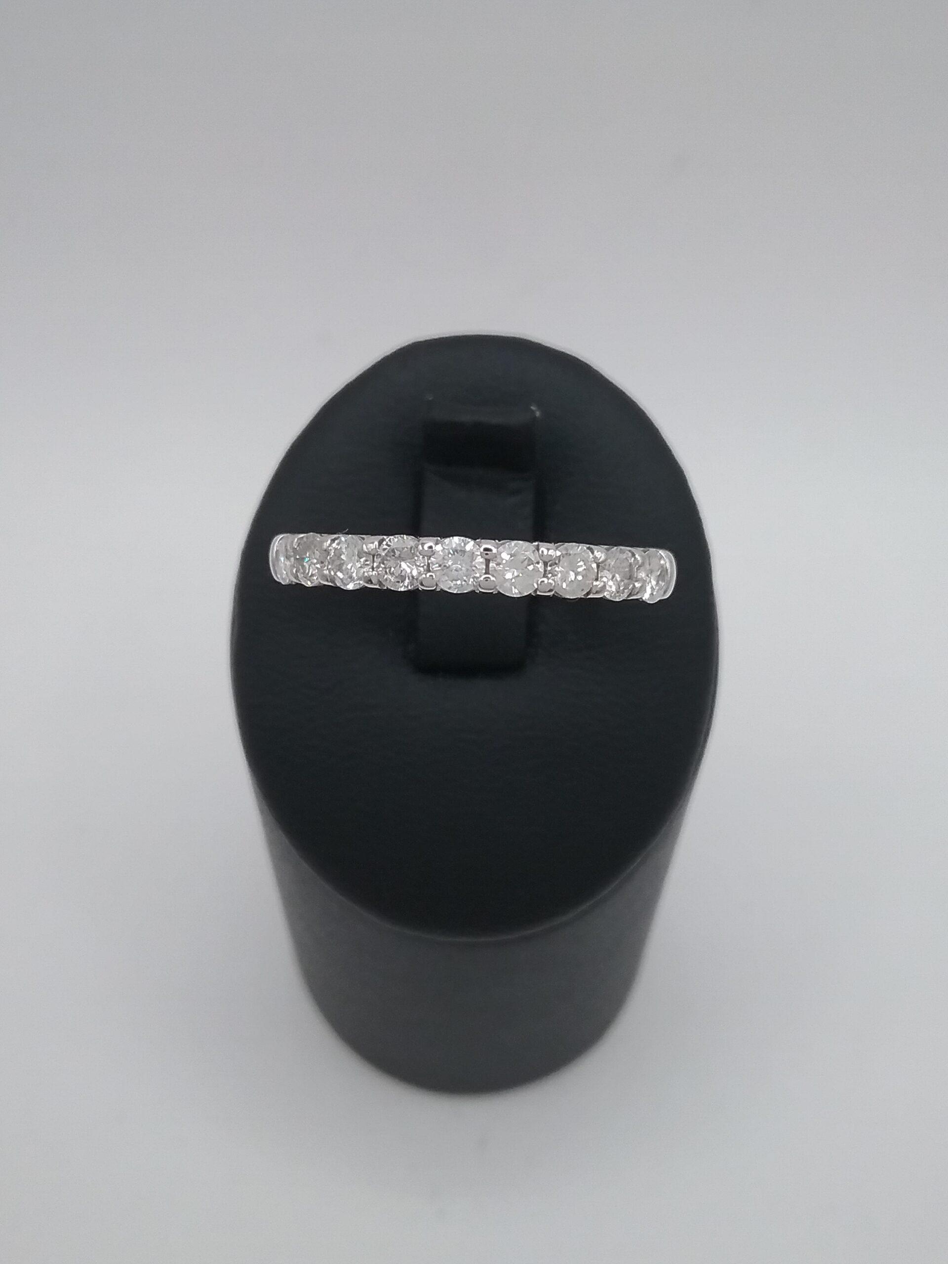 Alliance en or blanc 750/1000e pesant 2,25 gr sertie de 9 diamants d’un poids total de 0,45 ct