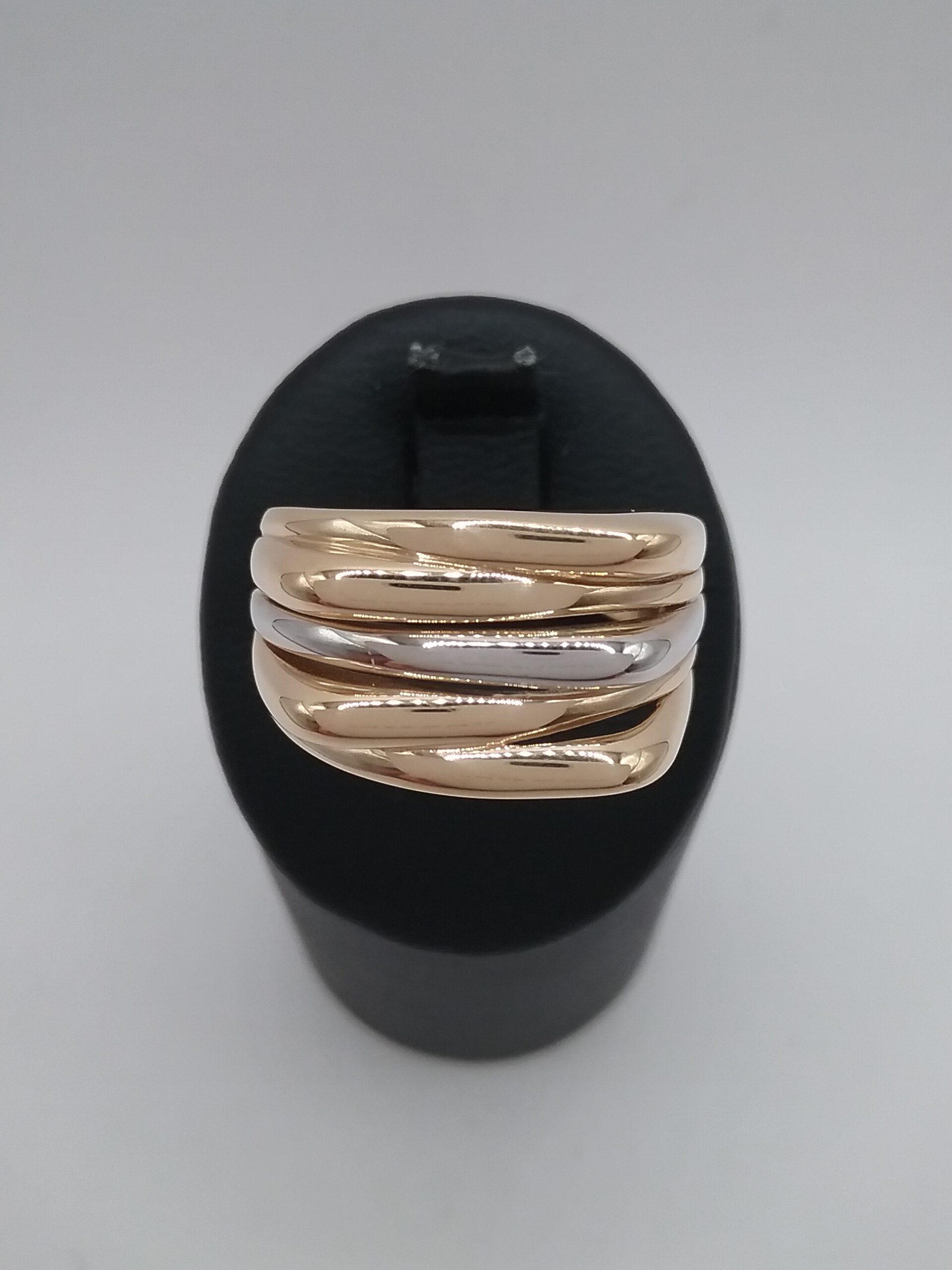 Bague en or jaune et blanc 750/1000e pesant 4,45 gr forme carrée 5 rangs