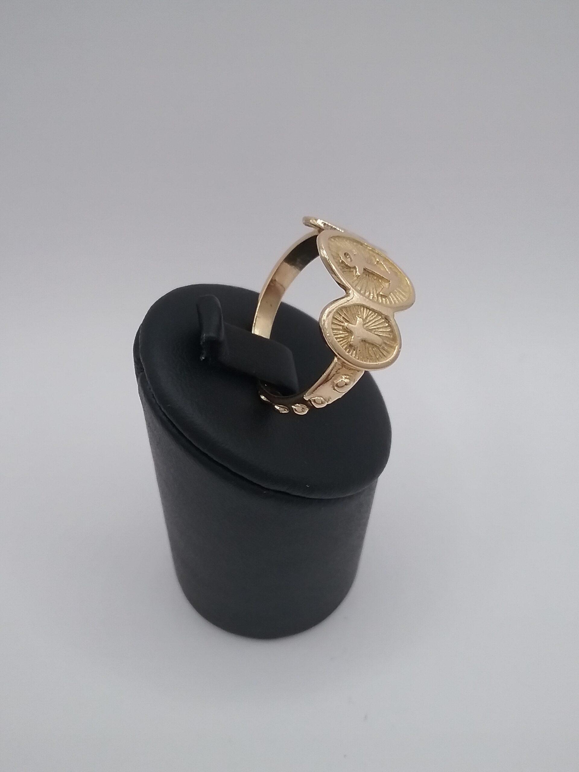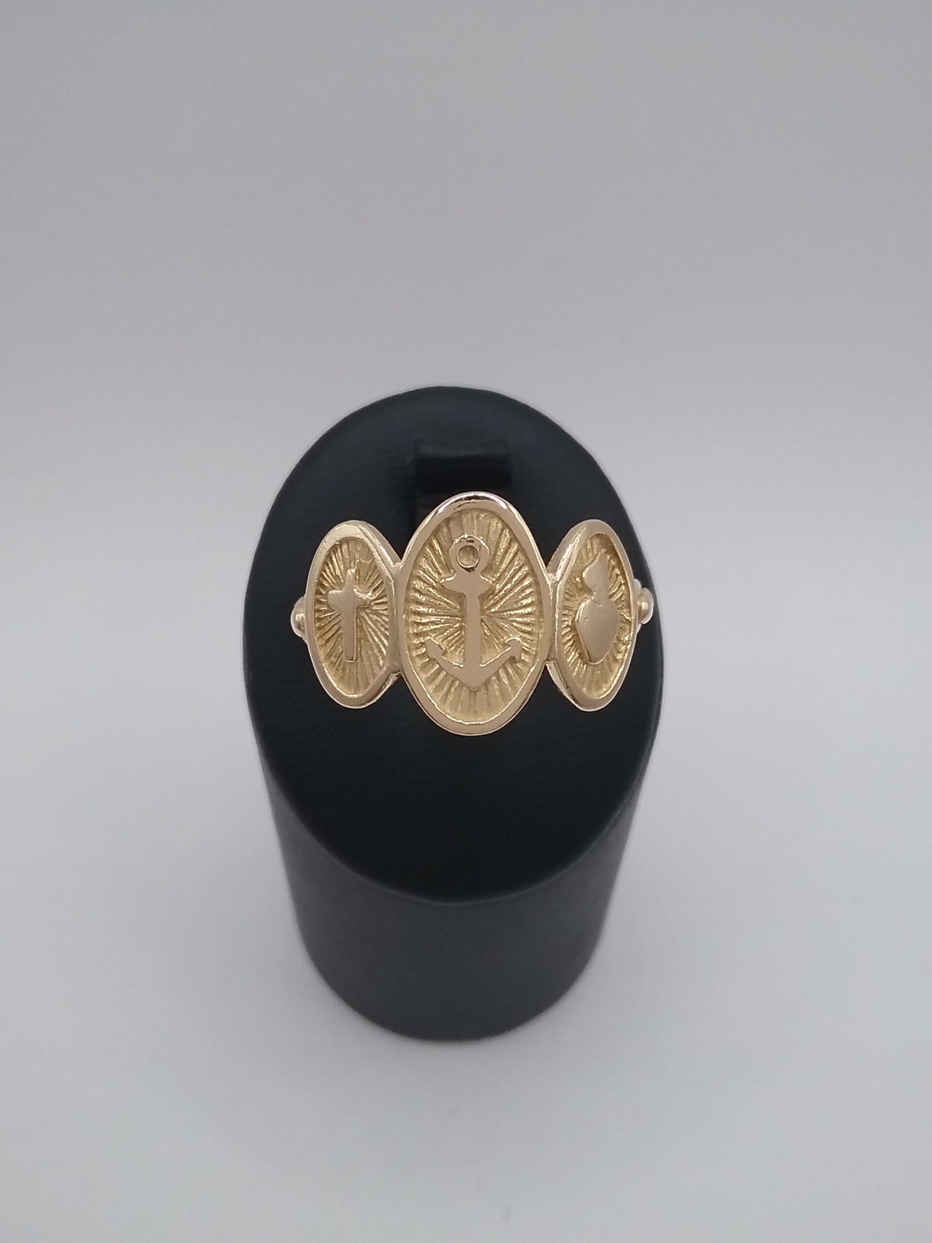 Bague en or jaune 750/1000e pesant 4,24 gr « capelet » composée de 3 motifs ovales foi, espérance , charité
