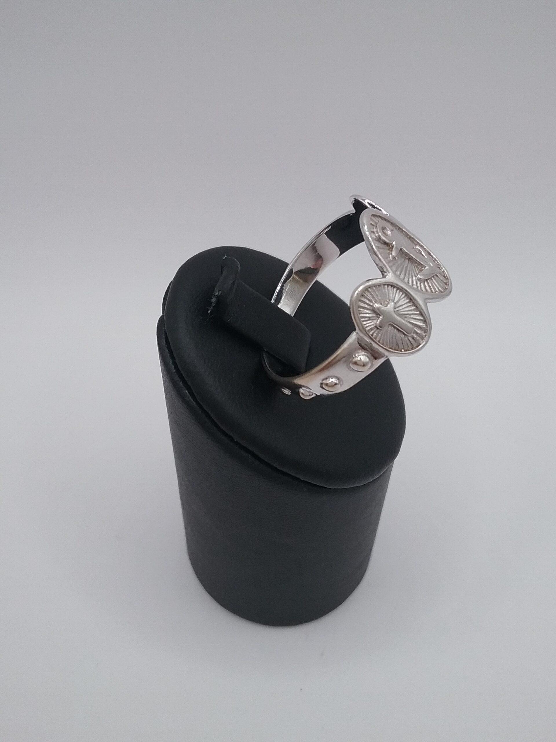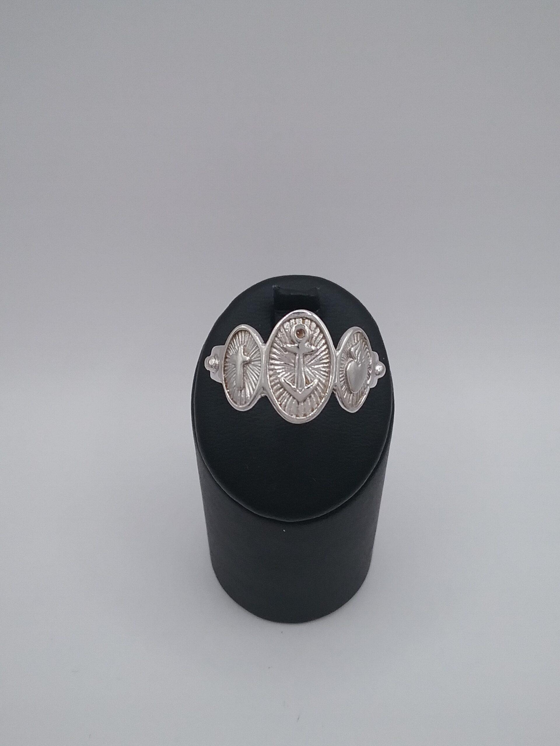 Bague en or blanc 750/1000e pesant 4,62 gr « capelet » composée de 3 motifs ovales foi, espérance, charité