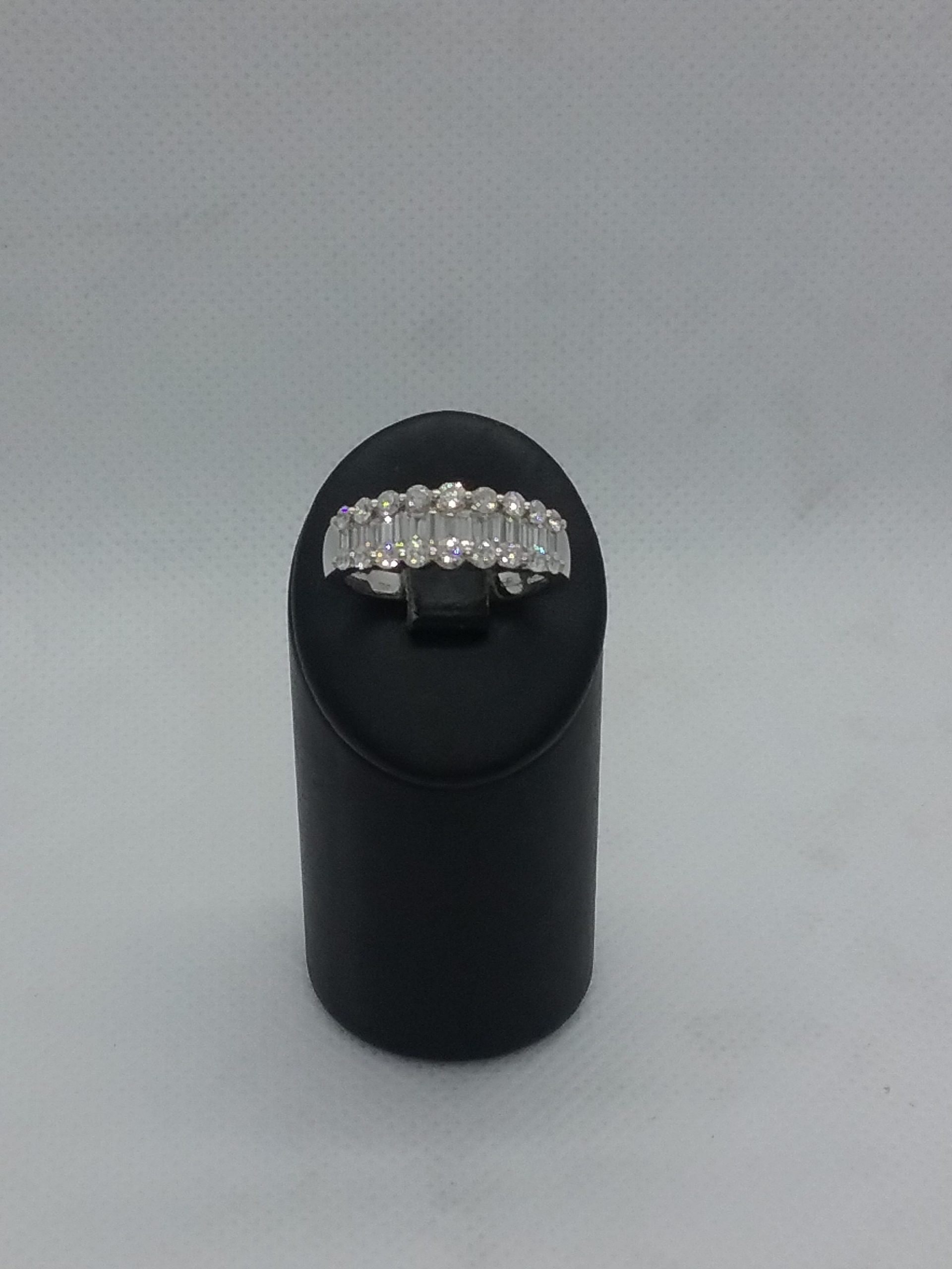 Bague en or blanc 750/1000e pesant 5,50 gr sertie de diamants taille baguette et brillants 1,20 ct