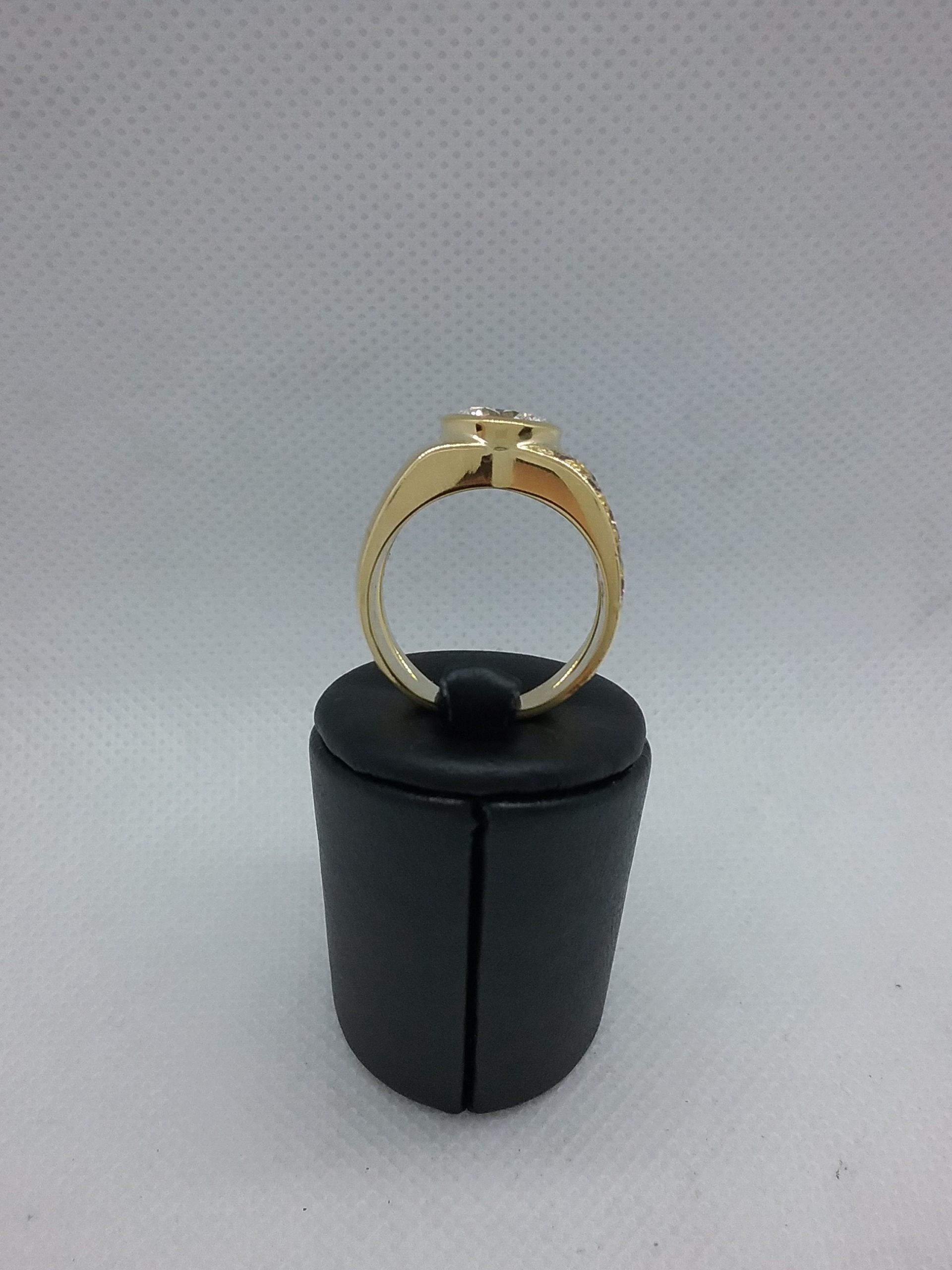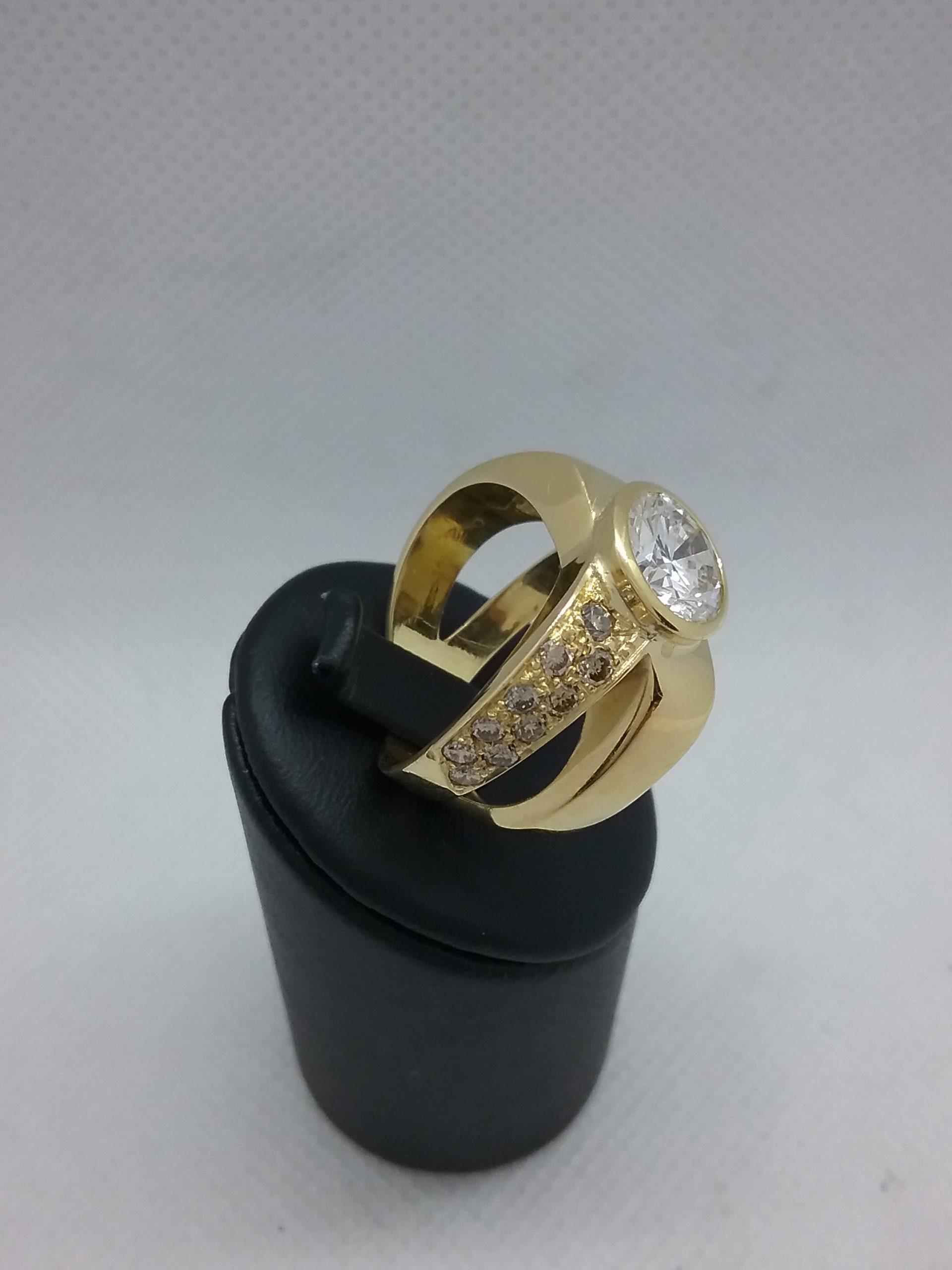 Bague en or jaune 750/1000e pesant 13,67 gr sertie d’un diamant central de 2 carats HSI et de 10 diamants jaunes d’un poids total de 0,50 ct