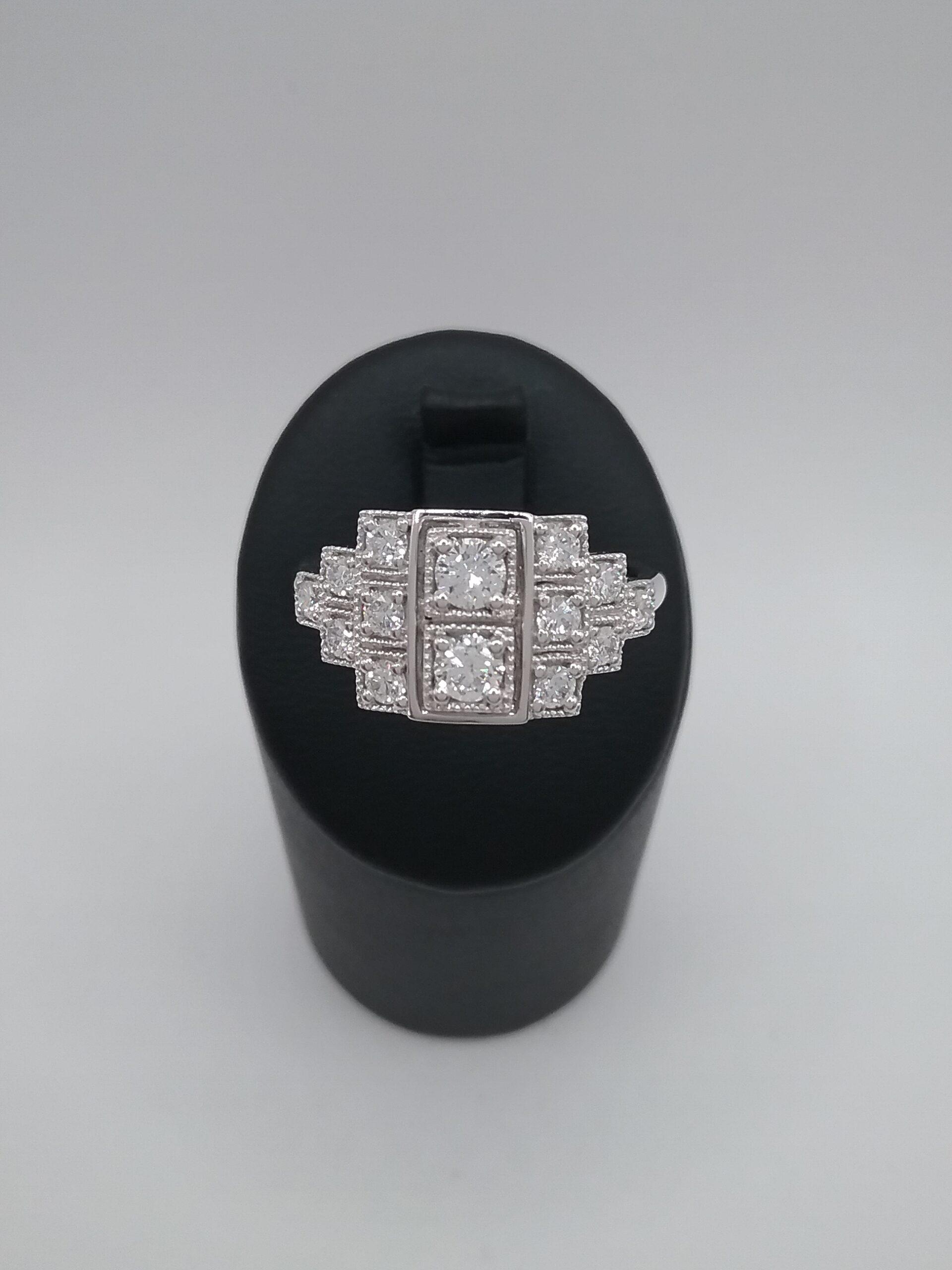 Bague en platine pesant 5,70 gr sertie de diamants d’un poids total de 0,65 ct