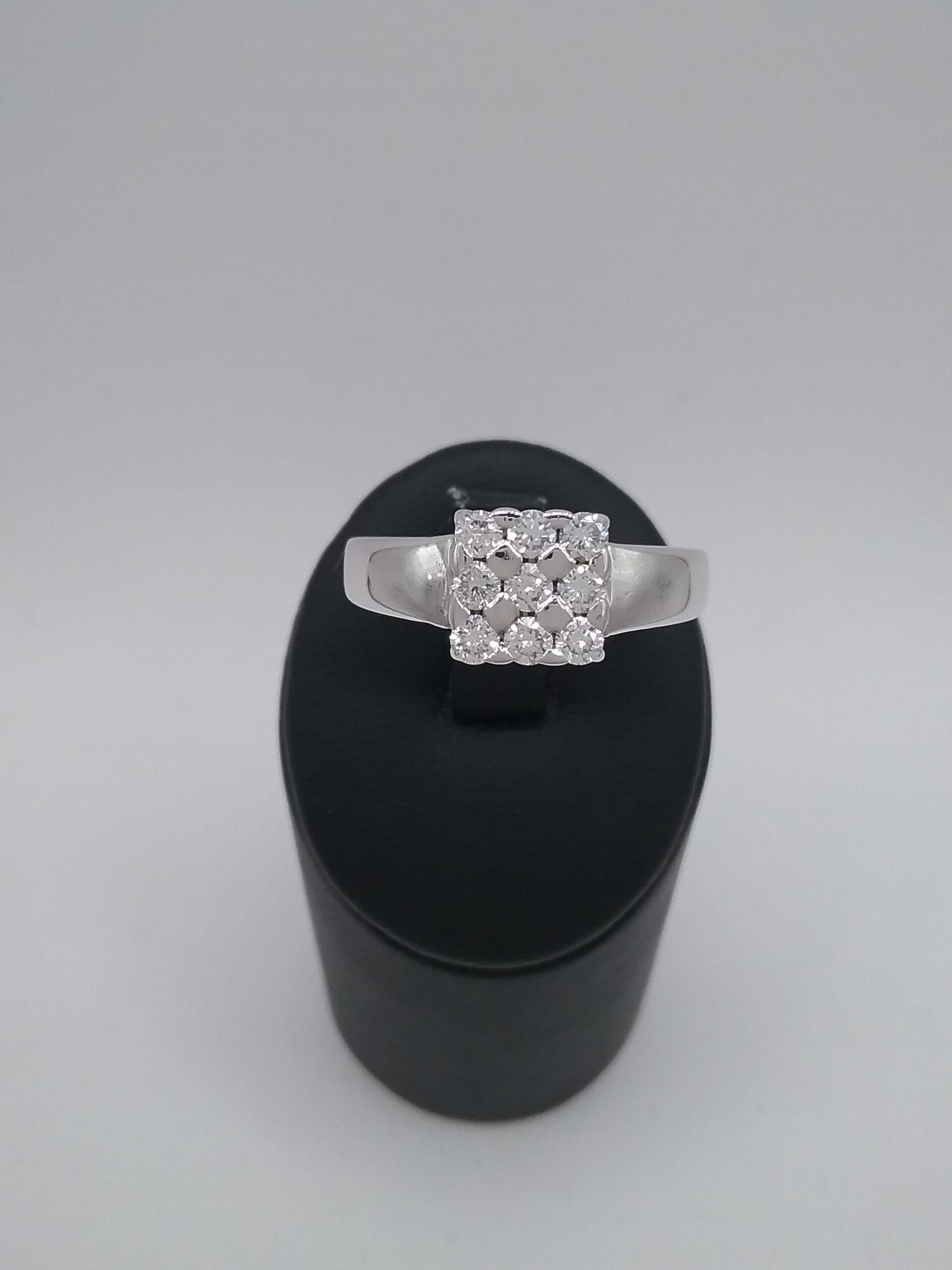 Bague en or blanc 750/1000e pesant 5,84 gr sertie de 9 diamants d’un poids total de 0,27 ct