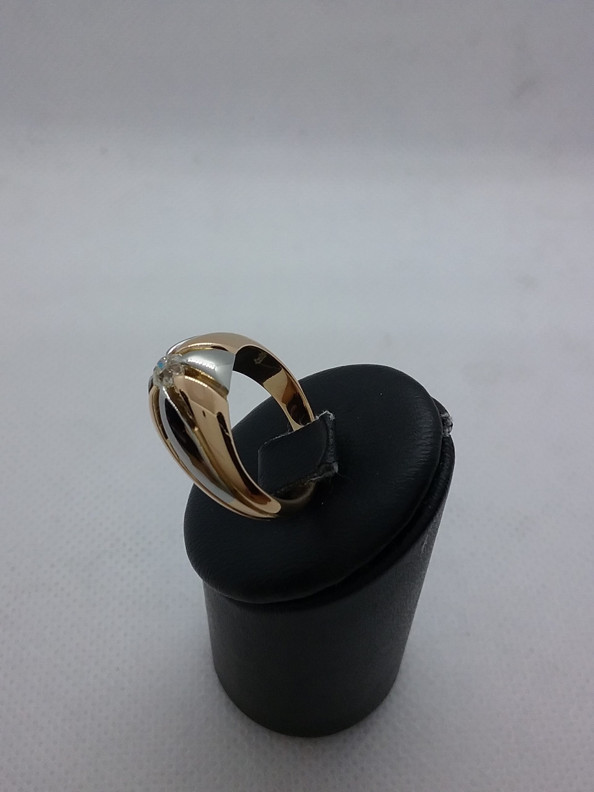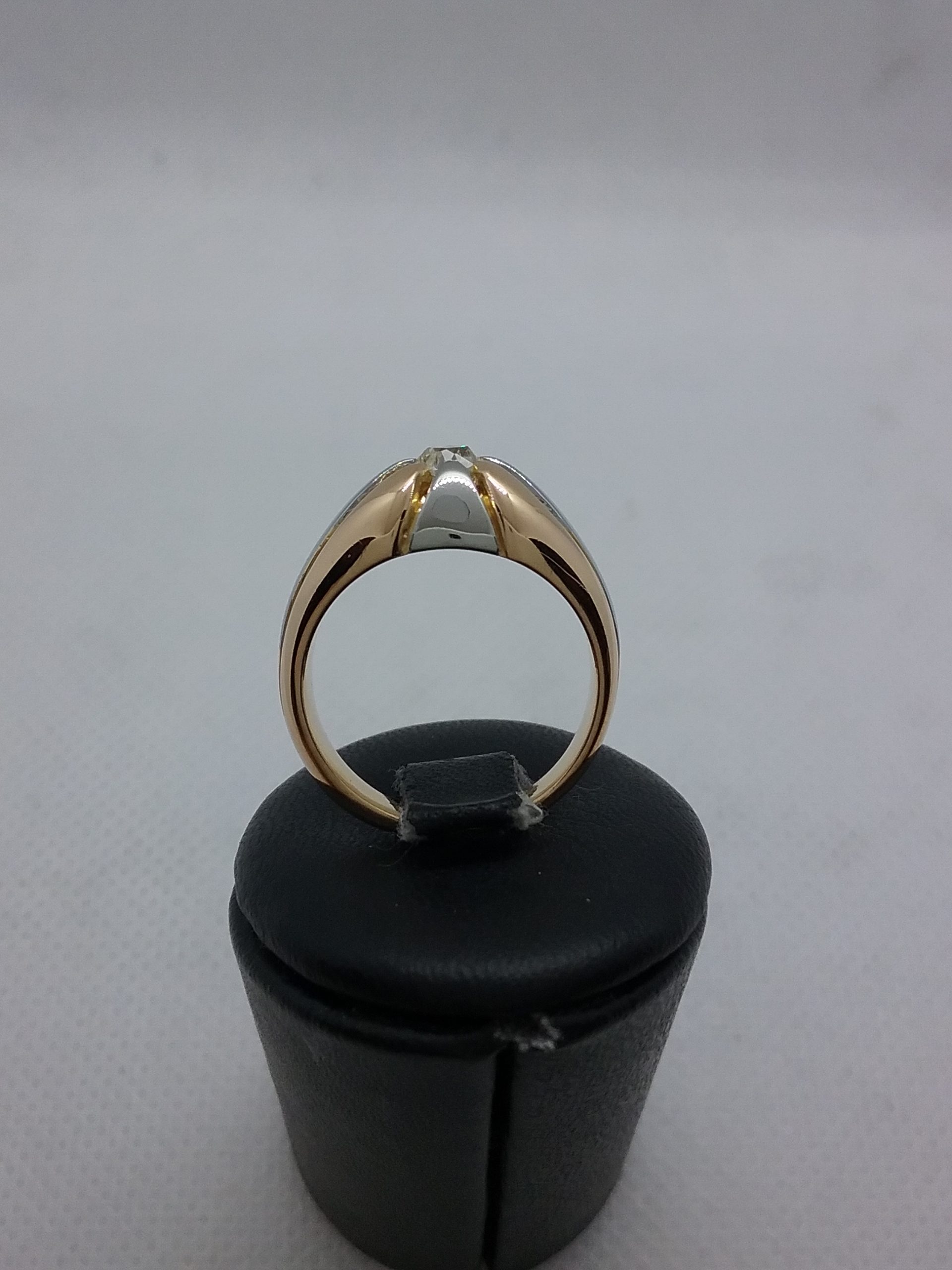 Bague en or bicolore 750/1000e pesant 9,21 gr sertie d’un diamant taille ancienne de 0,25 ct