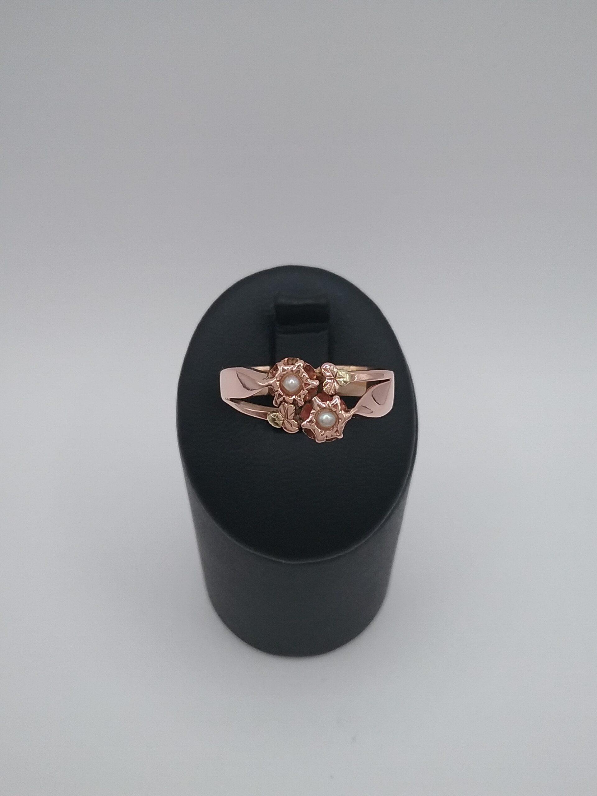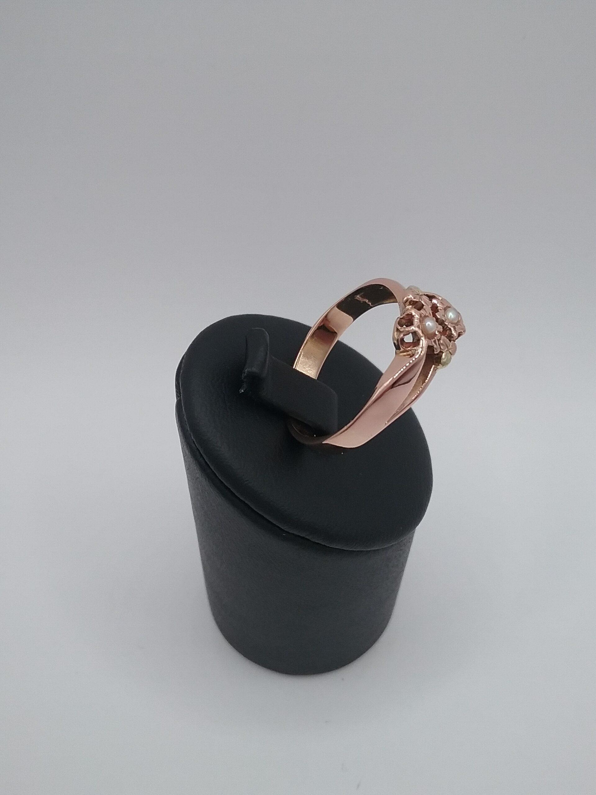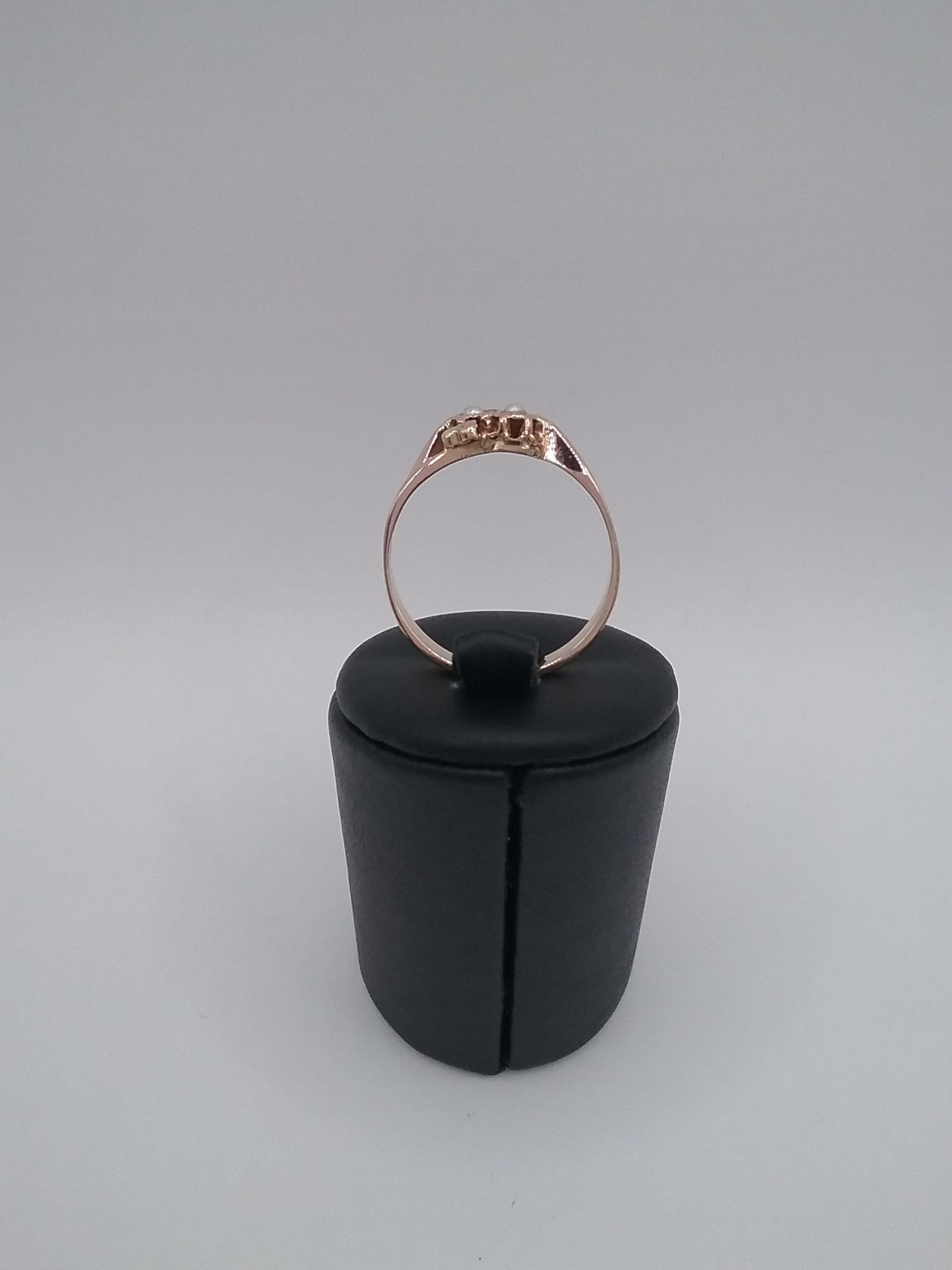 Bague en or rose 750/1000e pesant 2,75 gr sertie de 2 perles fines