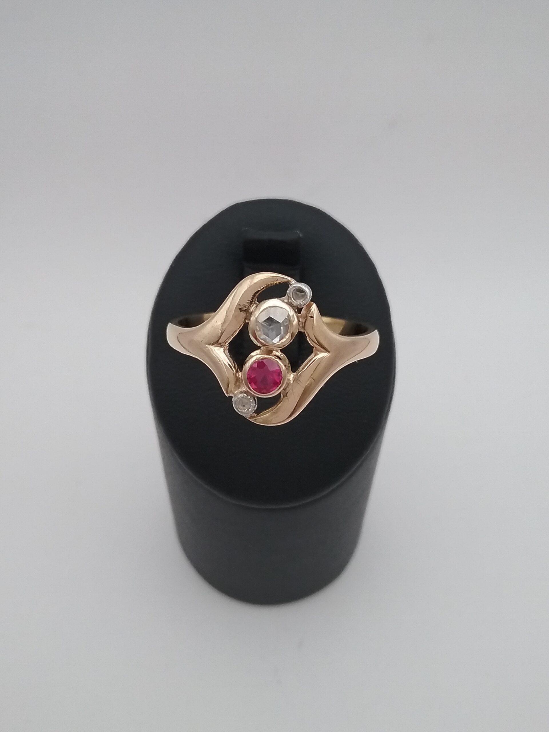 Bague en or jaune 750/1000e pesant 3,32 gr sertie d’un rubis et d’un diamant