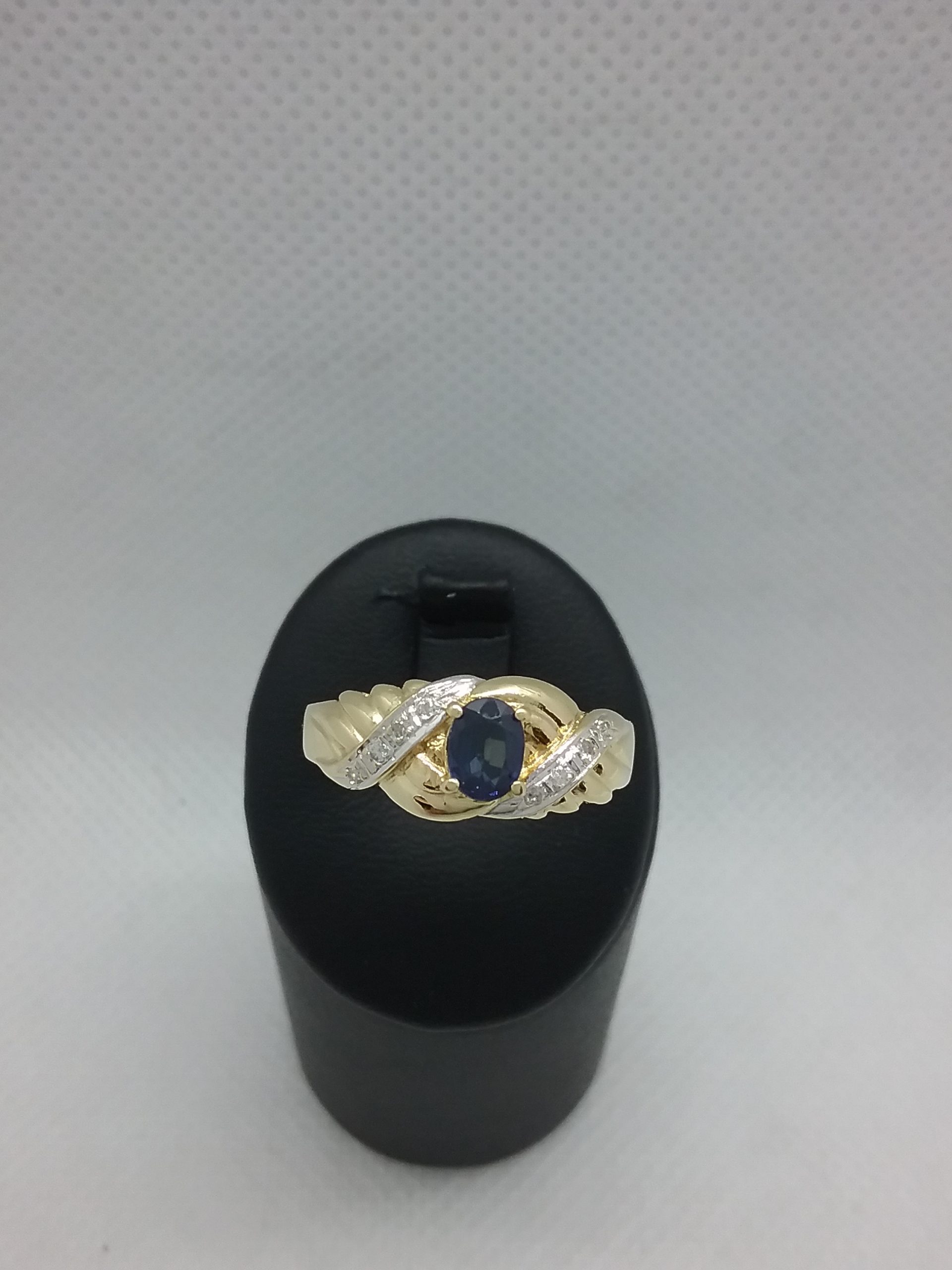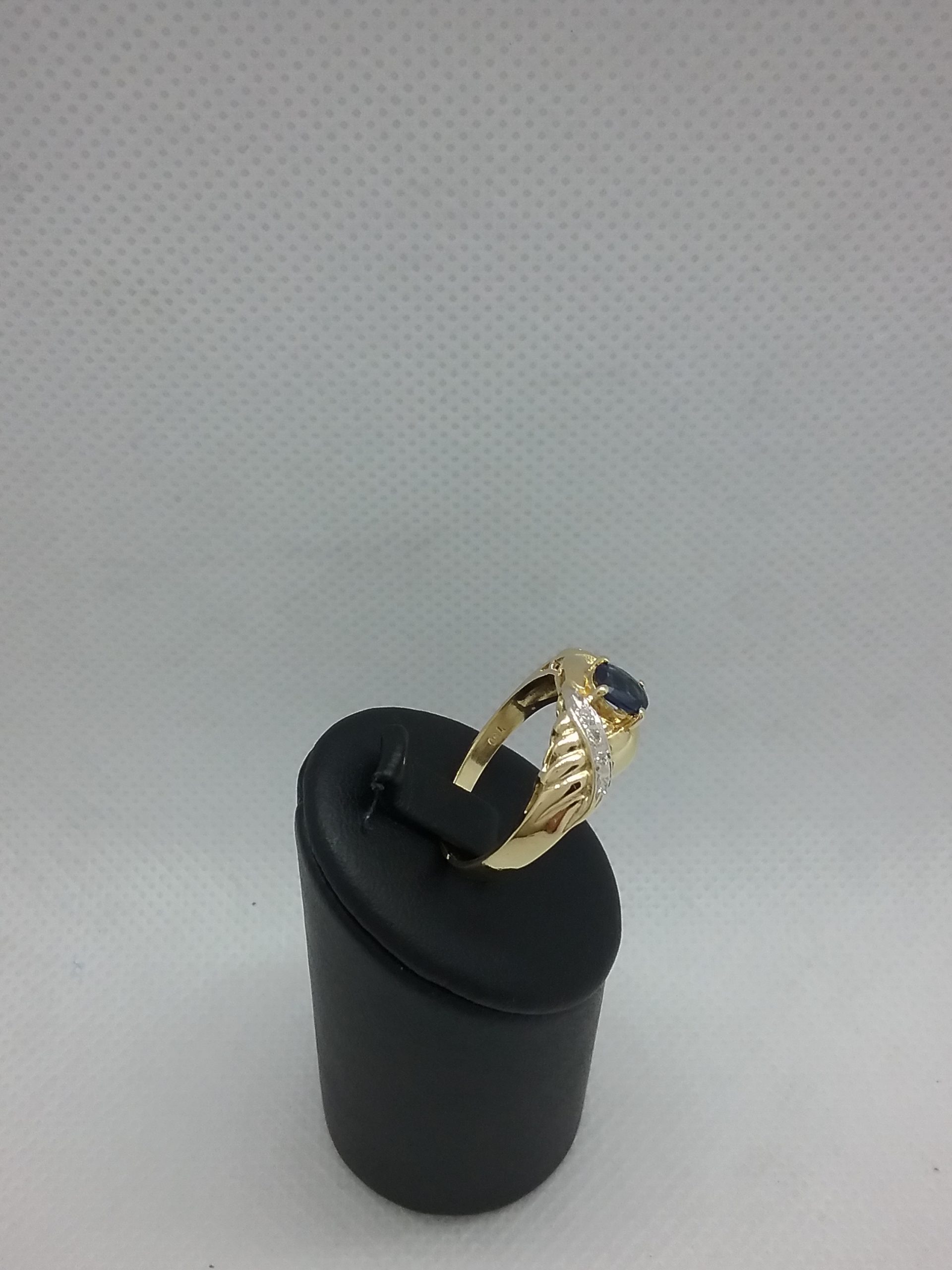 Bague en or bicolore 750/1000e pesant 3,42 gr sertie d’un saphir de 0,50 ct de diamants de 0,05 ct