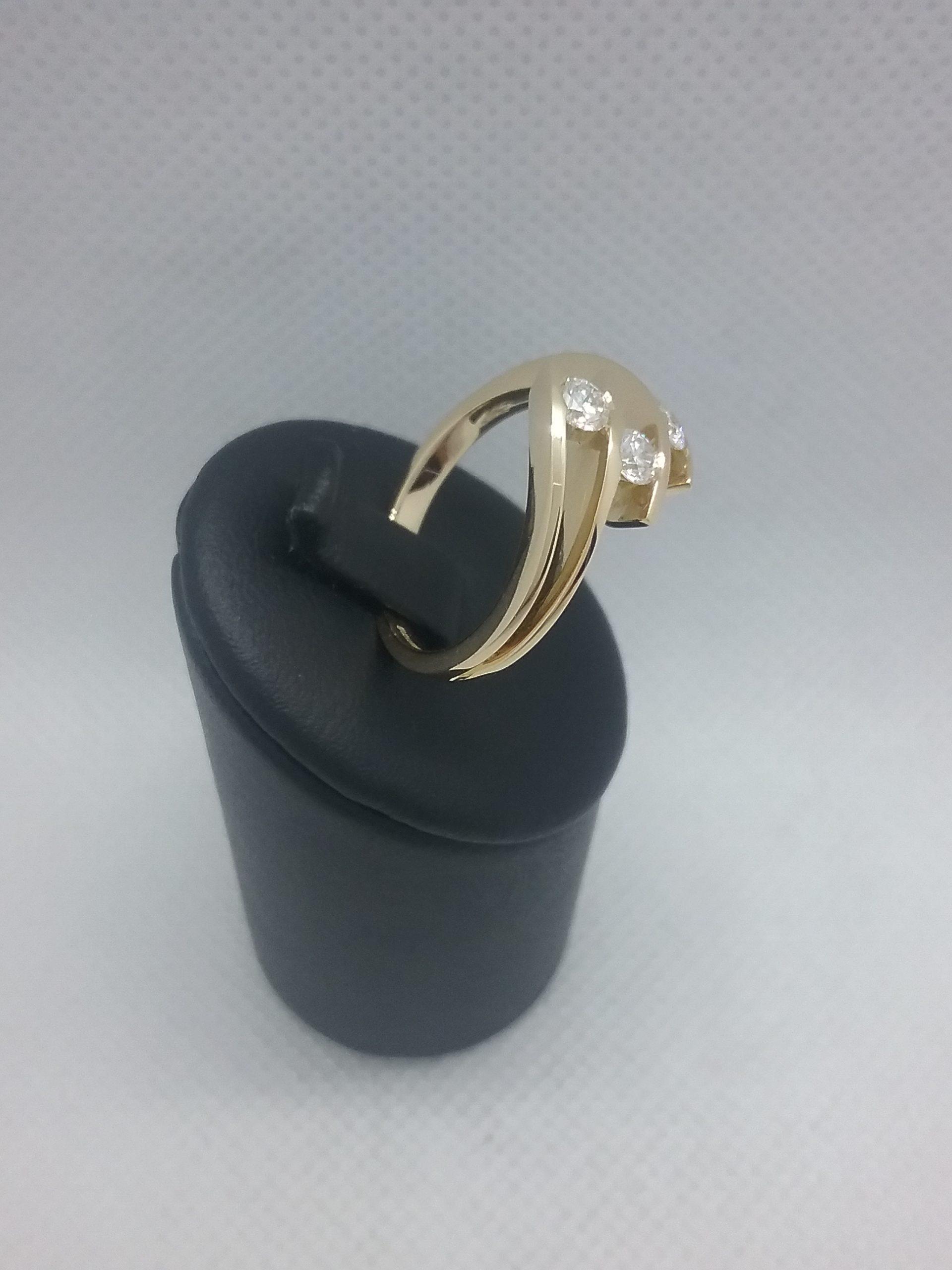 Bague en or jaune 750/1000e pesant 4,20 gr trilogie diamant 0,10 ct x 3