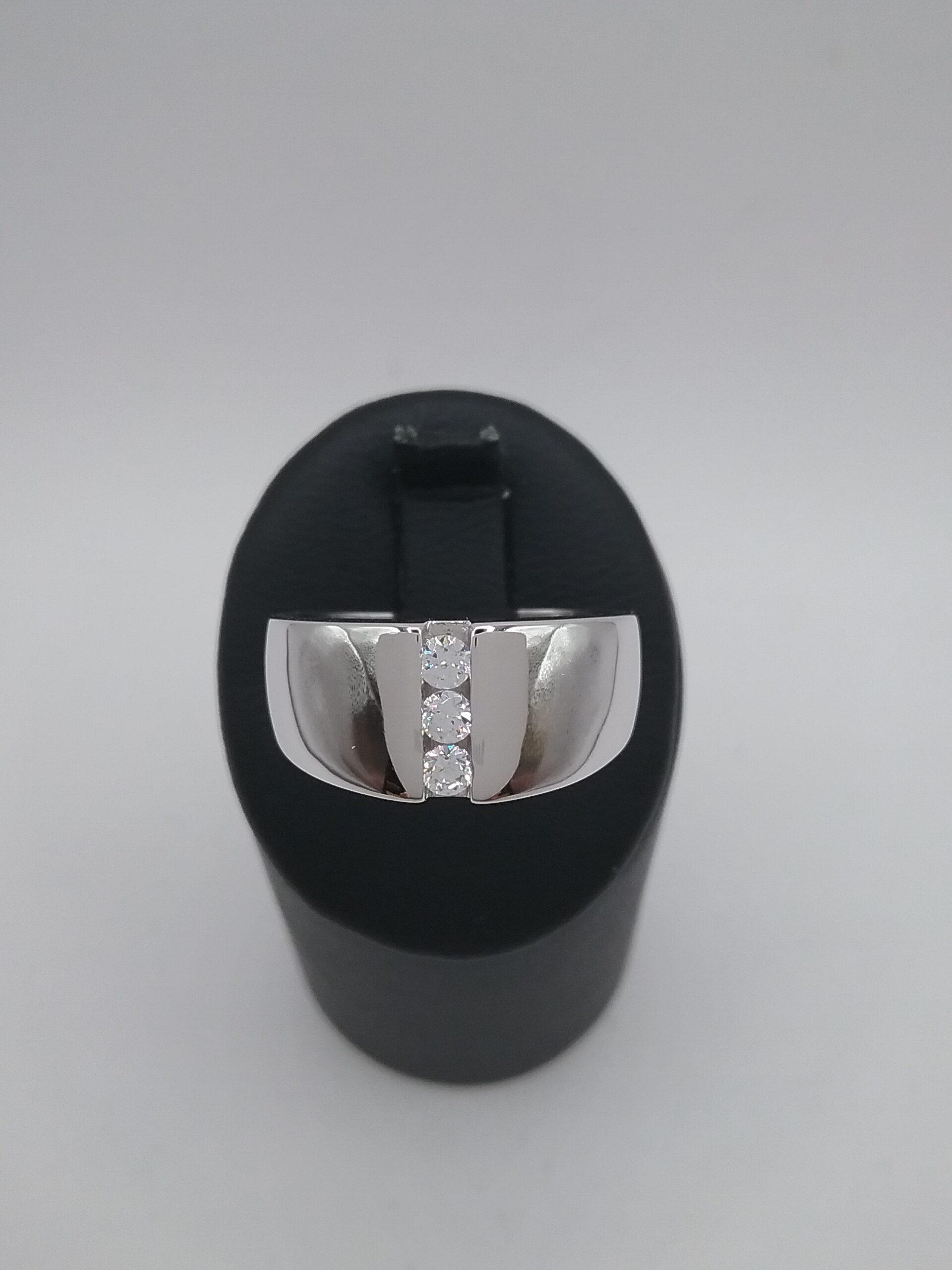 Bague en or blanc 750/1000e pesant 3,84 gr sertie de 3 diamants d’un poids total de 0,12 ct