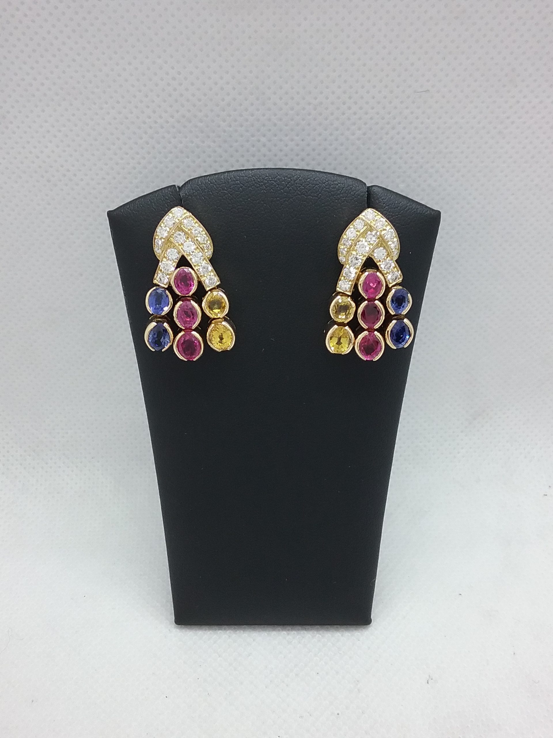 serties de 6 saphirs roses, 4 saphirs jaunes, 4 saphirs bleus d’un poids total de 5 carats en taille ovale et d’1,10 ct de diamant