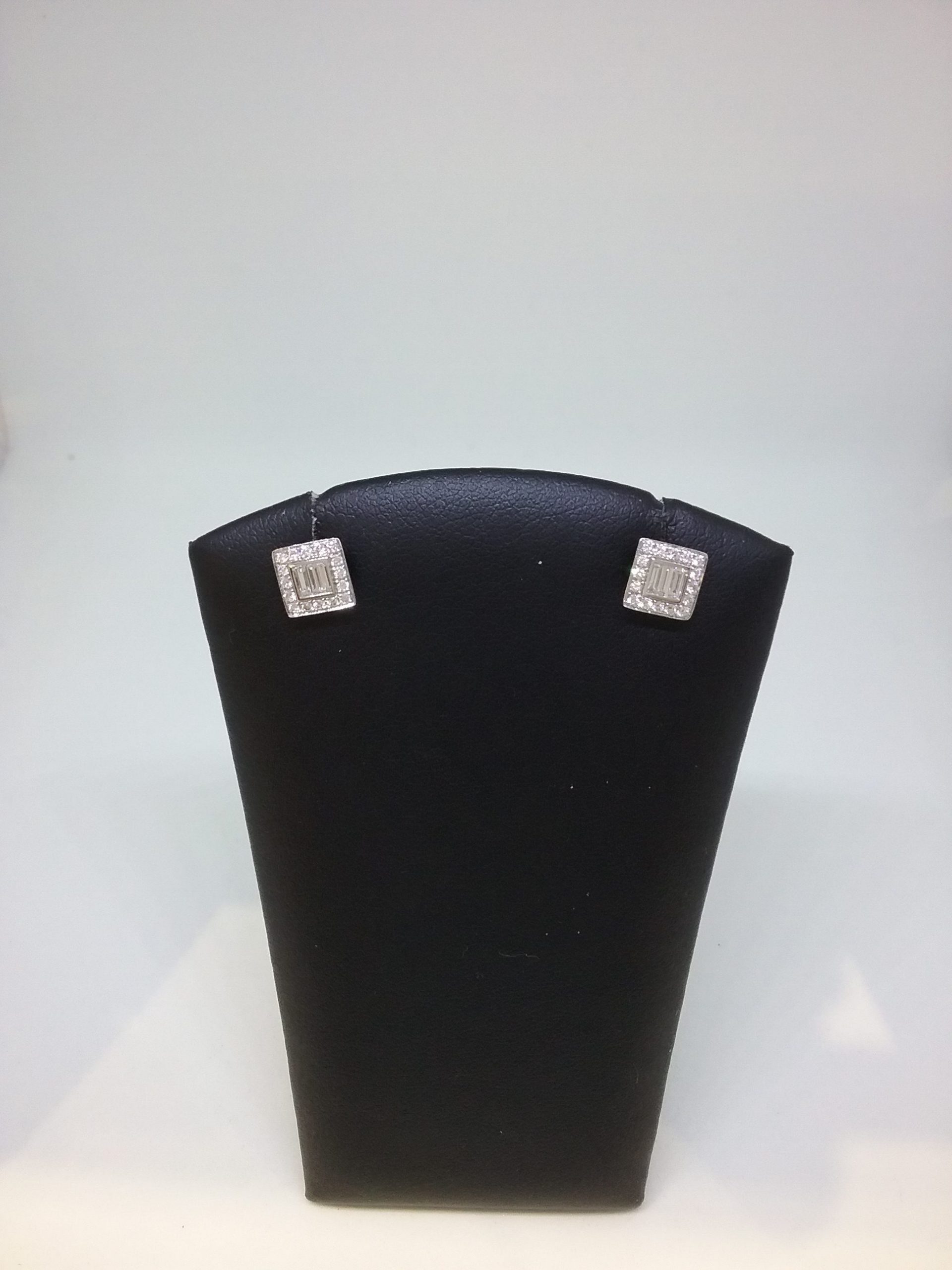 Paire boucles d’oreilles en or blanc 750/1000e pesant 2,34 gr avec diamants taille baguette et brillant de 0,33 ct