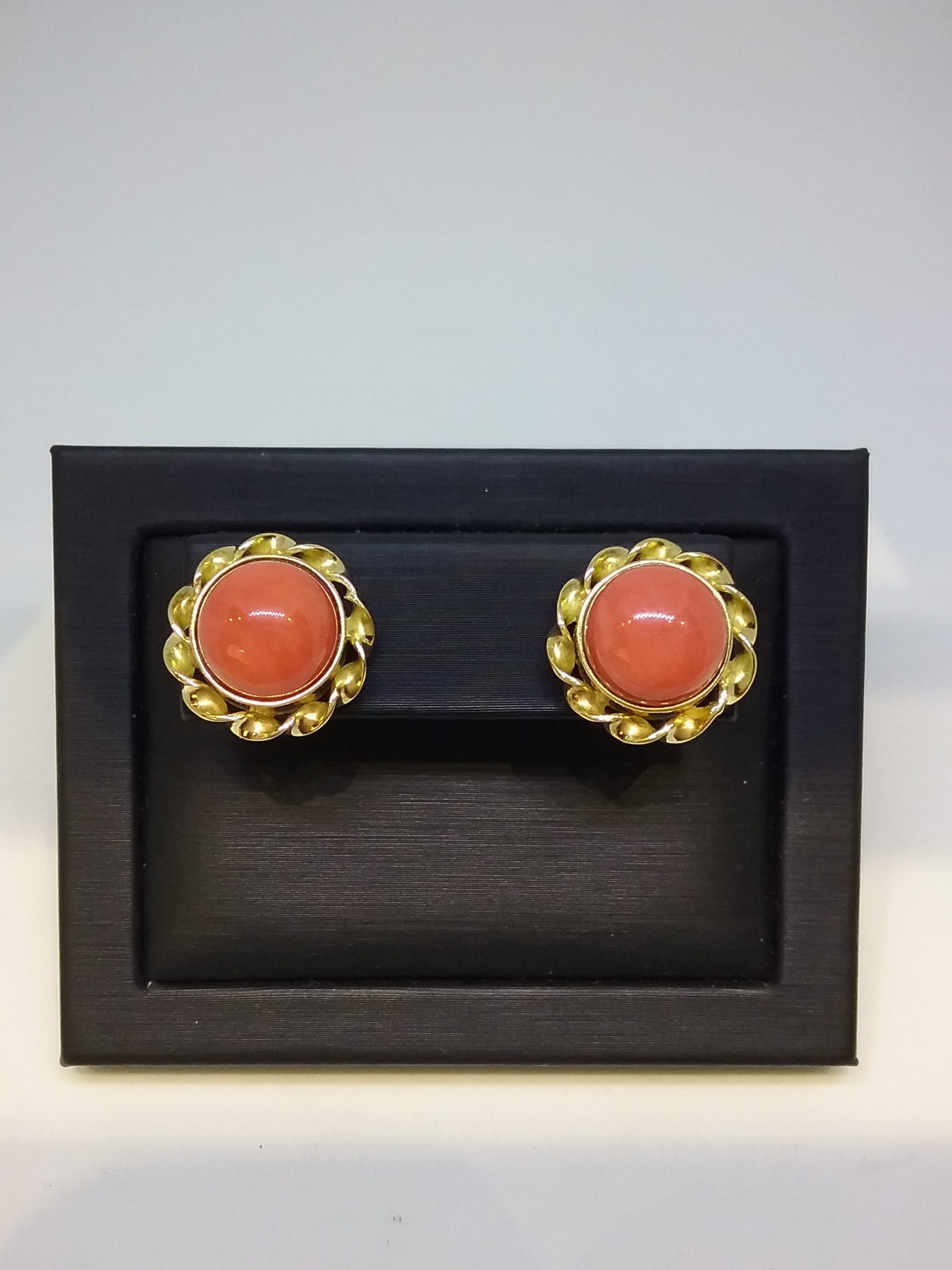 Boucles d’oreilles en or jaune 750/1000e pesant 6,67gr corail