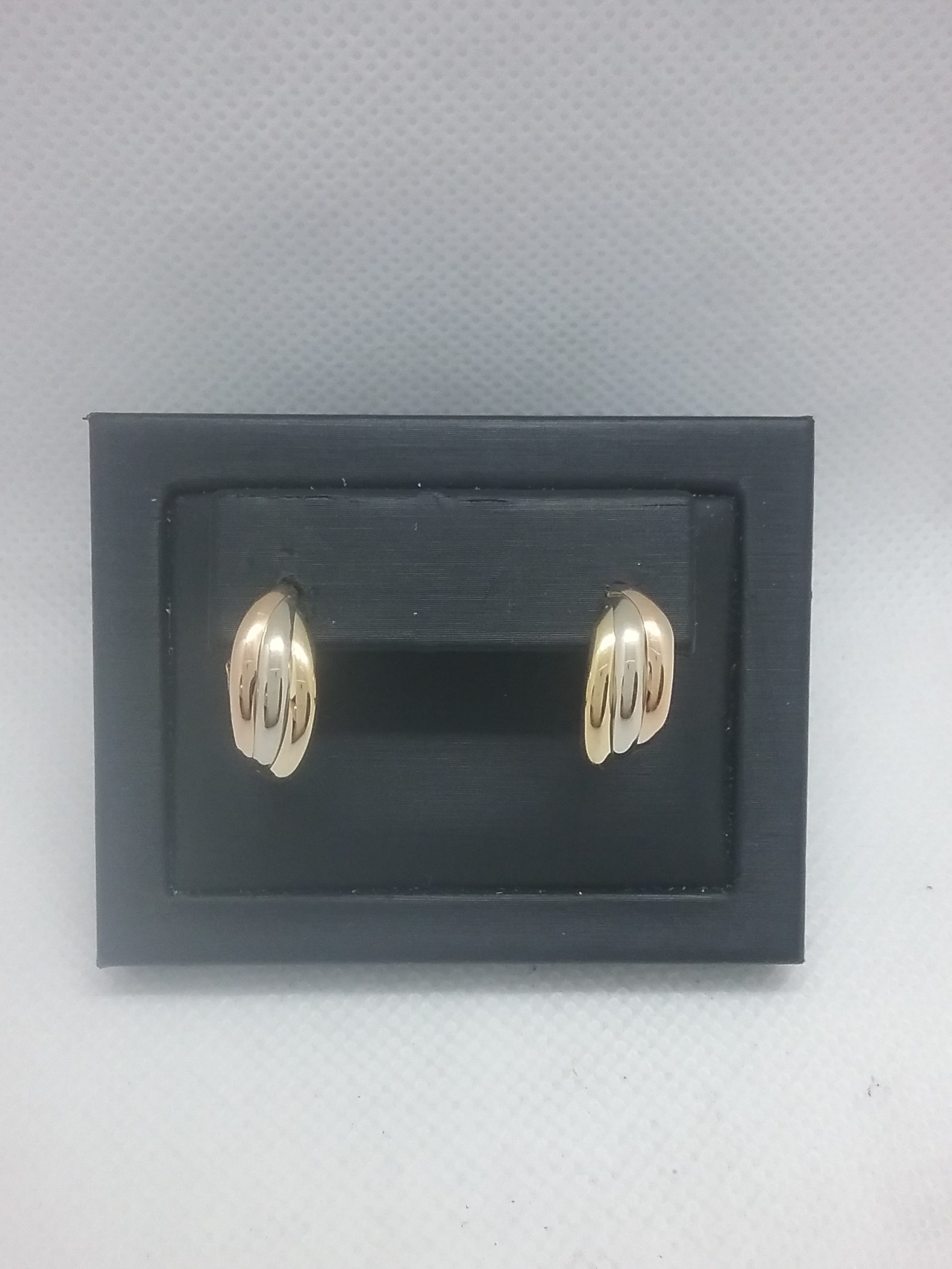 Paire de boucles d’oreilles demi-créoles en or jaune, or blanc, or rose 750/1000e pesant 1,94 gr