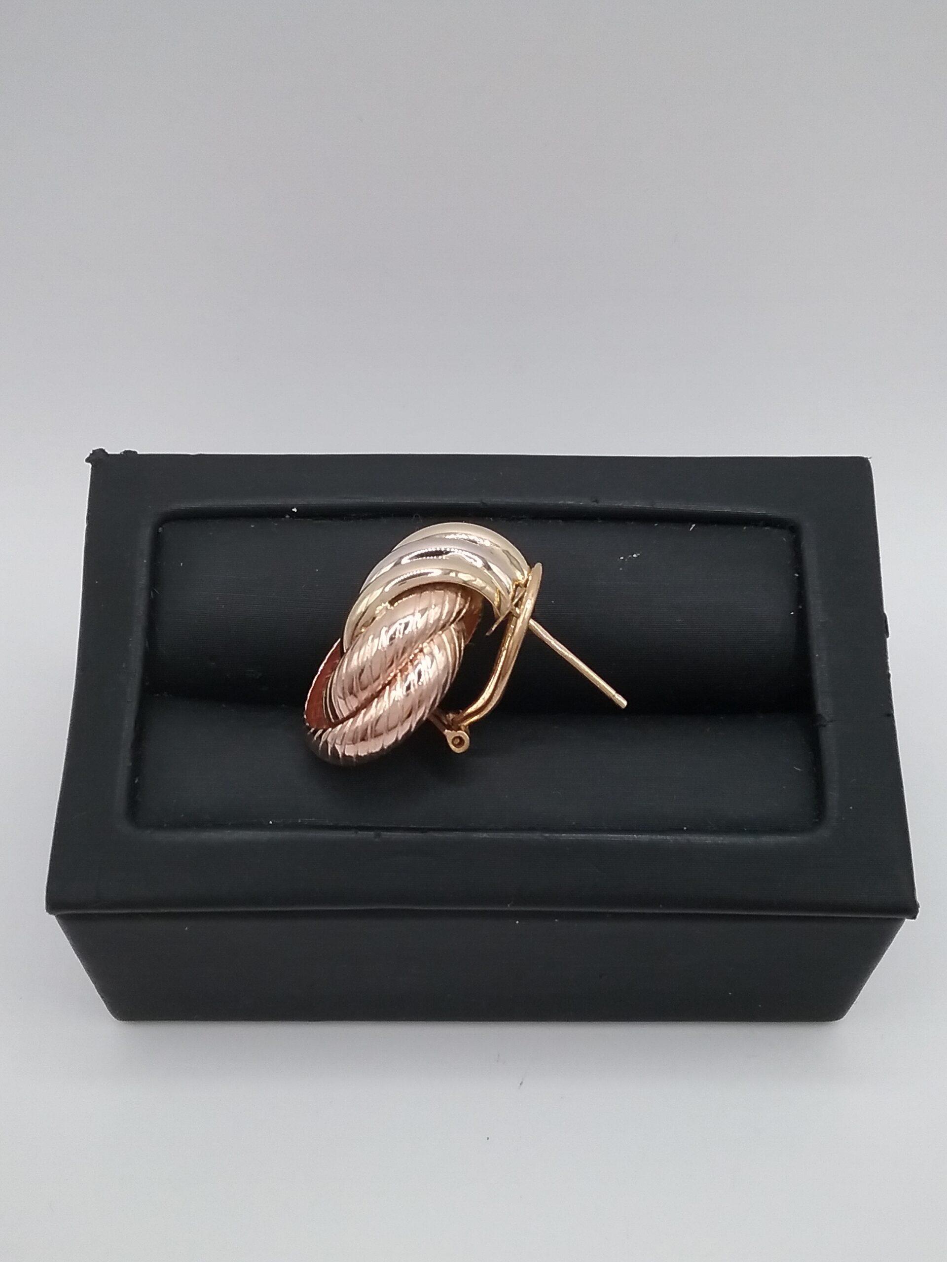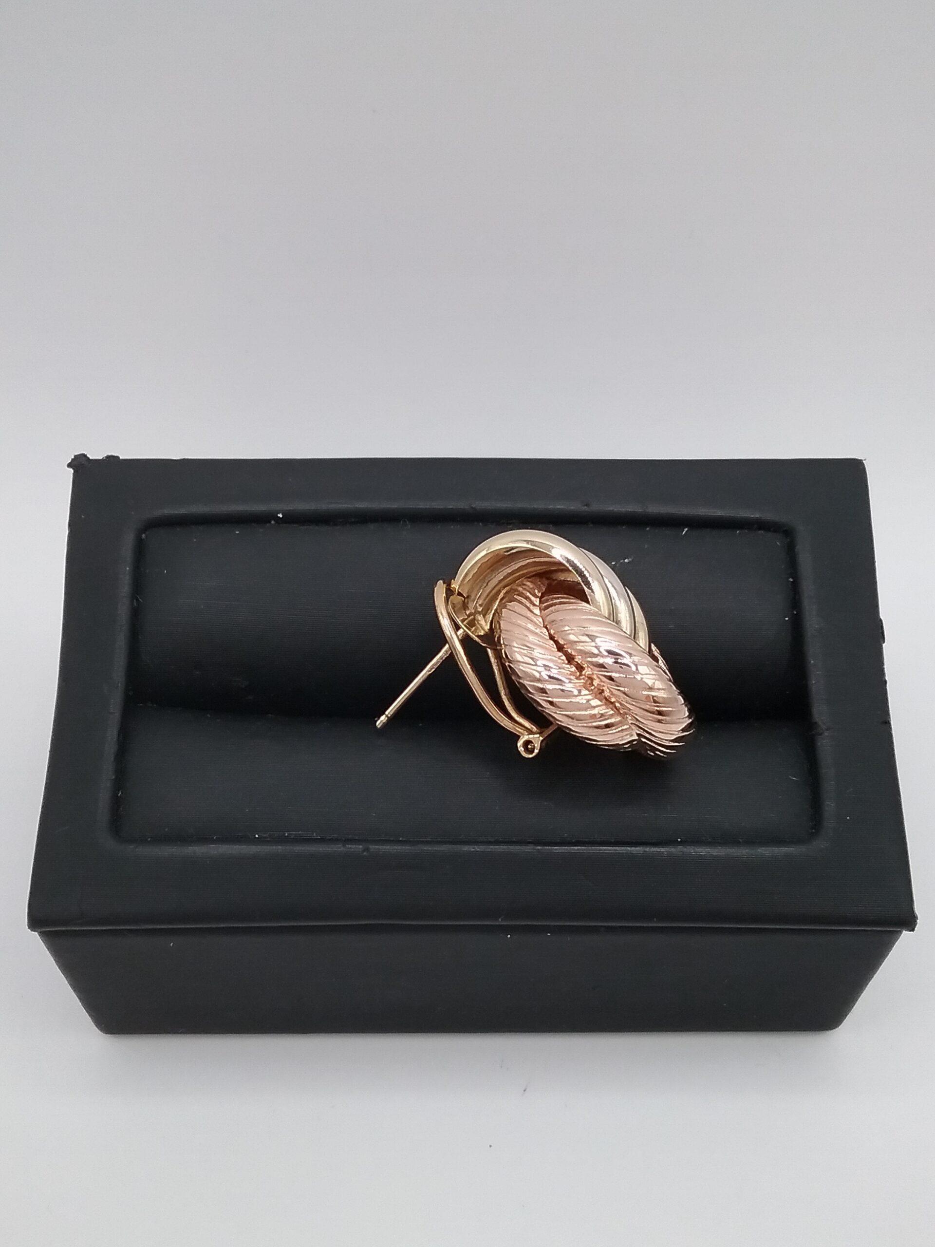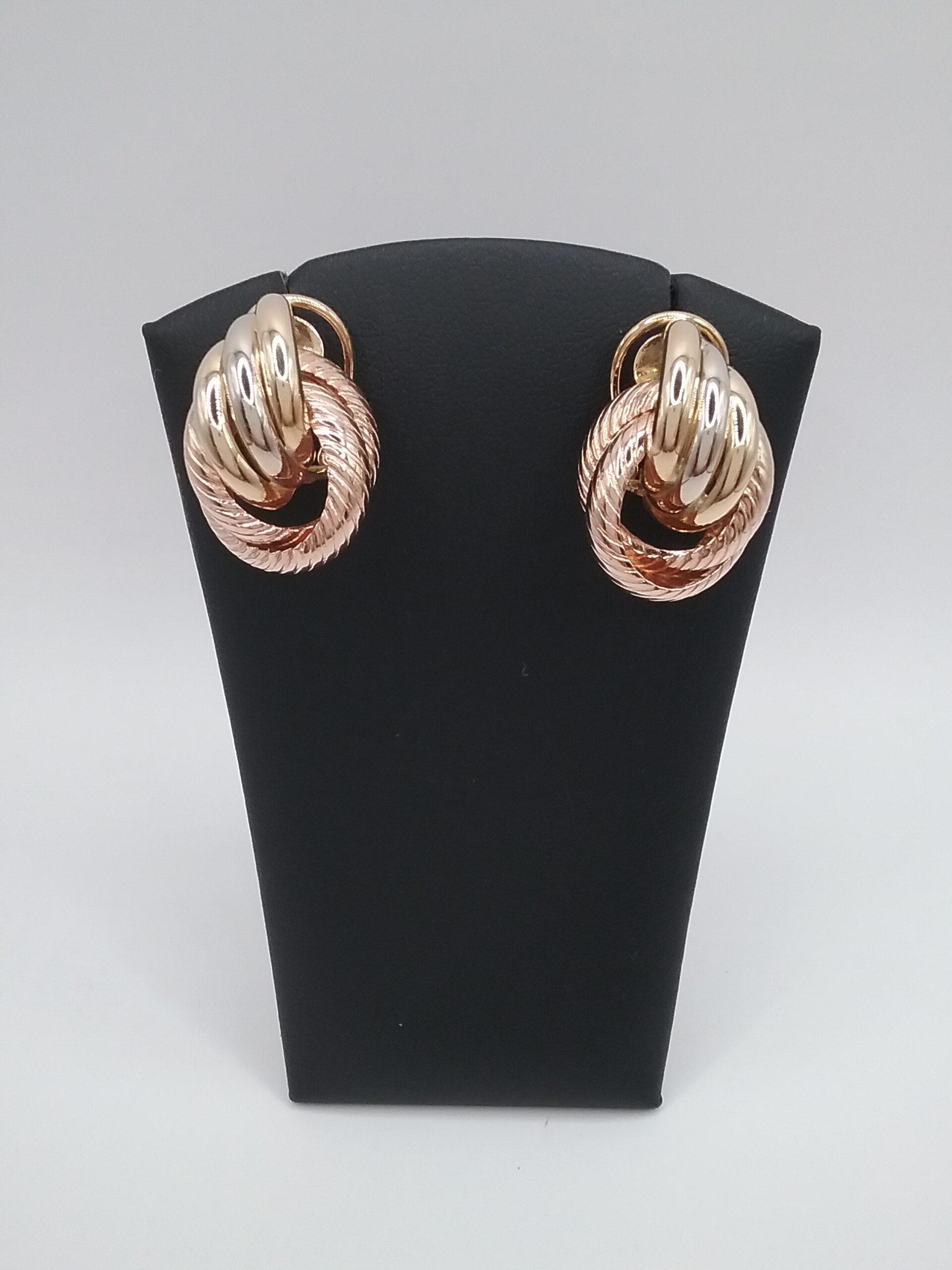 Paire de boucles d’oreilles en or tricolore 750/1000e pesant 7,83 gr système clip pour oreilles percées