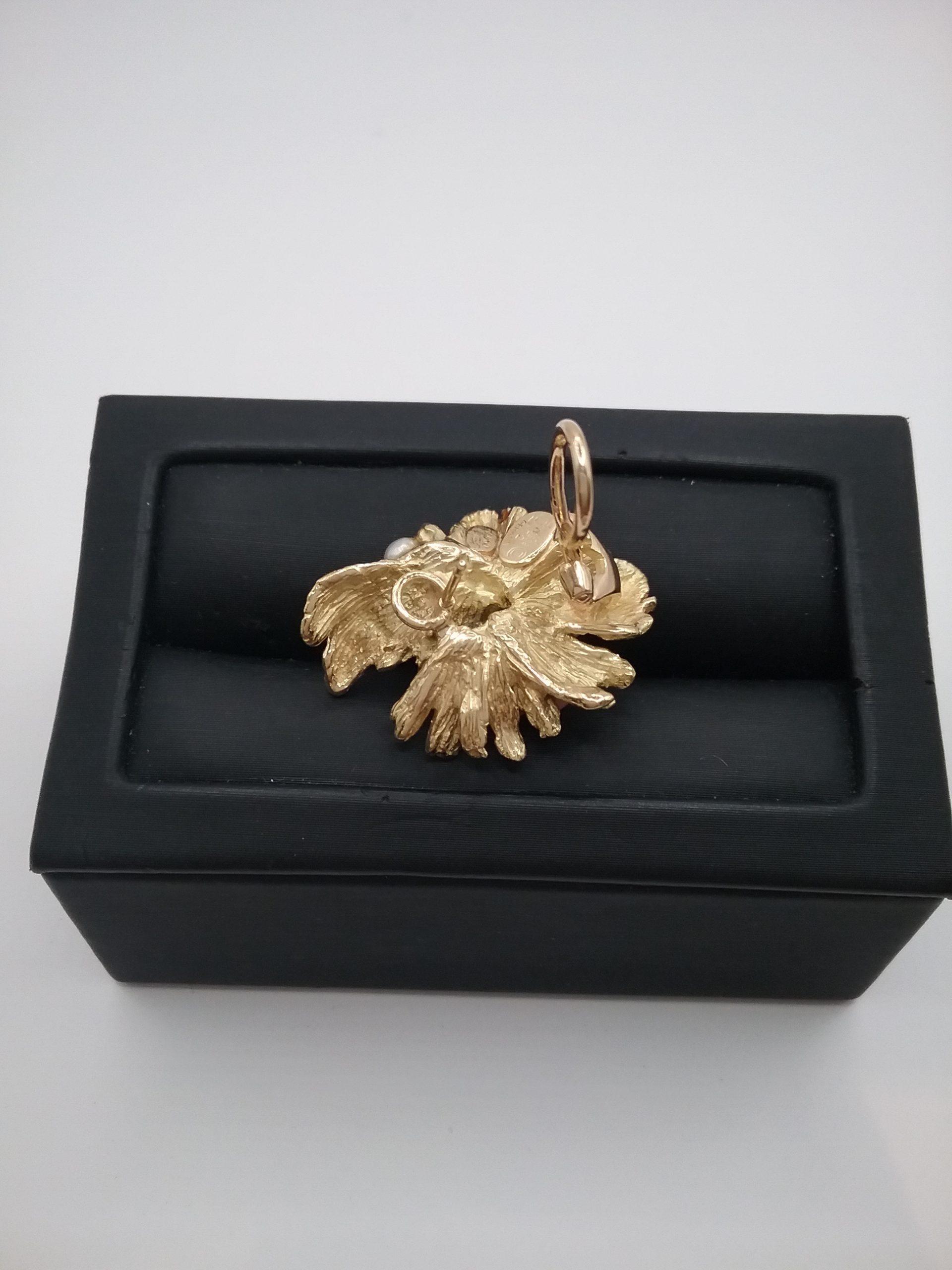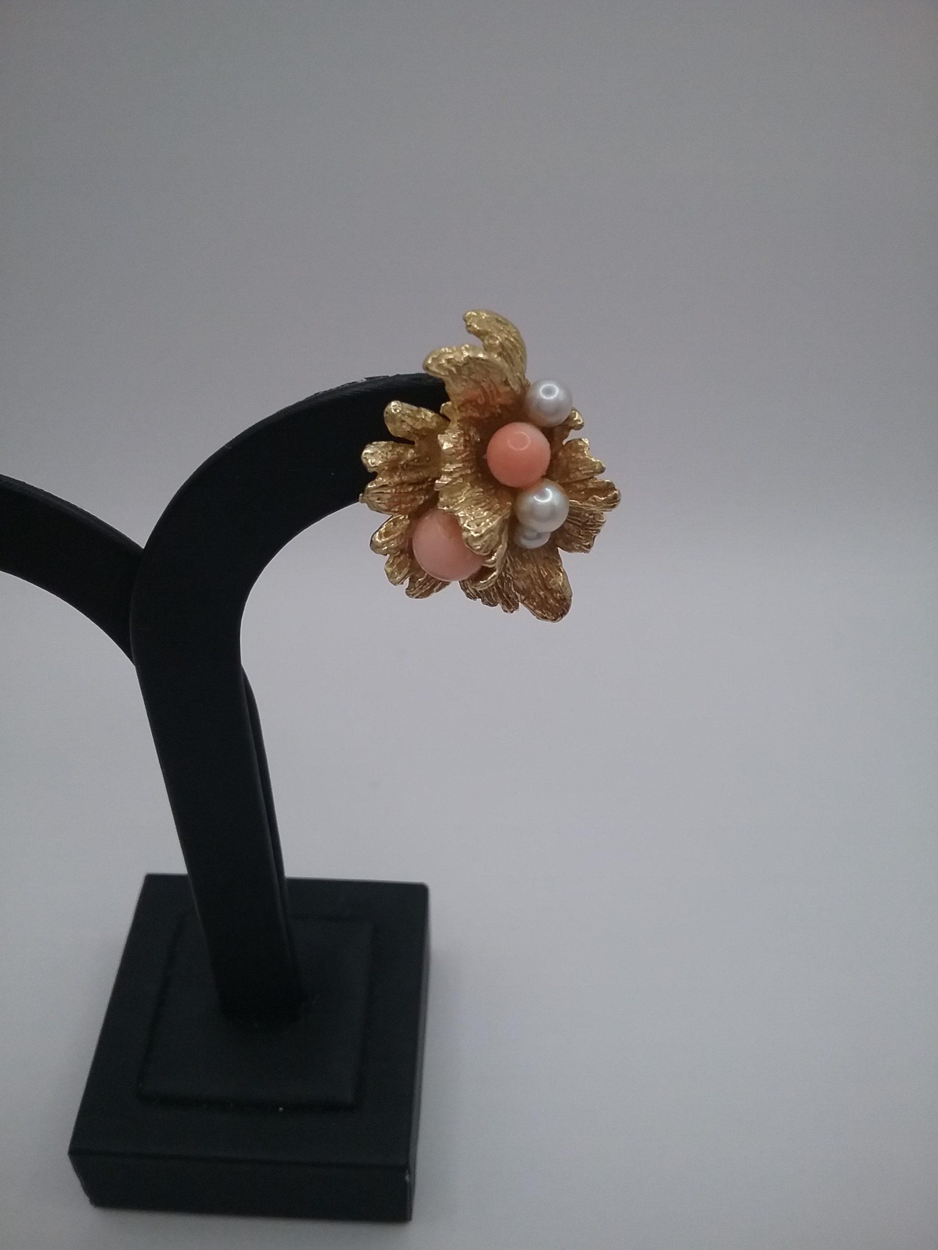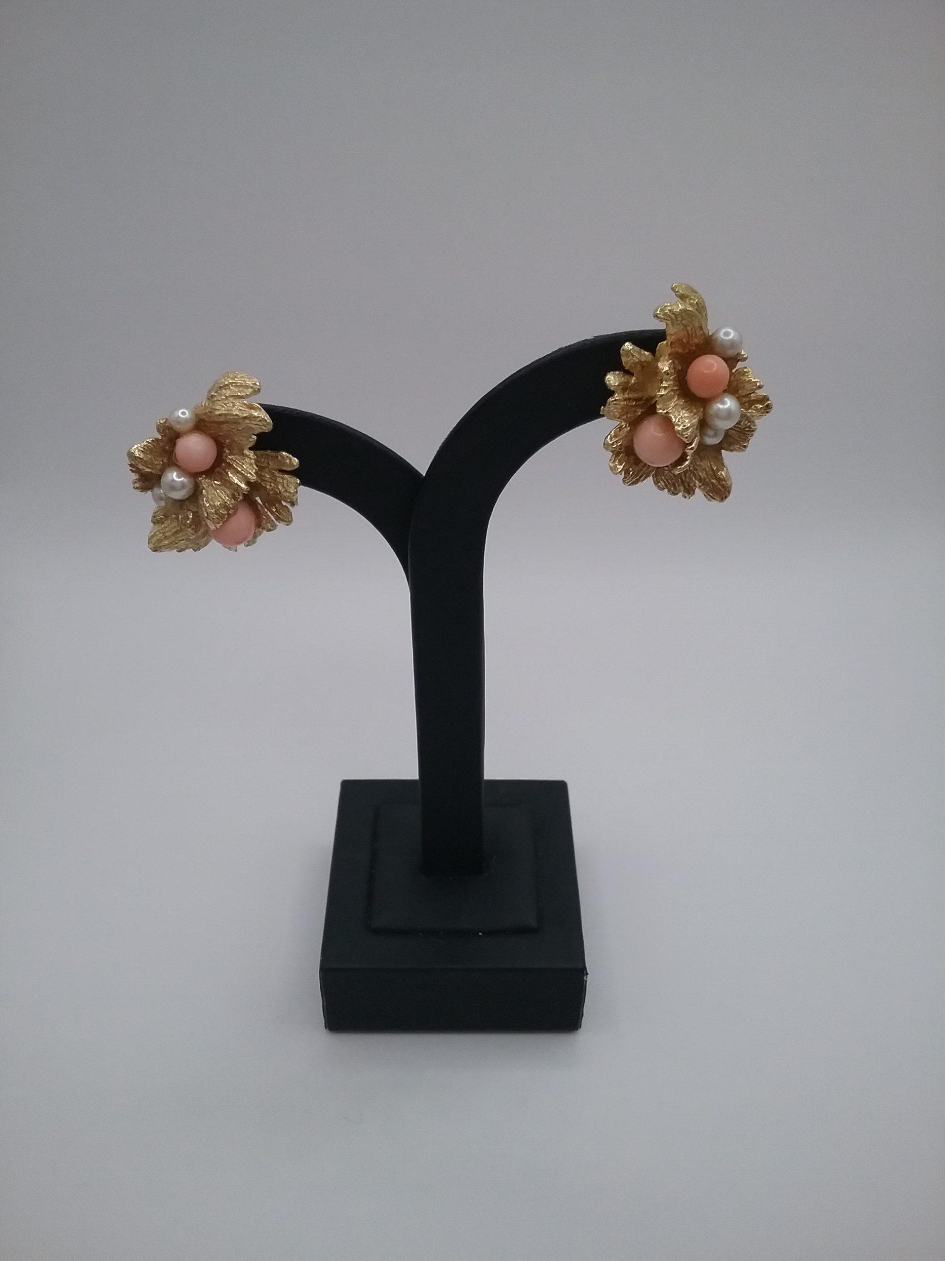 Paire de boucles d’oreilles en or jaune 750/1000e pesant 22,57 gr perles de culture et perles de corail « peau d’ange »