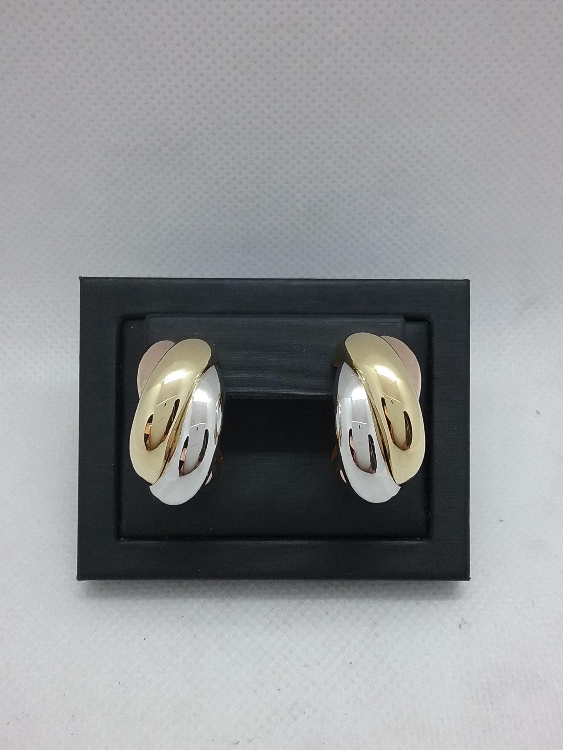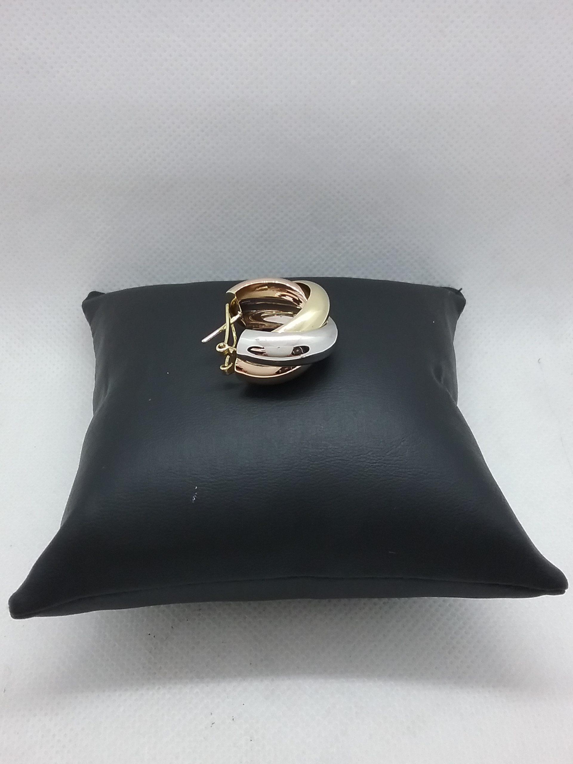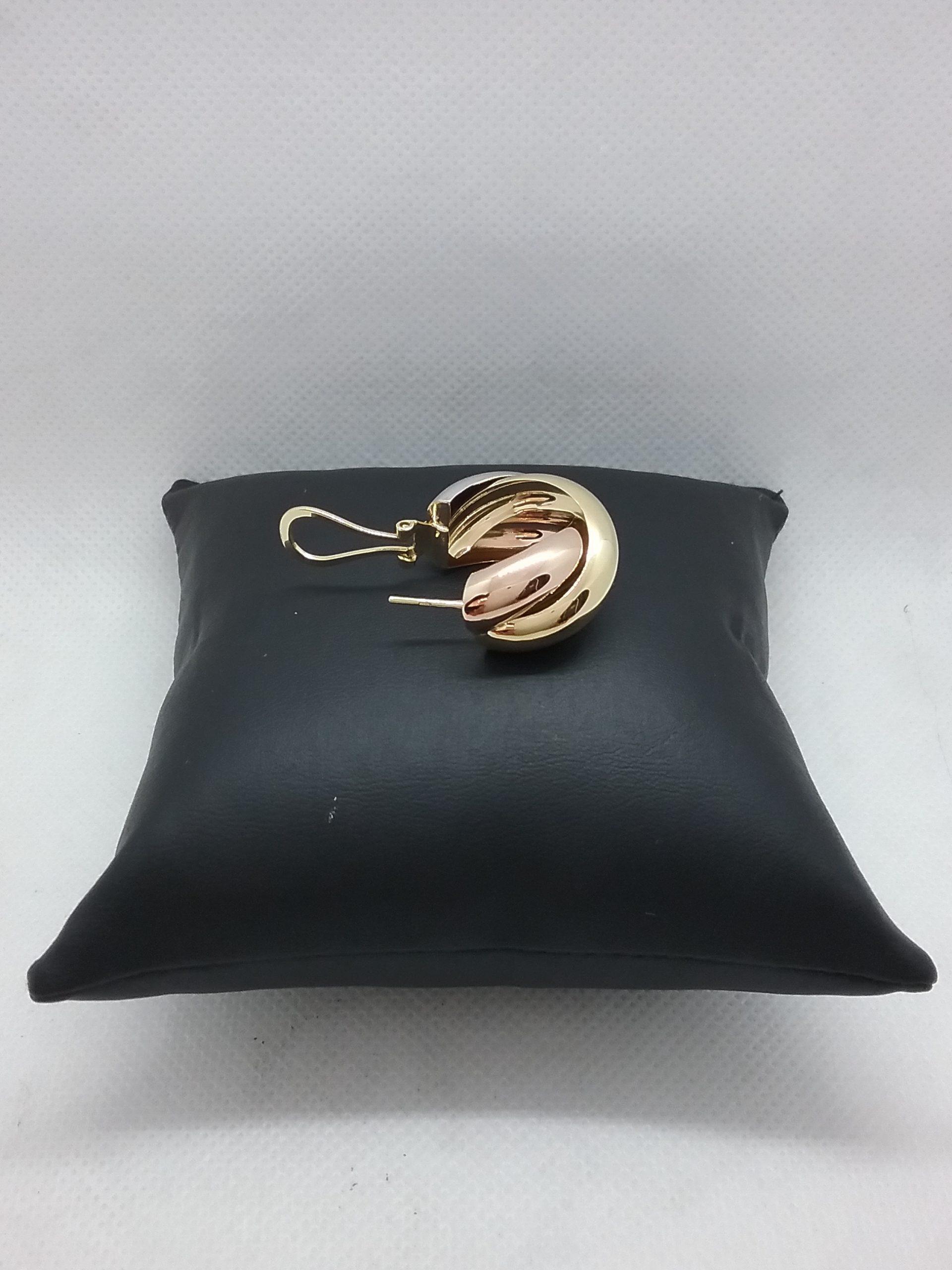 Boucles d’oreilles créoles tricolore en or 750/1000e pesant 11,25 gr système raquette