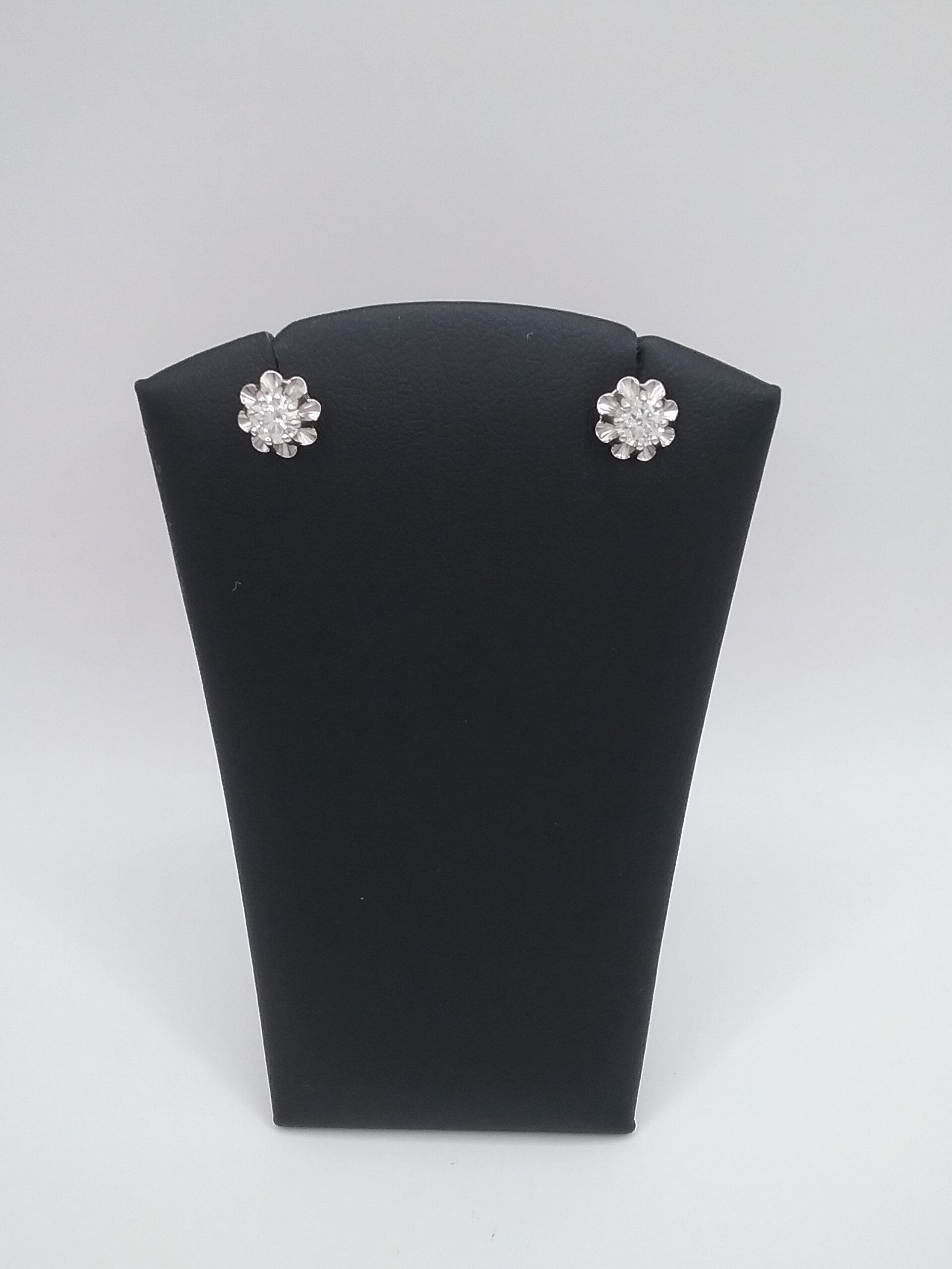 Paire de boucles d’oreilles en or blanc 750/1000e pesant 2,20 gr sertie de diamants 2 x 0.25 ct demie taille