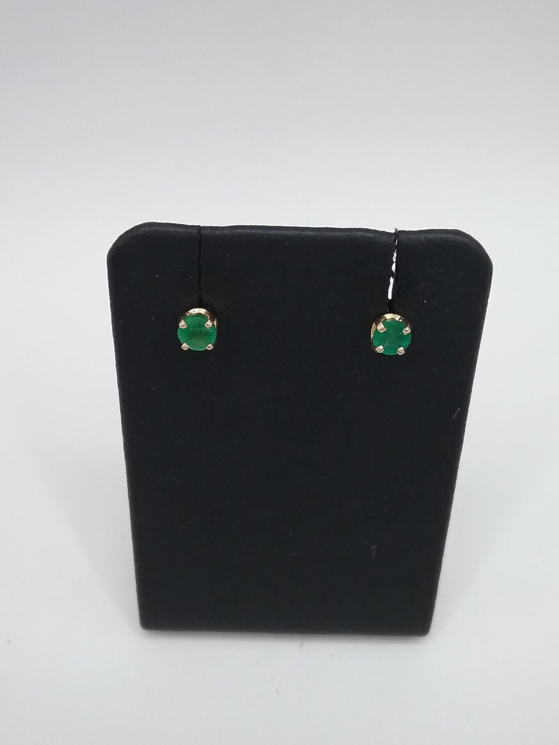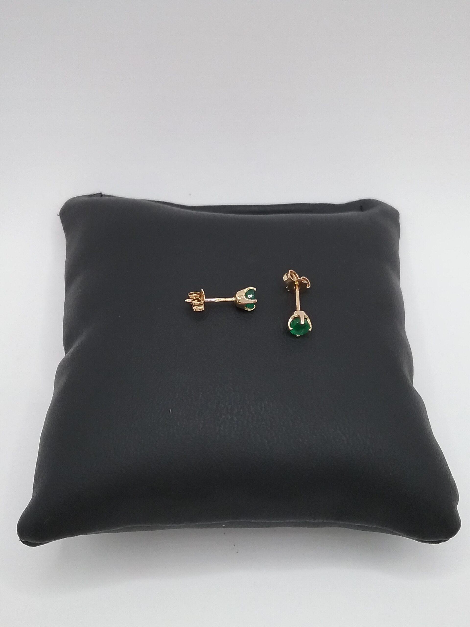 Paire de boucles d’oreilles en or jaune 750/1000e pesant 0,62 gr serties d’émeraudes