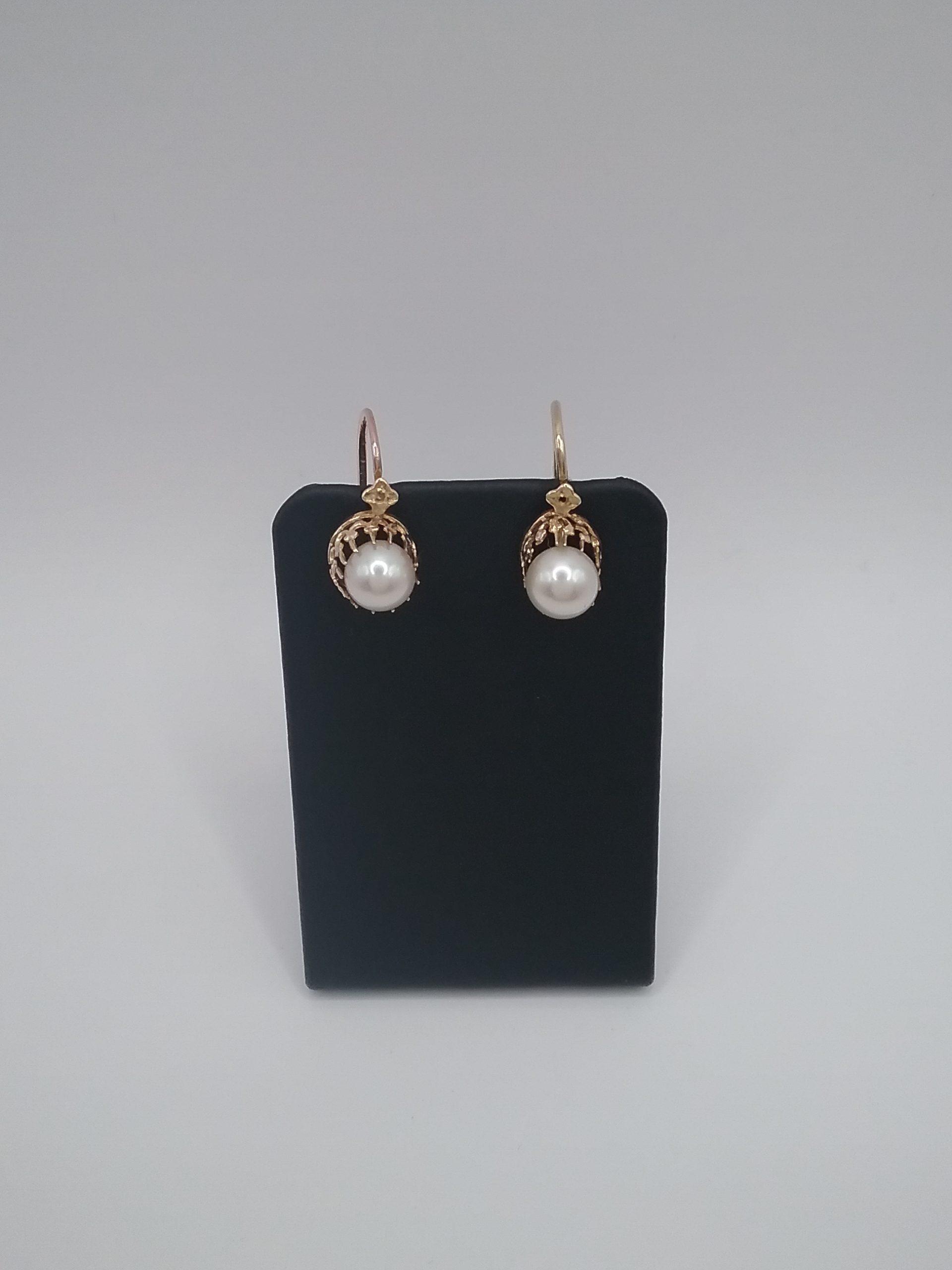 Paire de boucles d’oreilles dormeuses en or jaune 750/1000e pesant 2,29 gr perles de culture Akoya de 6 mm