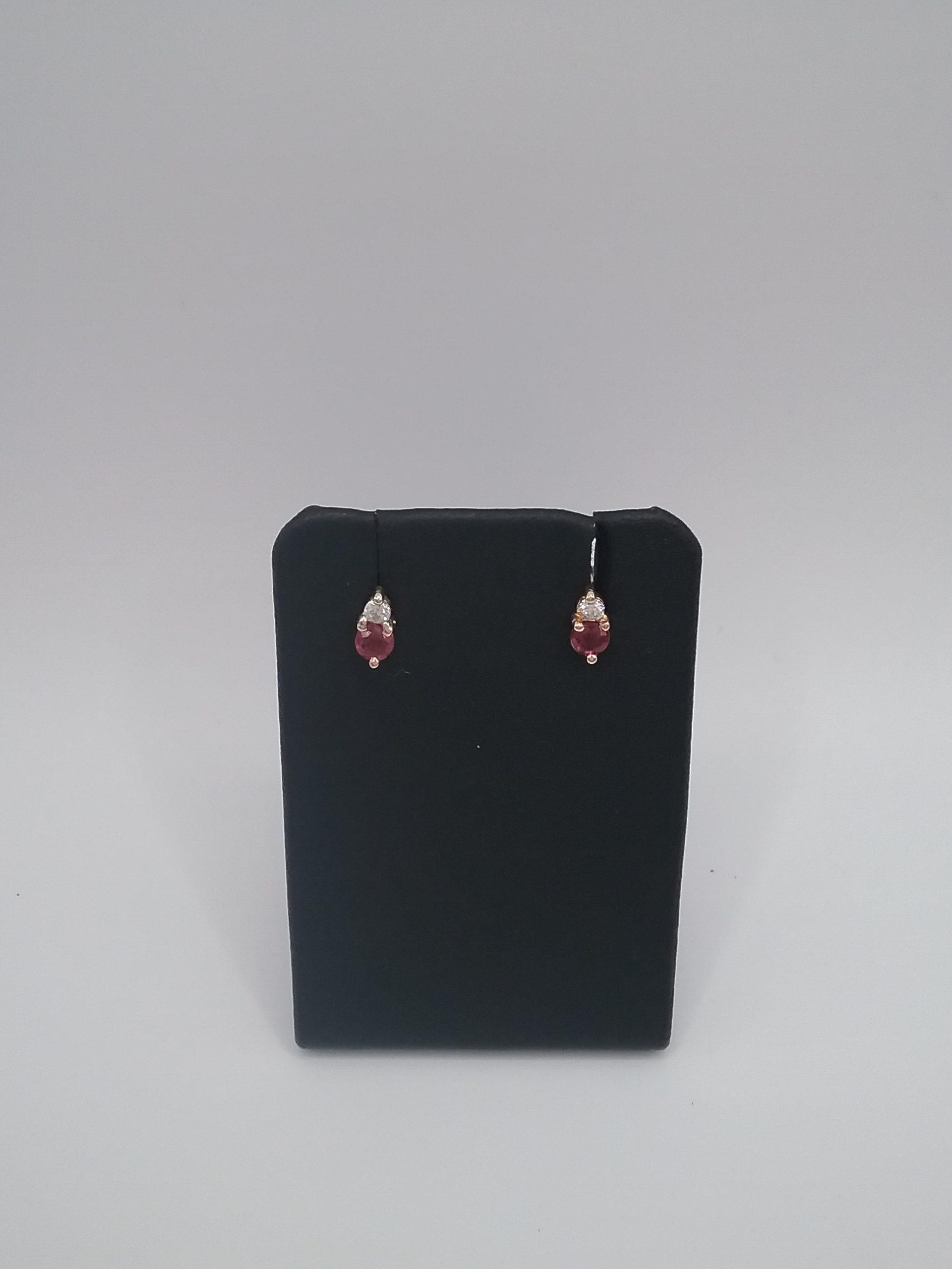 Paire de boucles d’oreilles en or jaune 750/1000e sertie de rubis et diamants