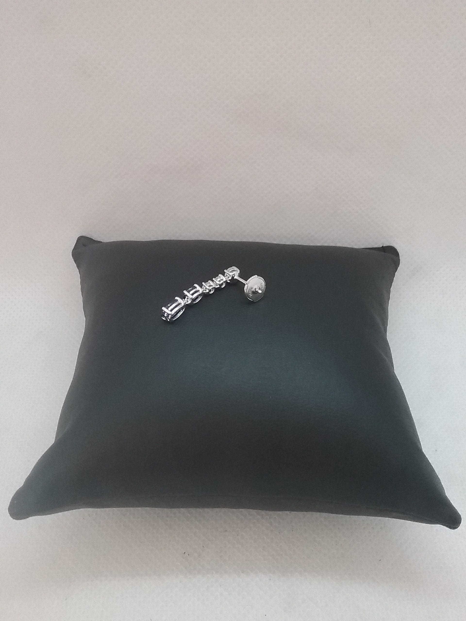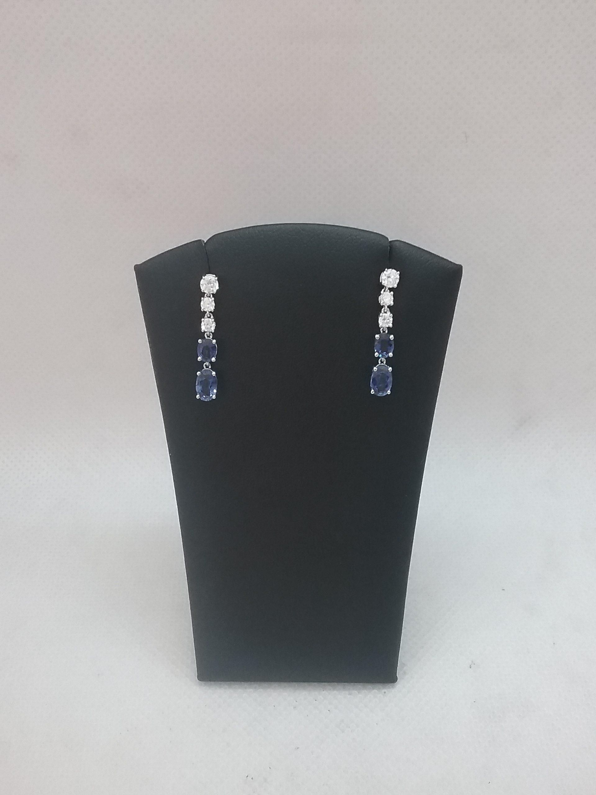 Paire de boucles d’oreilles en or blanc 750/1000e pesant 2,52 gr sertie de 4 saphirs ovales d’un poids total d’1,89 carat et de 6 diamants d’un poids total de 0,49 ct
