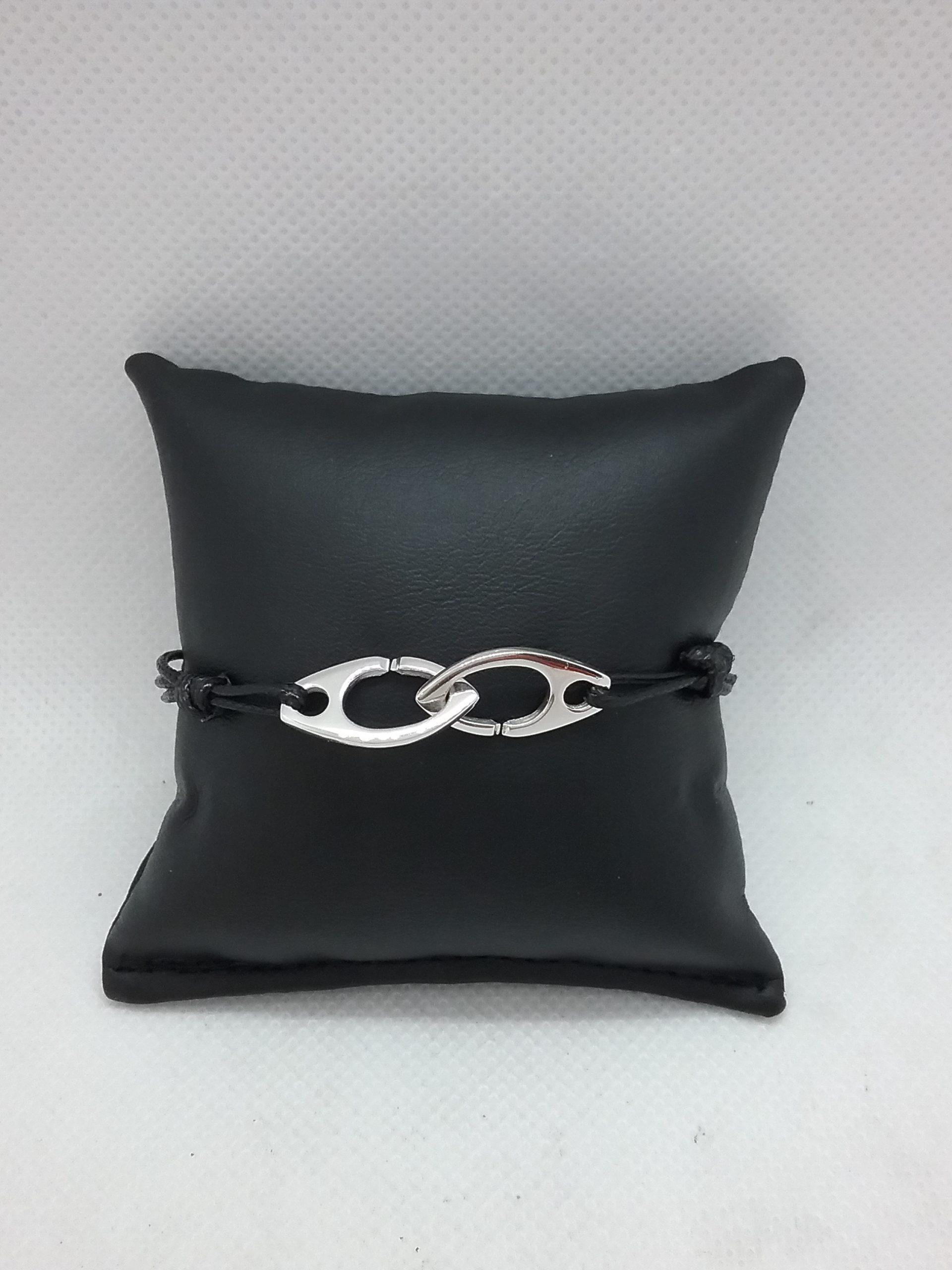 Bracelet cordon noir motif menottes en or blanc 750/1000e pesant 2,82 gr