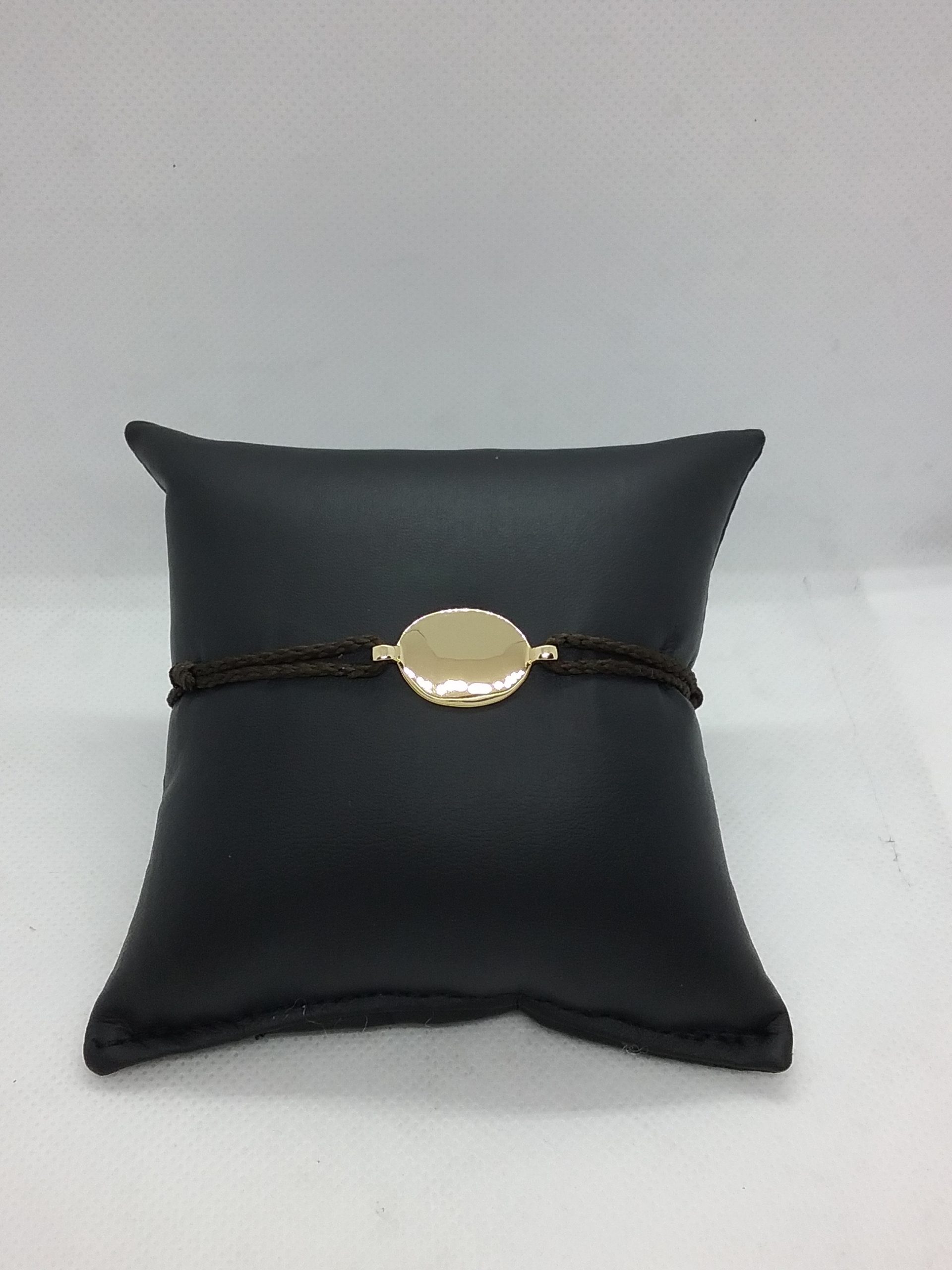Bracelet cordon marron avec plaque or jaune 750/1000e motif arbre de vie pesant 2,70 gr
