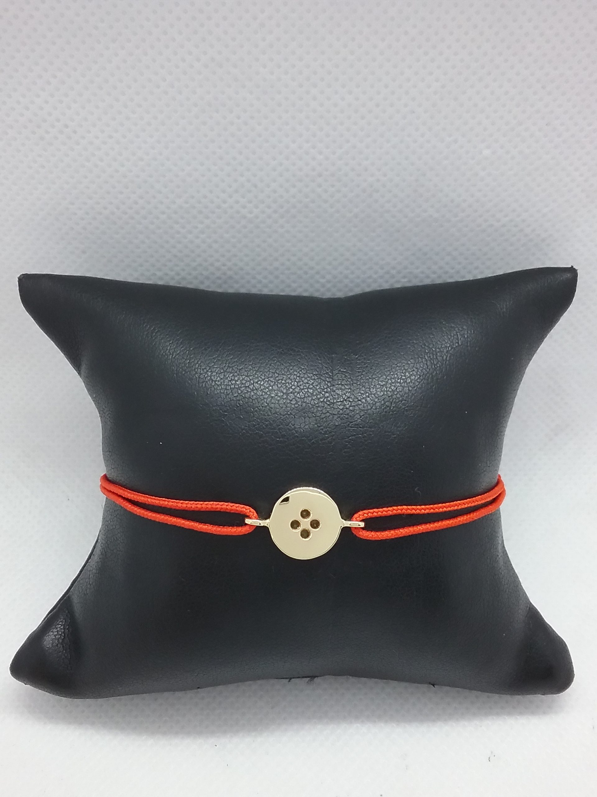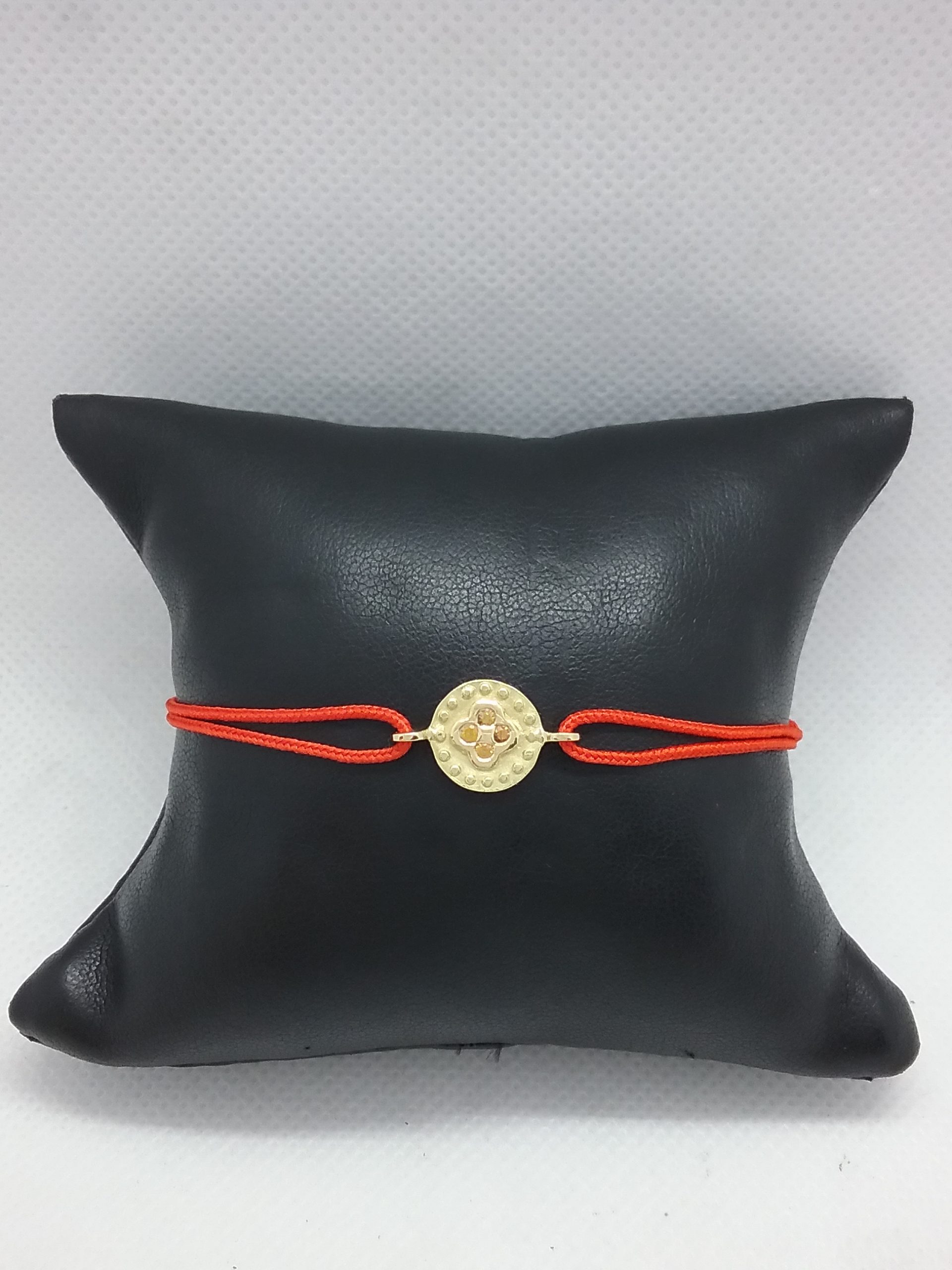 Bracelet cordon rouge avec motif central rond en or jaune 750/1000e pesant 1,30 gr