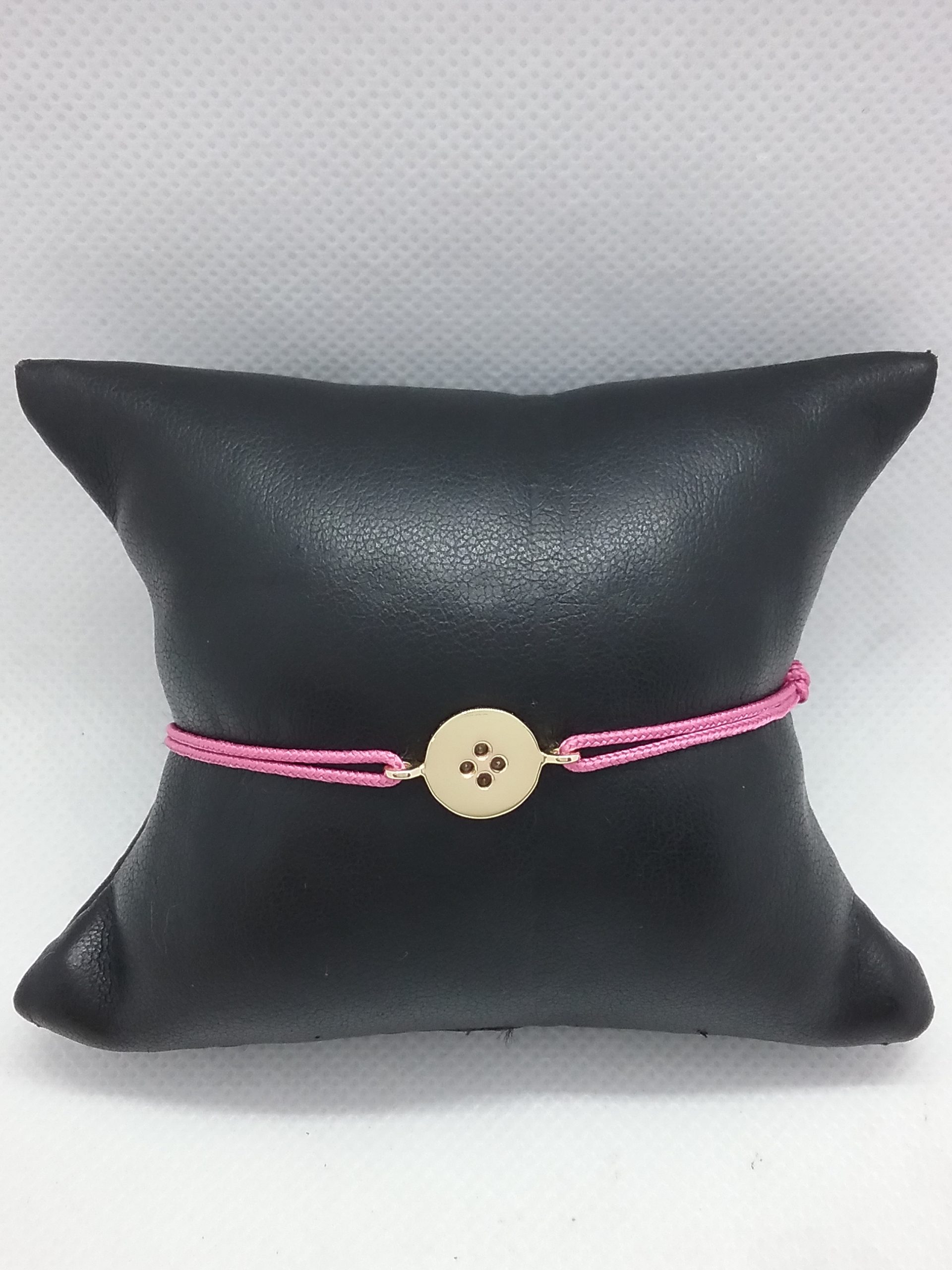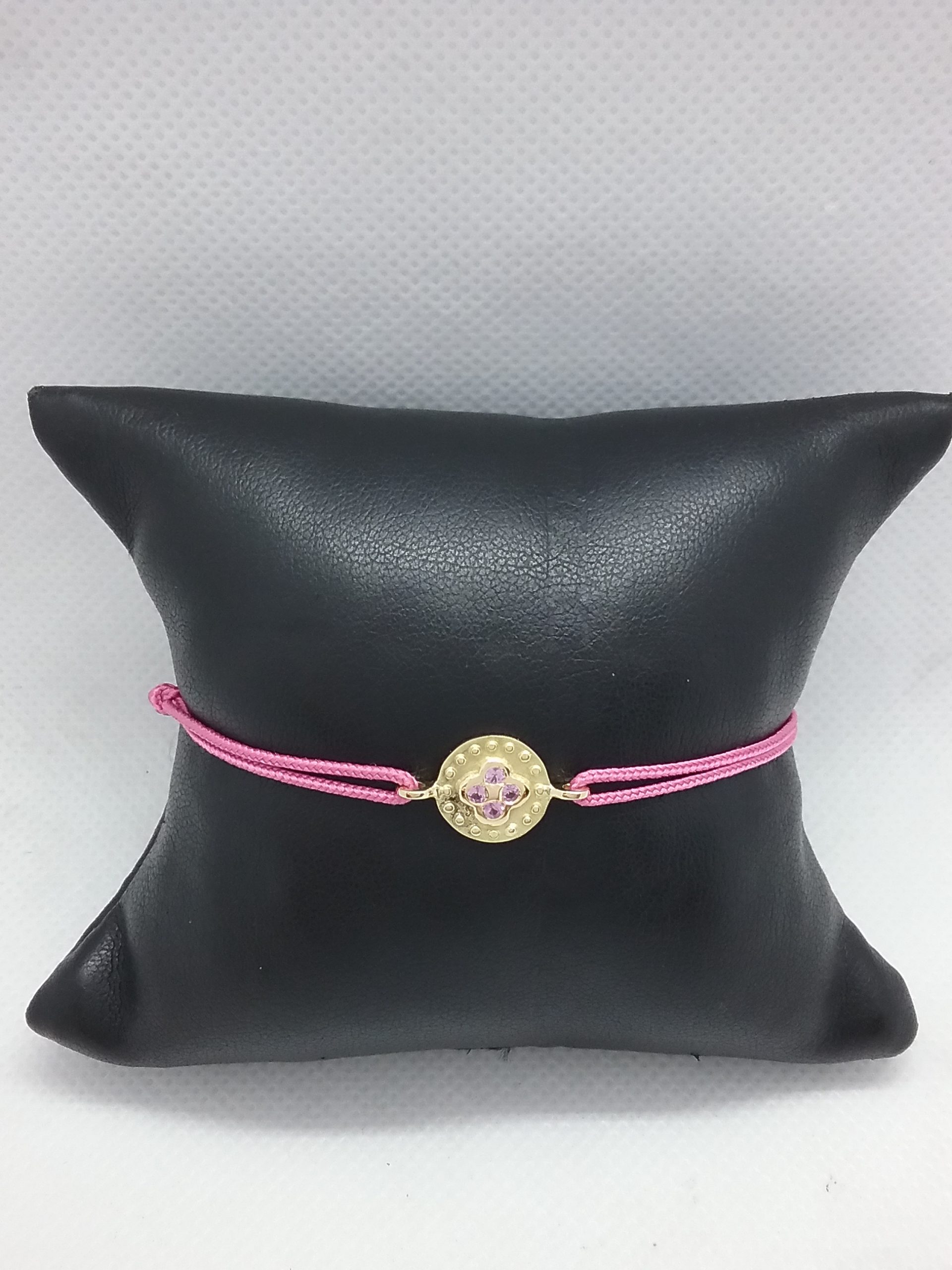 Bracelet cordon rose avec motif central rond en or jaune 750/1000e pesant 1,40 gr