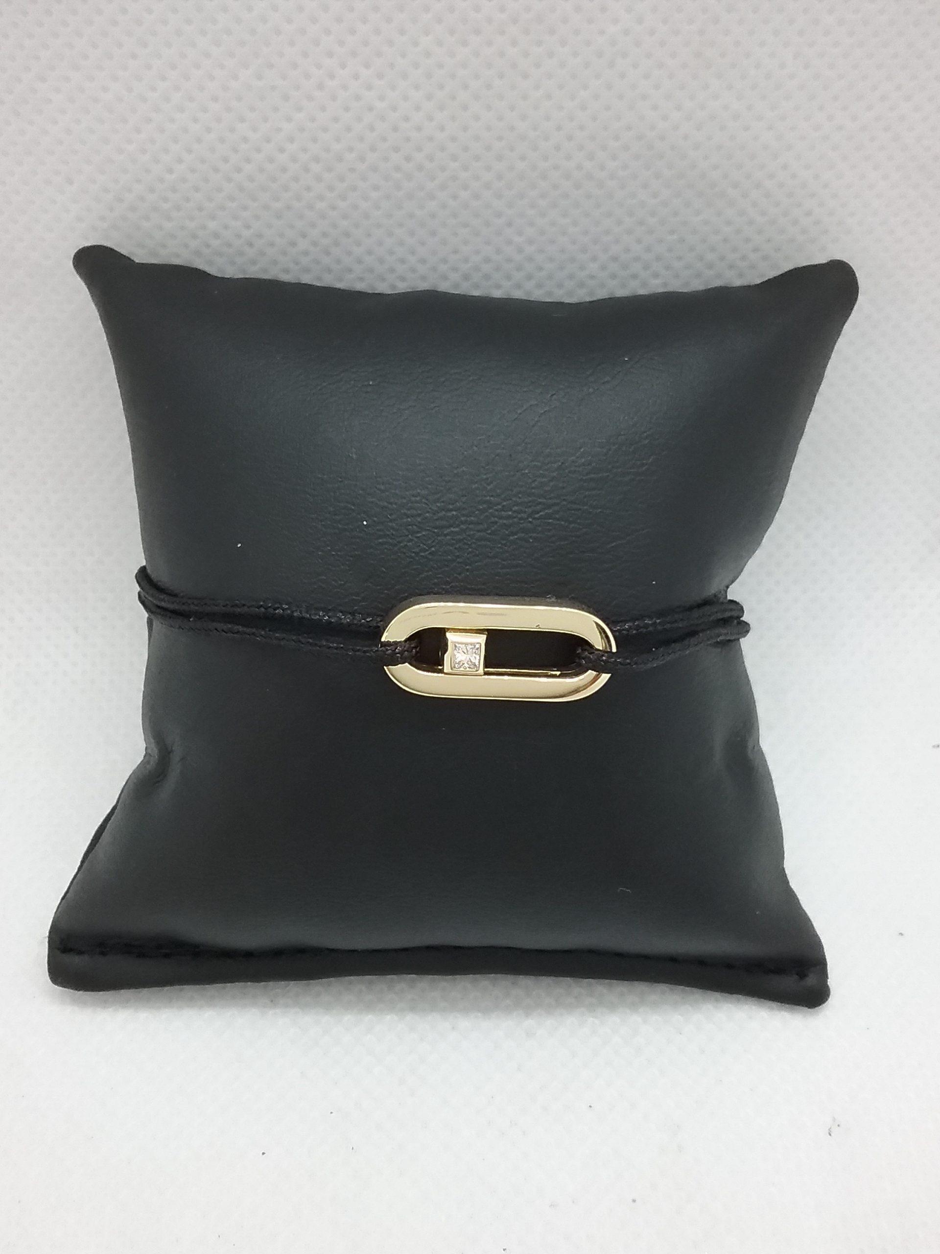 Bracelet cordon noir motif ovale en or jaune 750/1000e pesant 2,35 gr diamant princesse de 0,07 ct