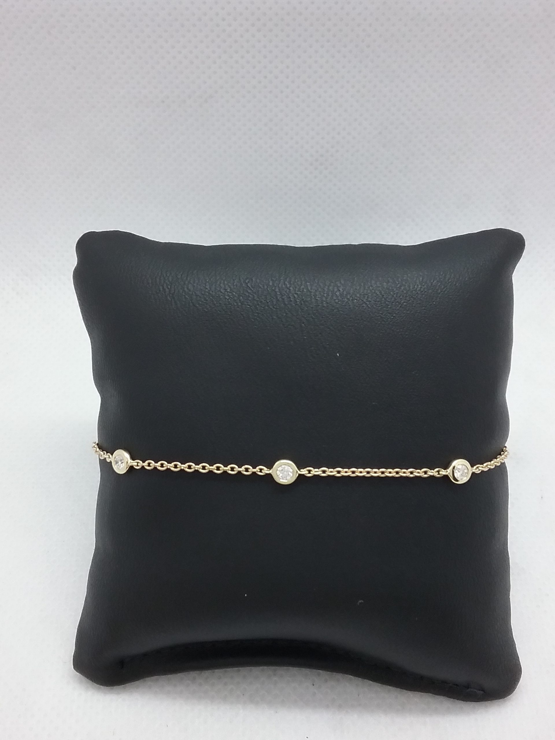 Bracelet en or jaune 750/1000e pesant 2,10 gr serti de 5 diamants serti clos d’un poids total de 0,25 ct