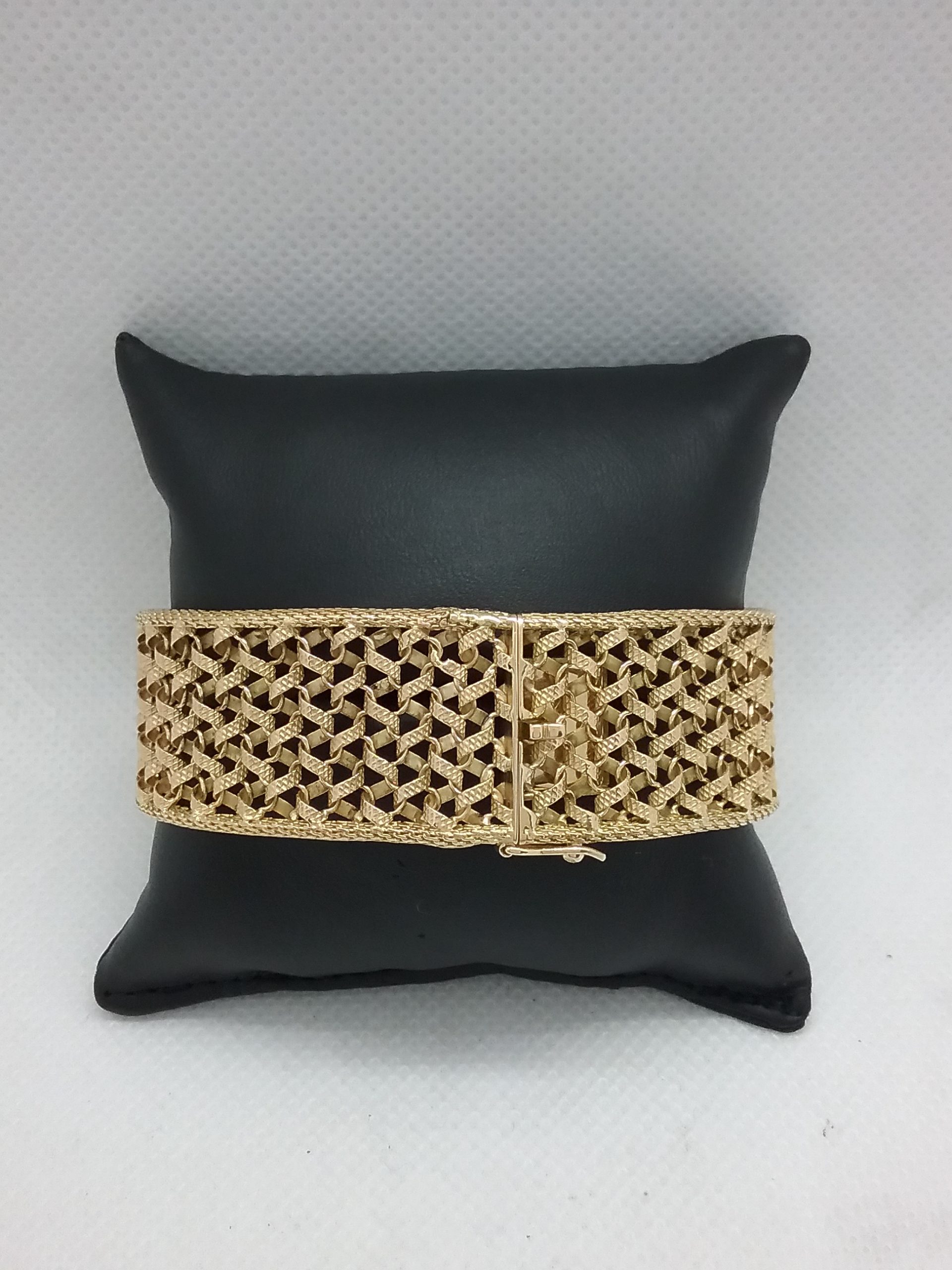 Bracelet manchette en or rose 750/1000e pesant 33,54 gr largeur 21 mm longueur 18 cm