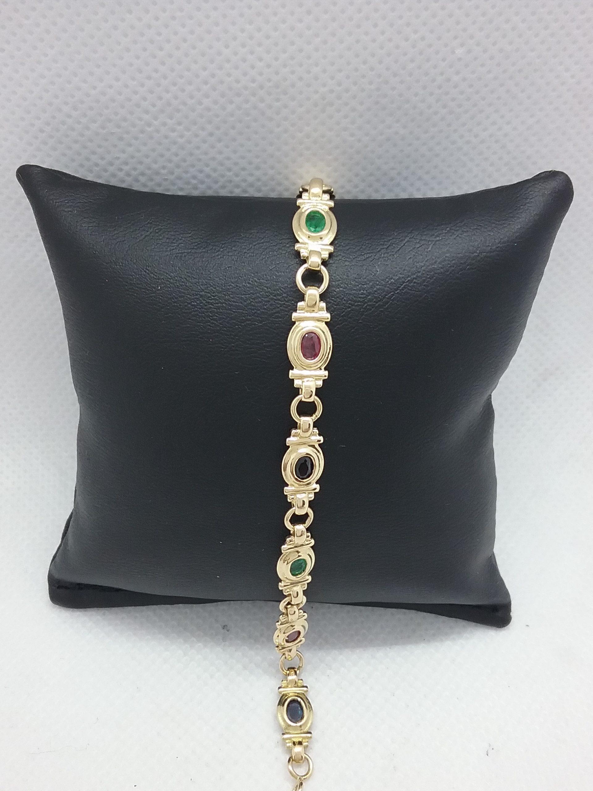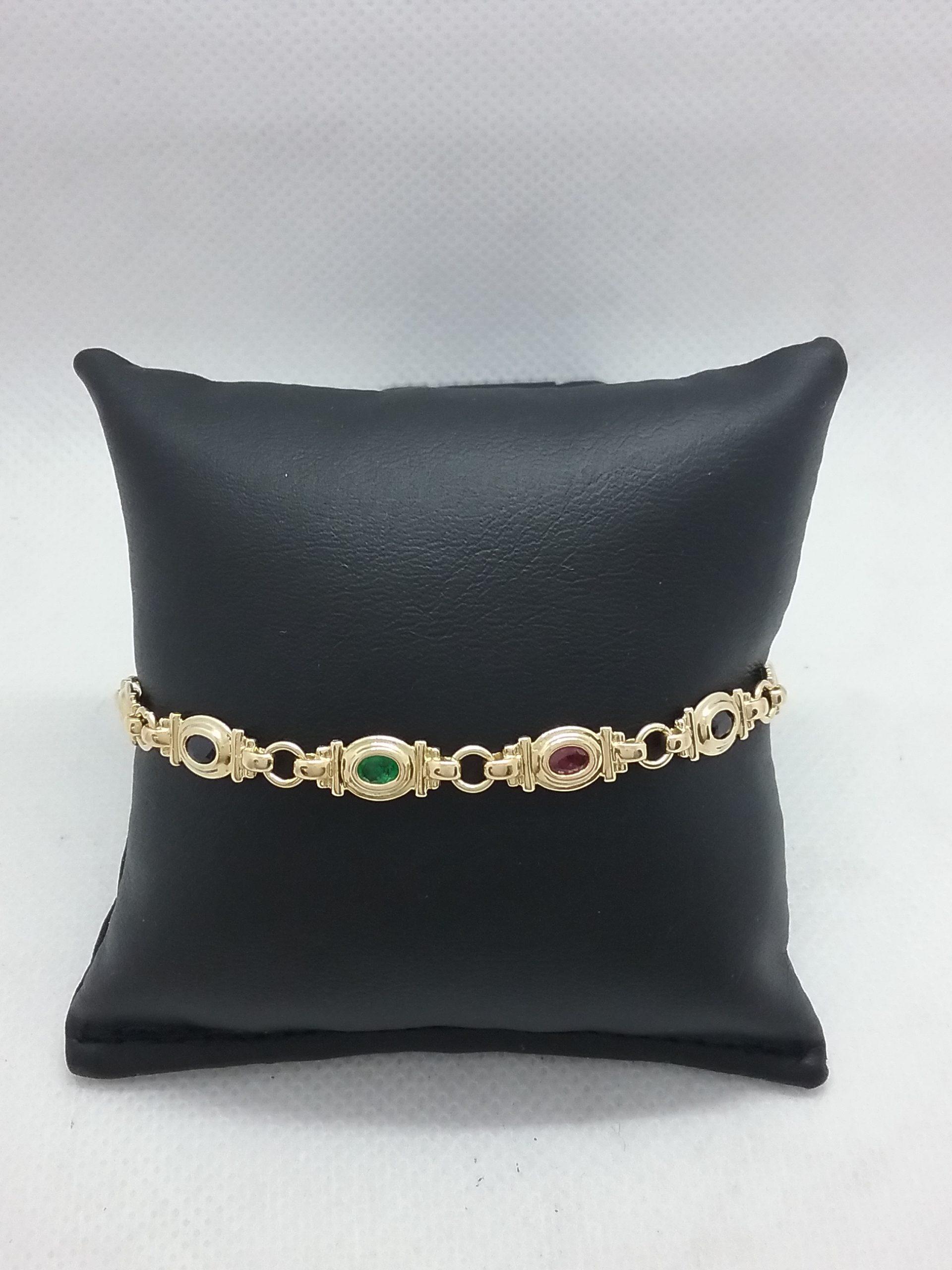 Bracelet en or jaune 750/1000e pesant 9,34 gr serti de 4 saphirs, 3 rubis, 3 émeraudes
