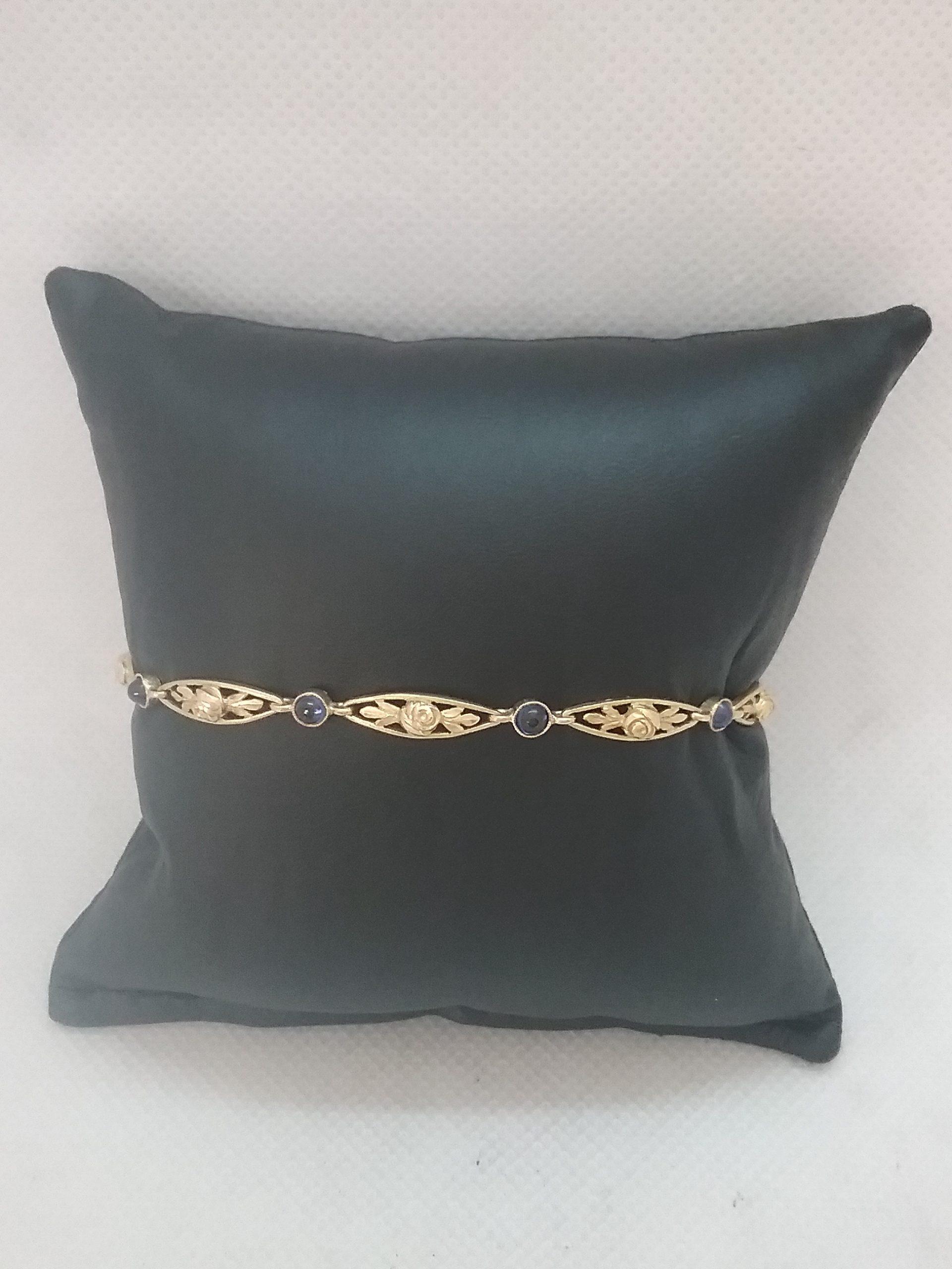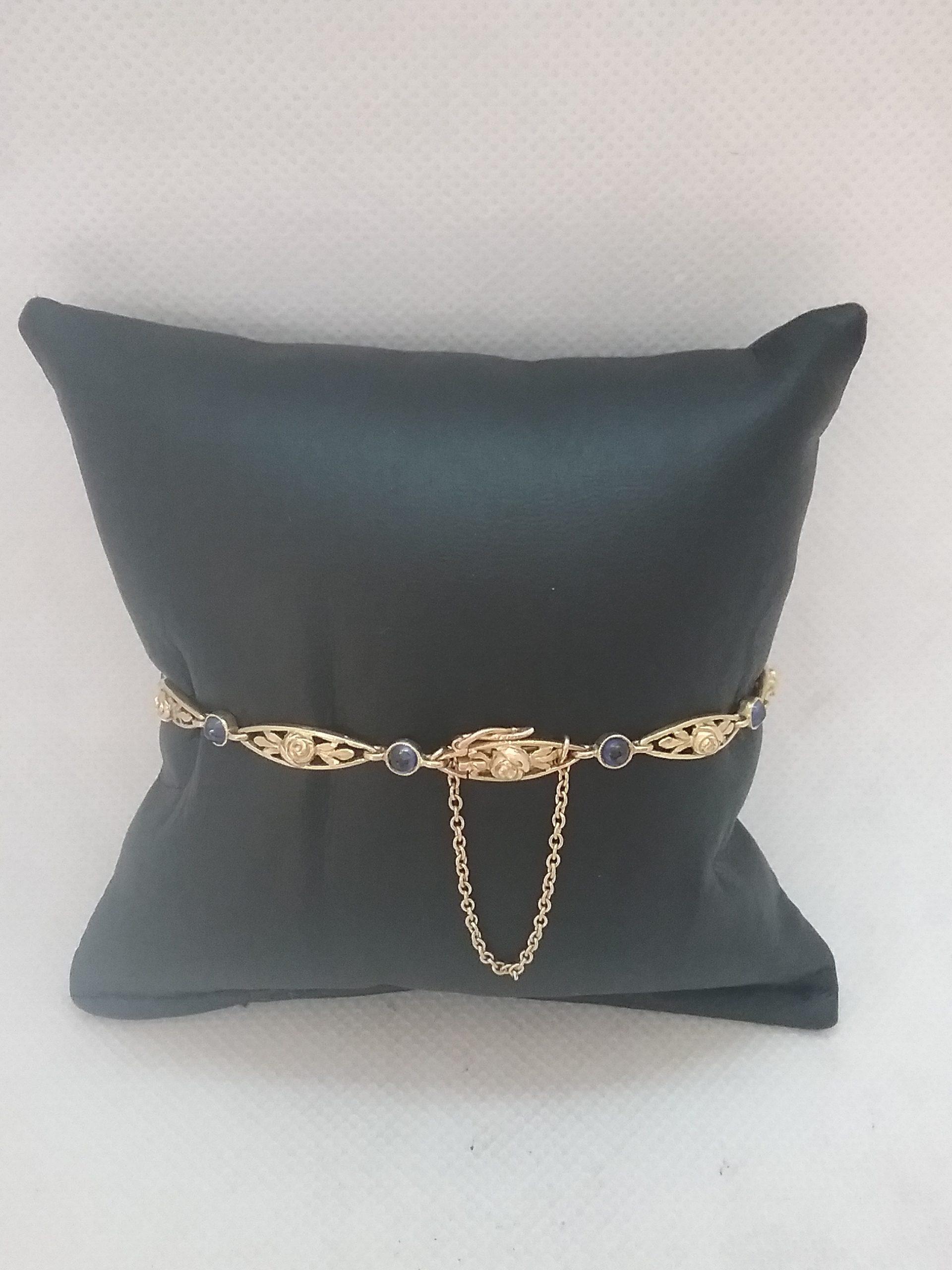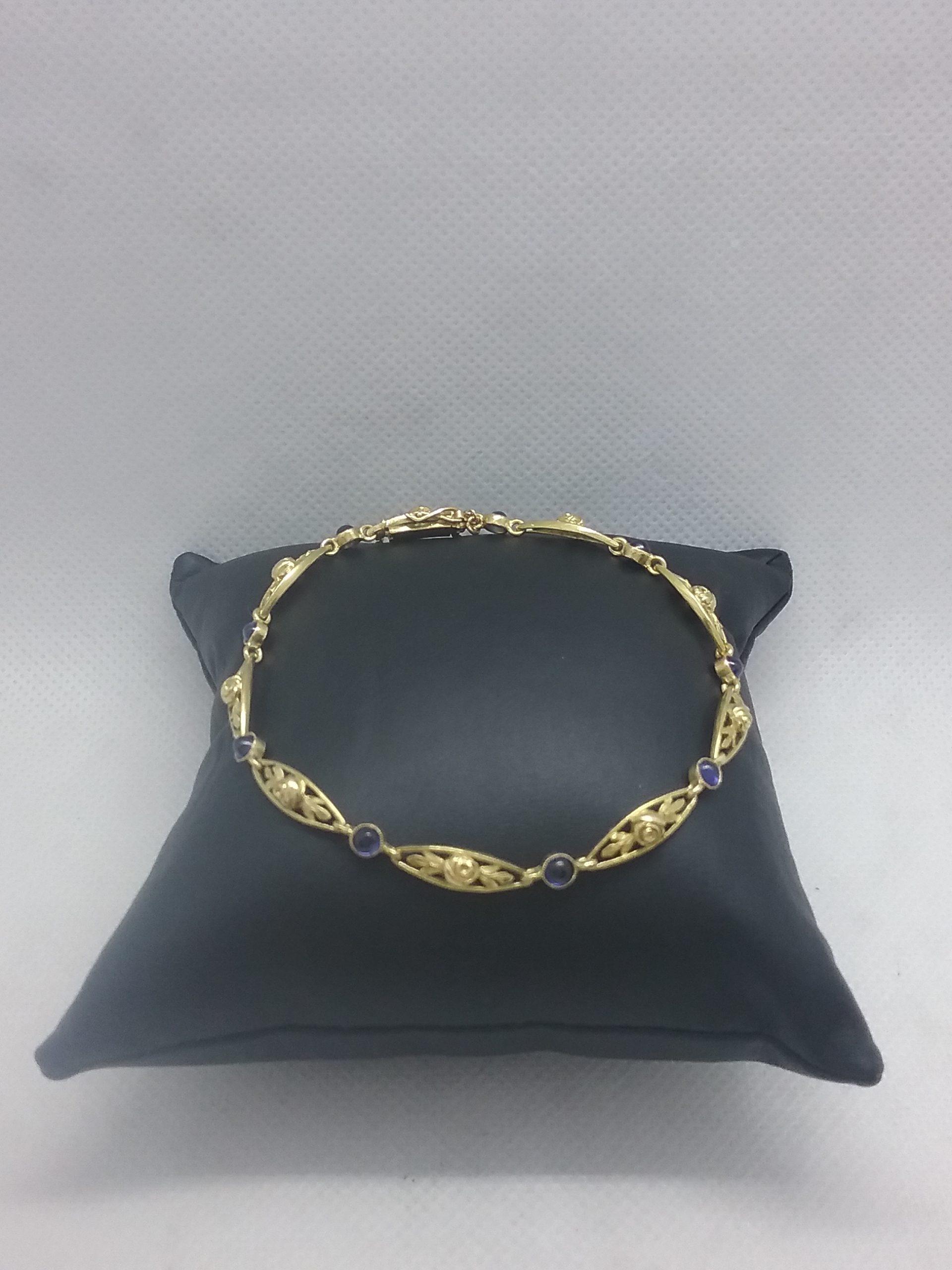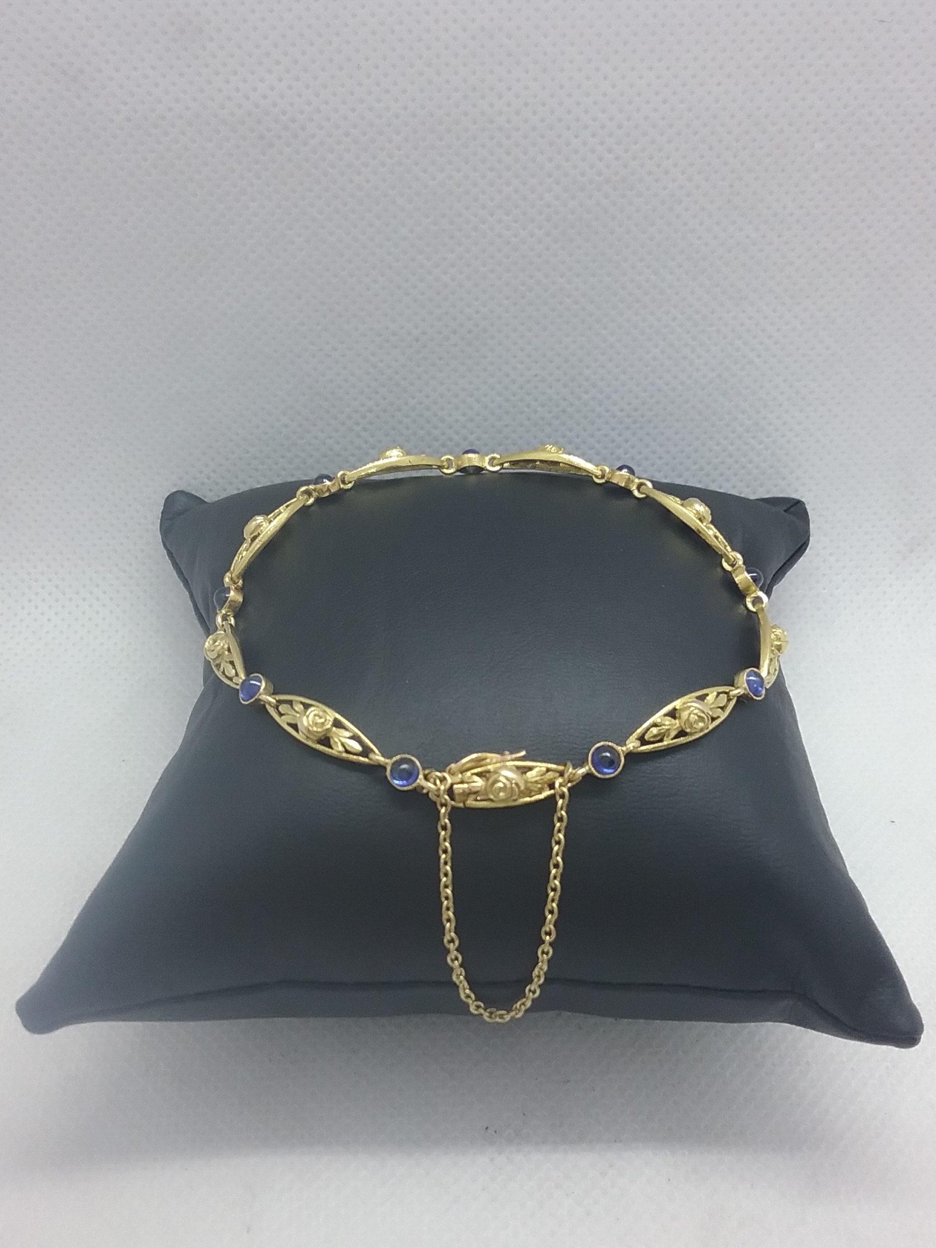 Bracelet en or jaune 750/1000e pesant 9,92 gr motifs ovales alternés de 9 saphirs taille cabochon