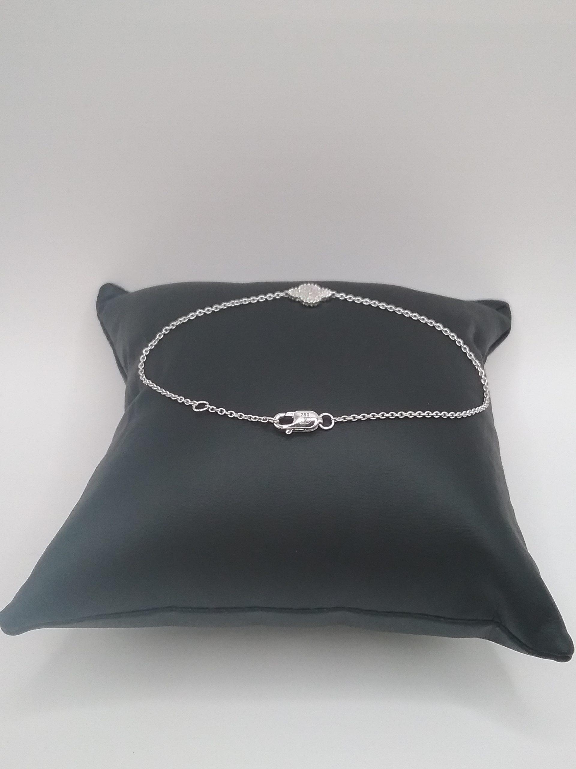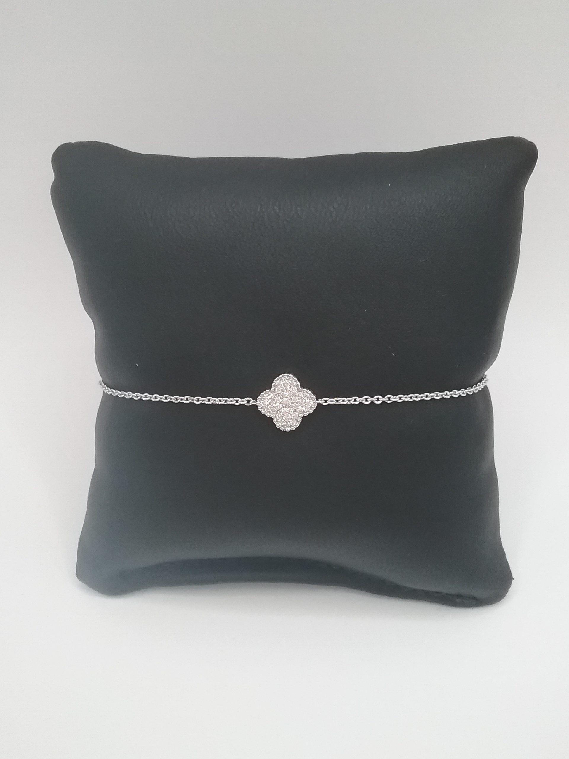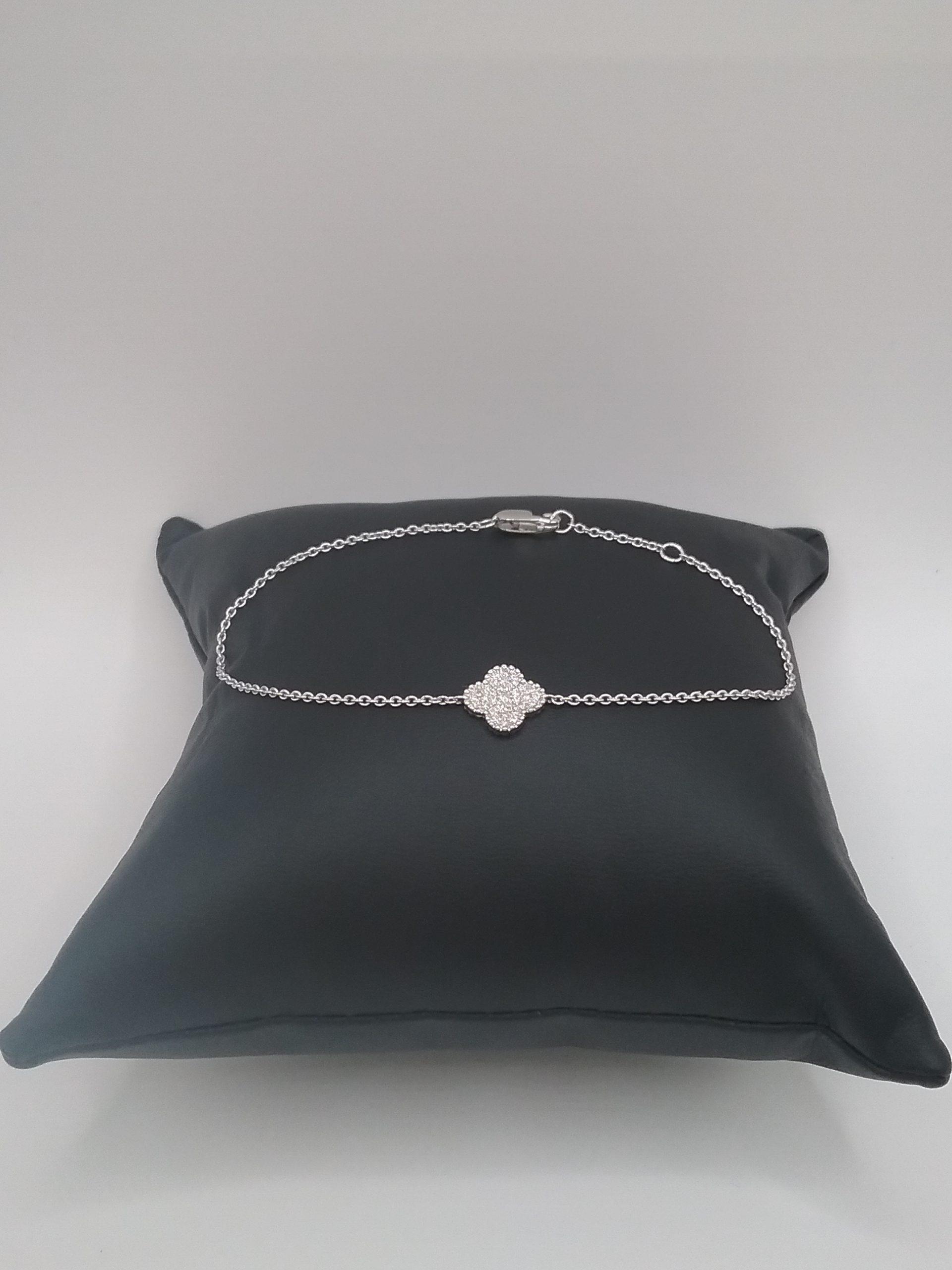 Bracelet en or blanc 750/1000e pesant 1,33 gr motif trèfle diamants d’un poids total de 0,13 ct