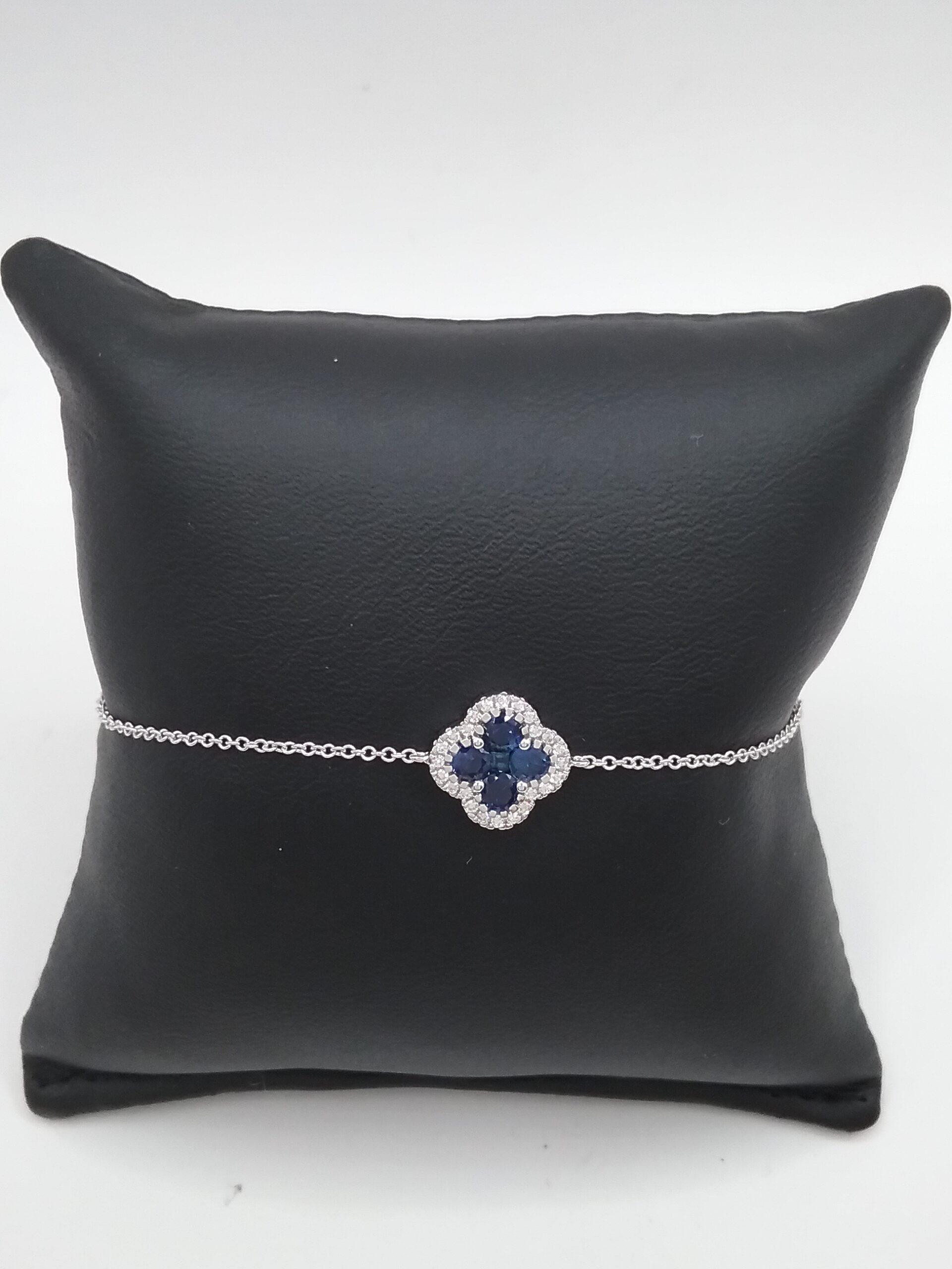Bracelet en or blanc 750/1000e pesant 1,43 gr motif trèfle serti de saphirs et diamants