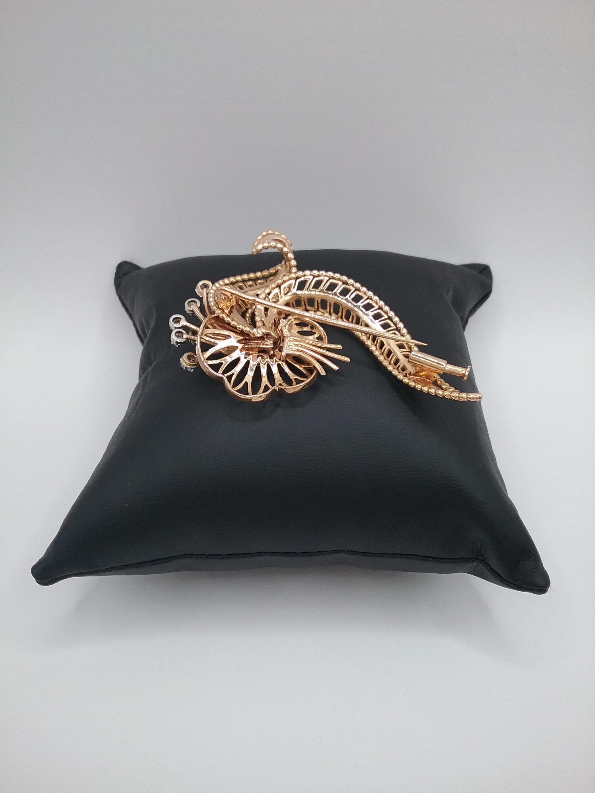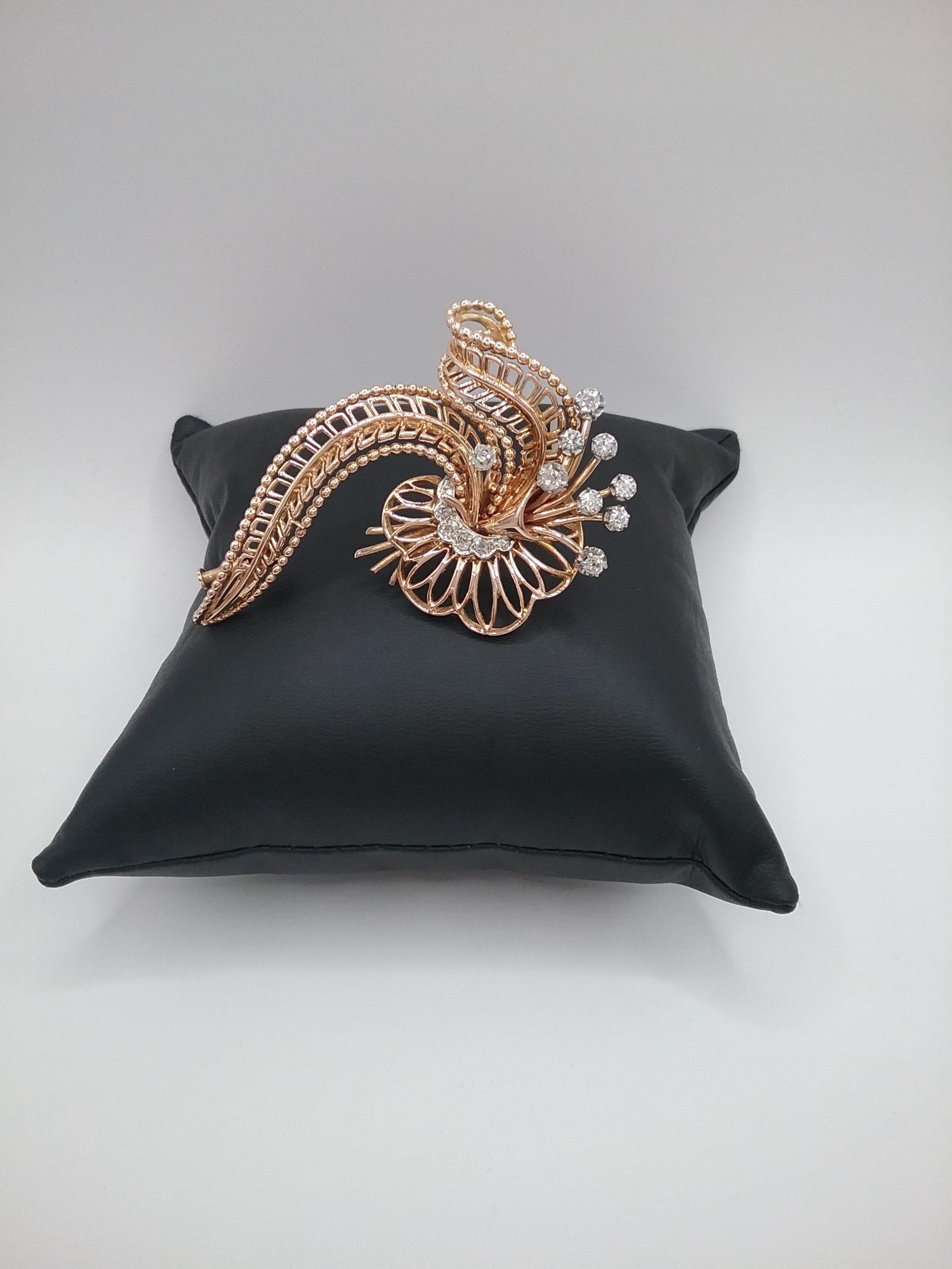 Broche en or rose et blanc 750/1000e pesant 15,53 gr sertie de 9 diamants d’un poids total de 0,45 ct