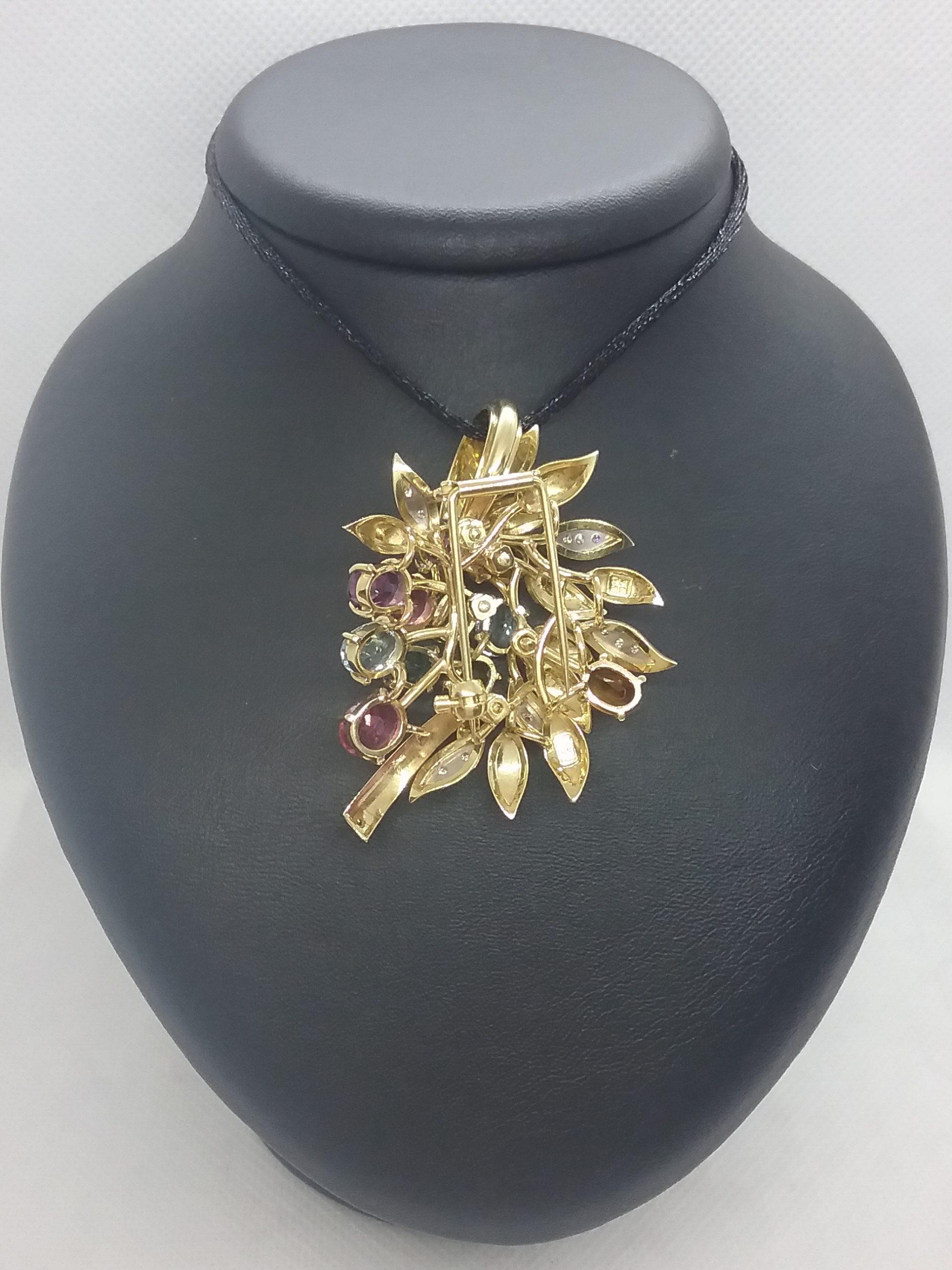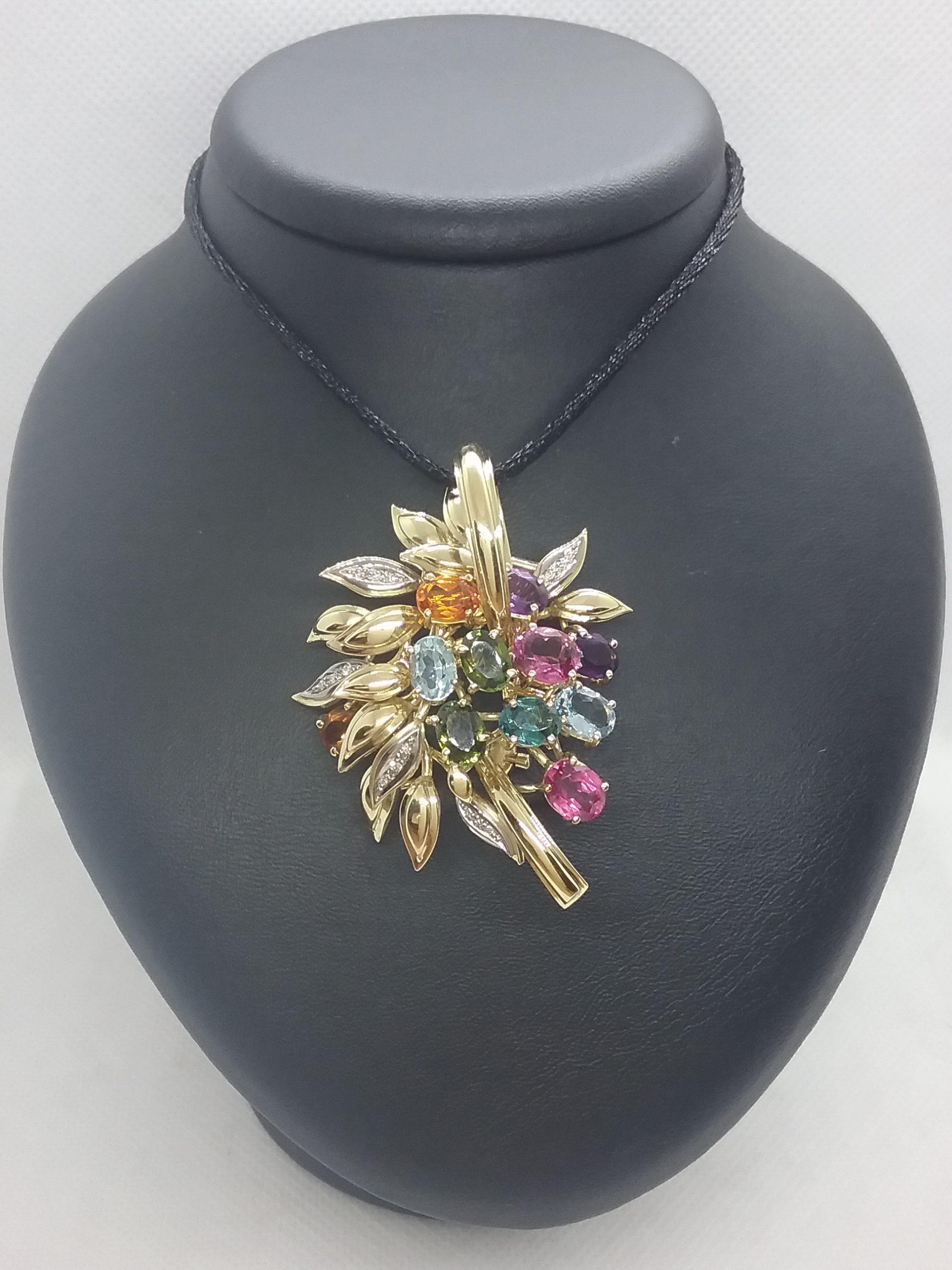 Broche et pendentif en or jaune 750/1000e pesant 23,80 gr sertie de pierres fines ( améthystes, tourmalines, citrines, aigue-marines ) et diamants