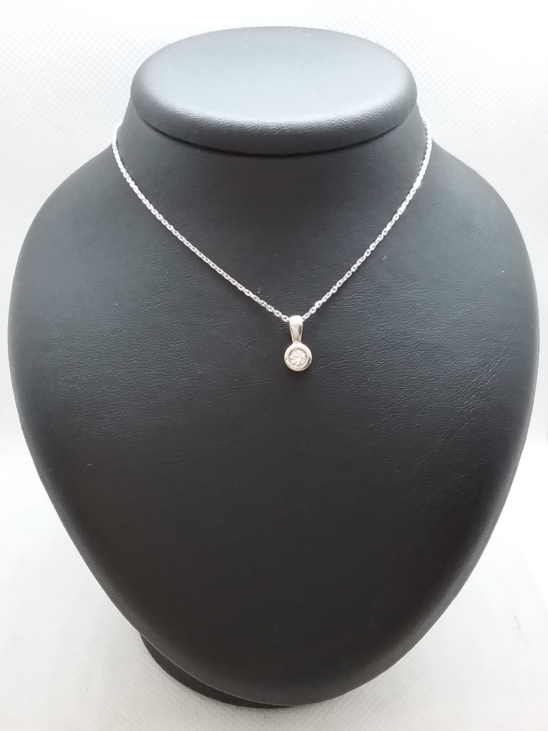 Pendentif en or blanc 750/1000e pesant 0,68 gr serti d’un diamant serti clos de 0,17 ct