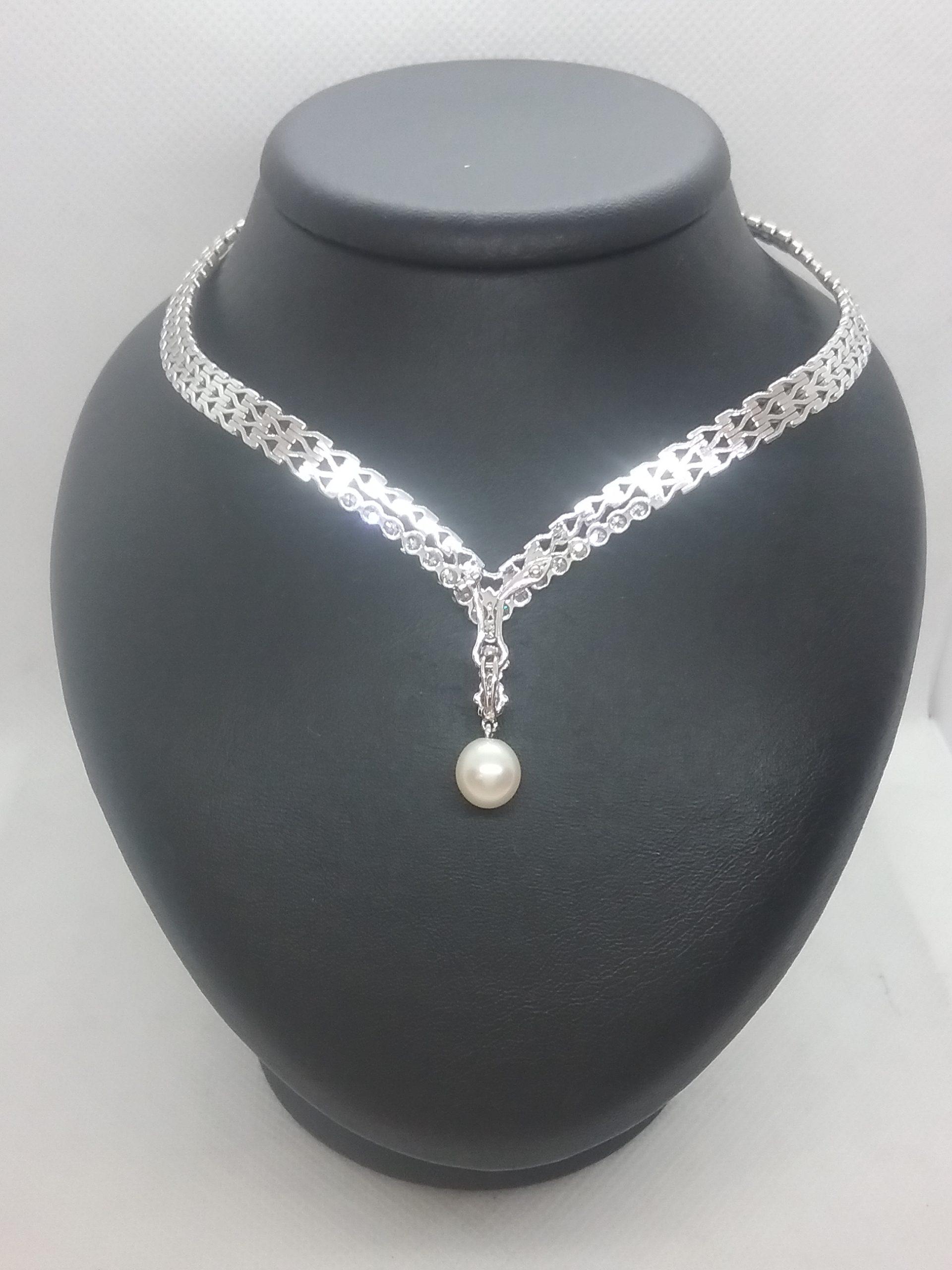pendentif amovible perle de culture akoya de 7,5 mm et diamants