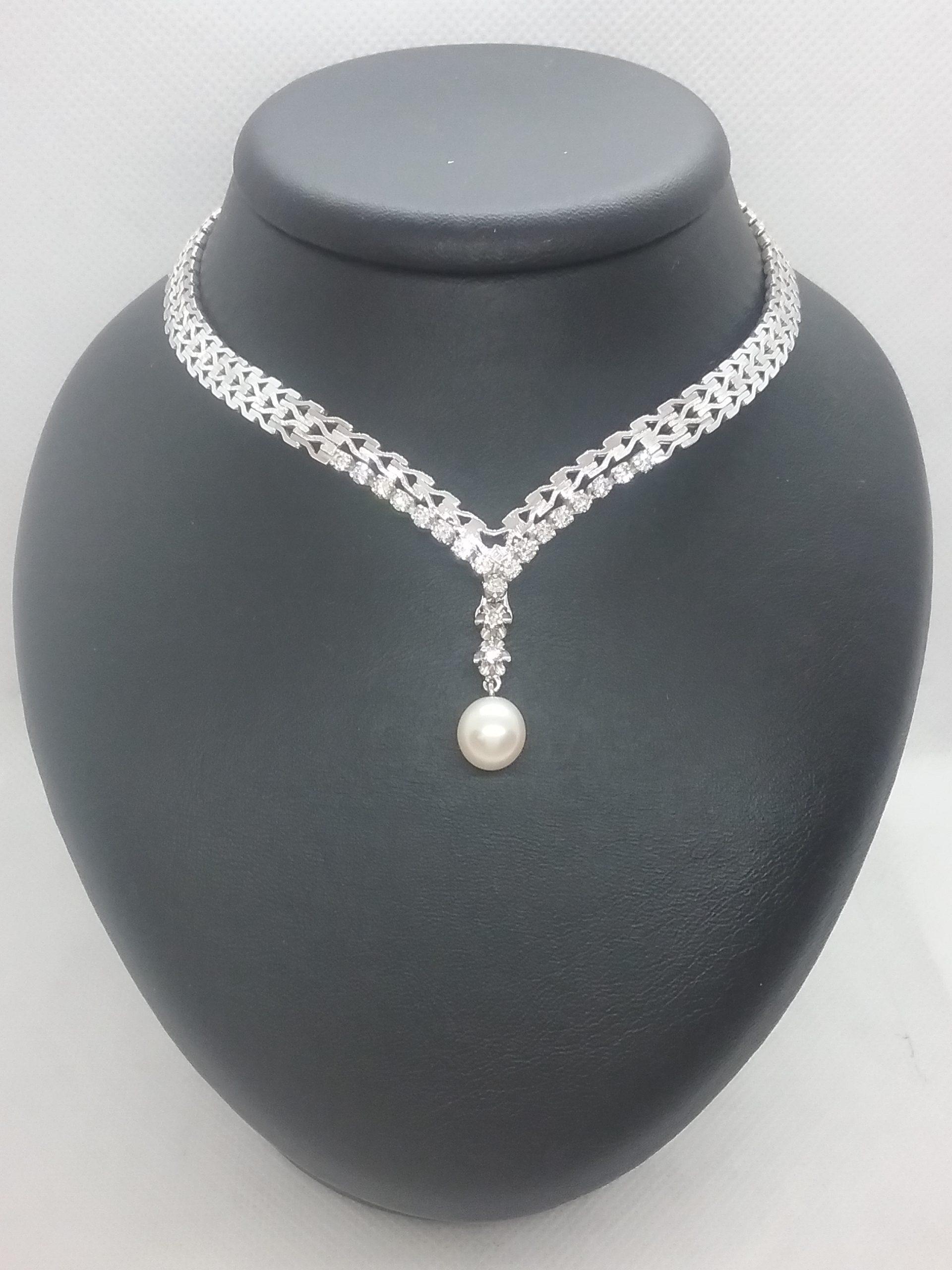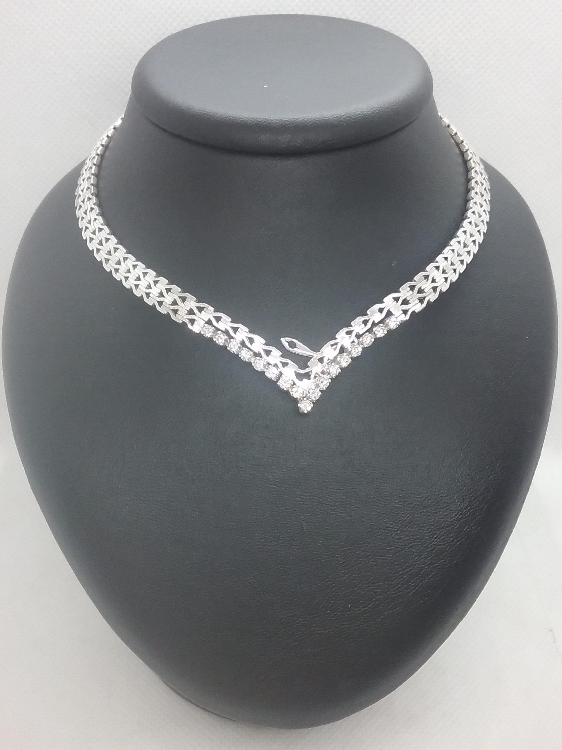 Collier en or blanc 750/1000e pesant 34,67 gr serti de 17 diamants d’un poids total de 0,80 ct