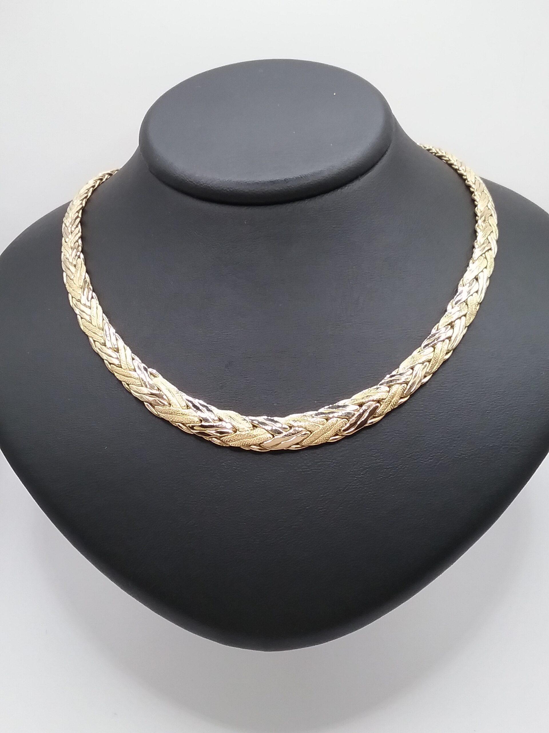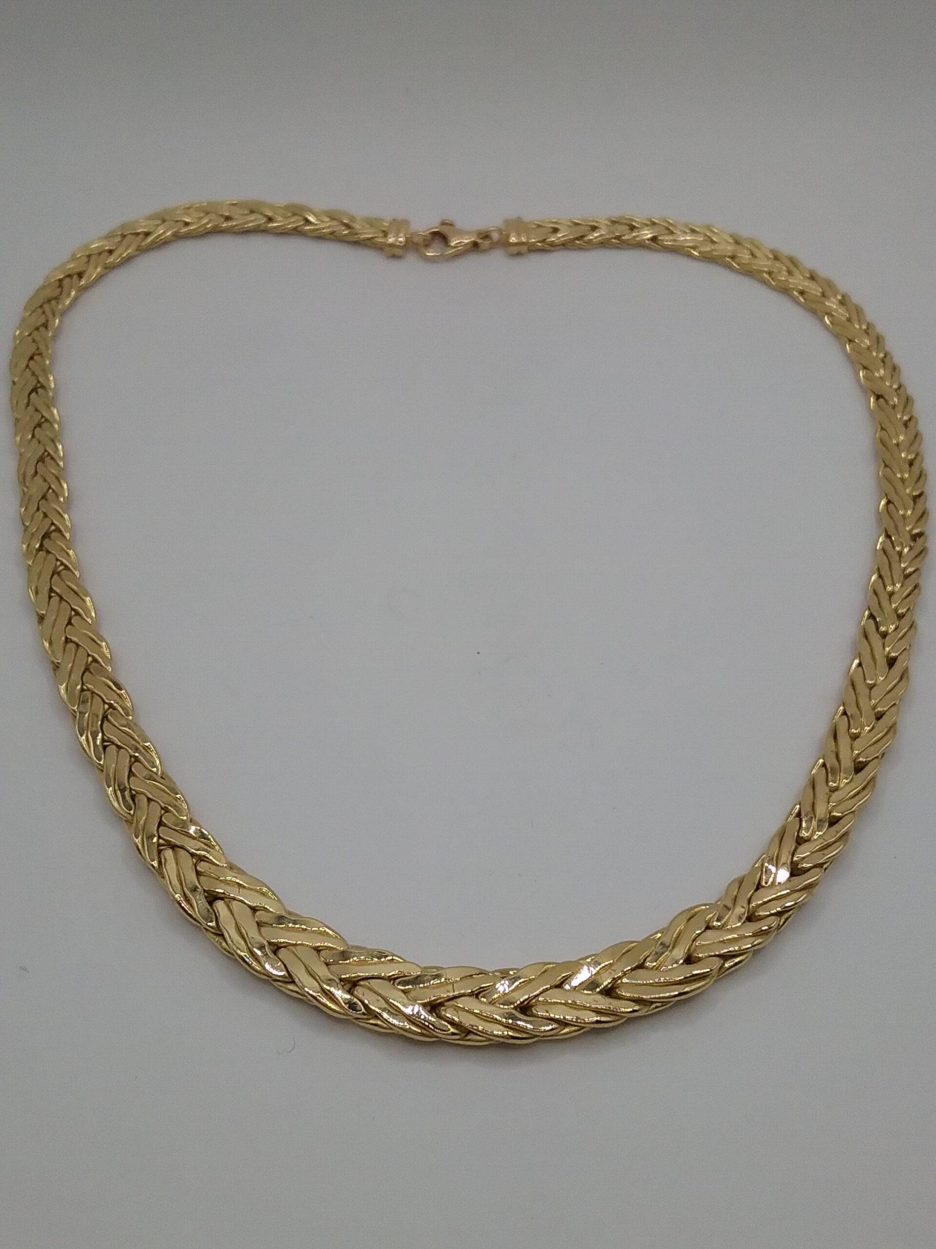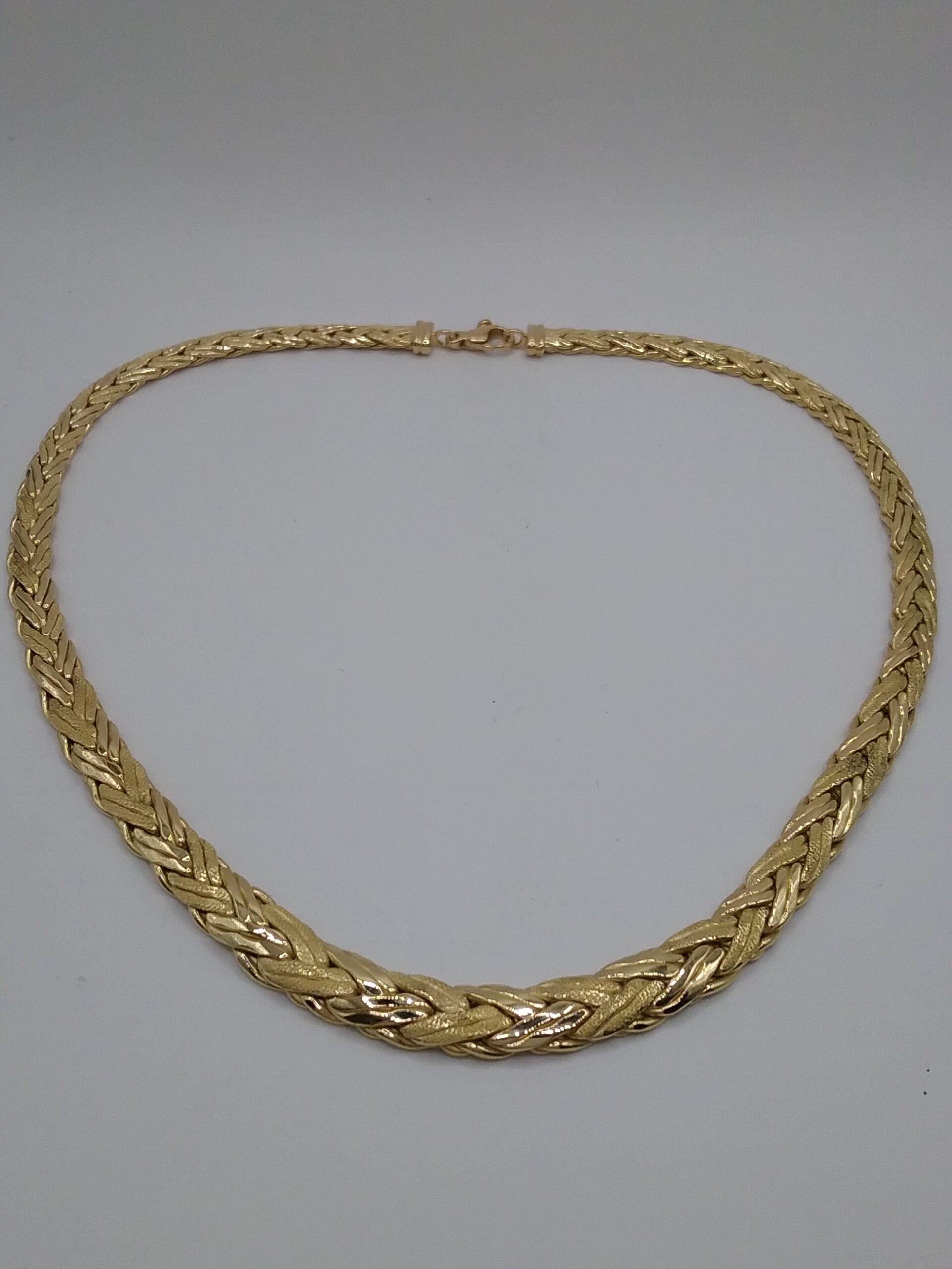 Collier en or jaune 750/1000e pesant 30,38 gr maille palmier double en chute aspect mat et brillant