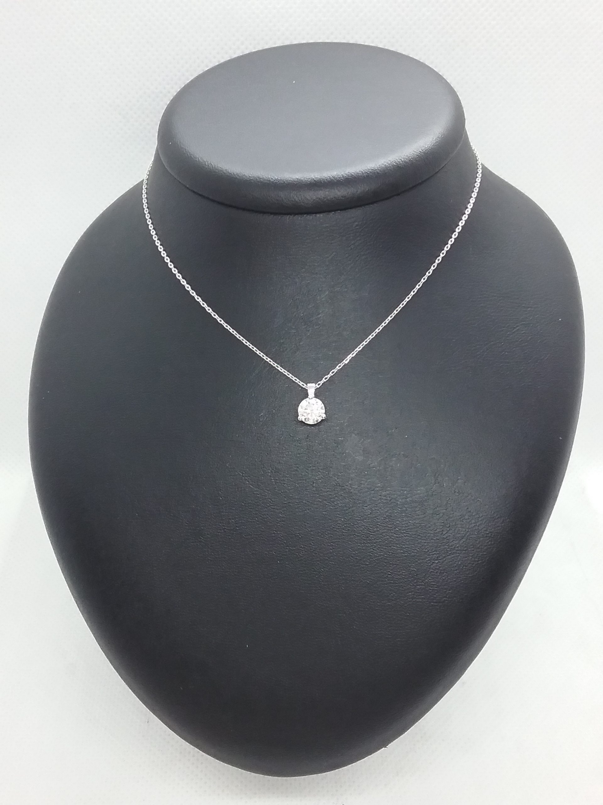 Collier pendentif en or blanc 750/1000e pesant 1,50 gr serti d’un diamant de 0,52 GSI2 coulissant sur chaîne de 42 cm avec anneau intermédiaire à 40 cm