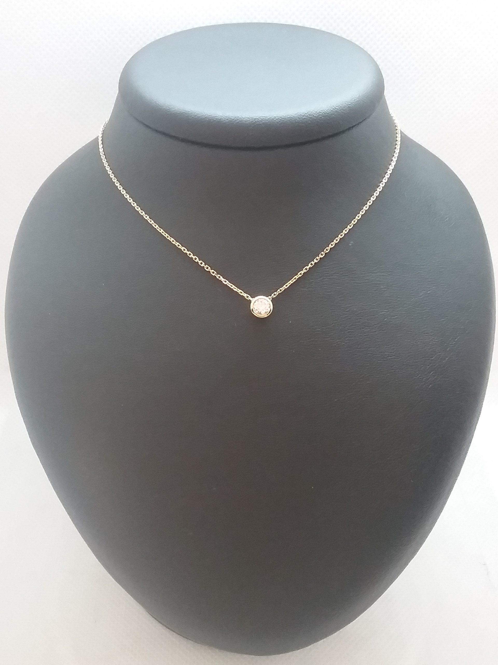 Collier pendentif en or jaune 750/1000e pesant 2,43 gr avec diamant de 0,16 ct serti clos coulissant sur chaîne de 42 cm avec 3 anneaux de réglage