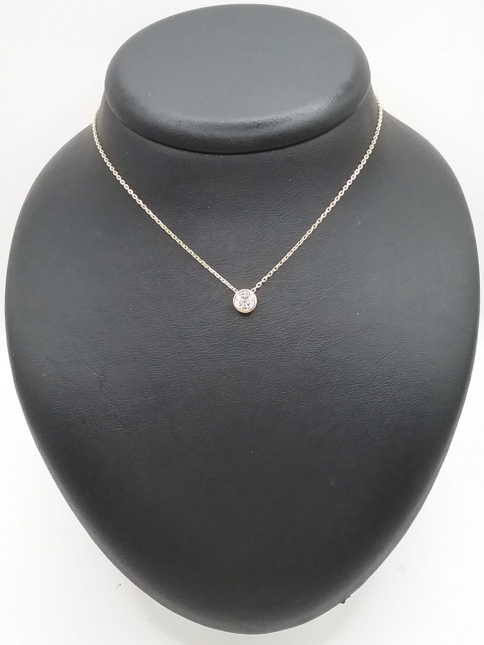 Collier pendentif en or jaune 750/1000e pesant 2,43 gr avec diamant de 0,25 ct serti clos coulissant sur chaîne de 42 cm avec 3 anneaux de réglage