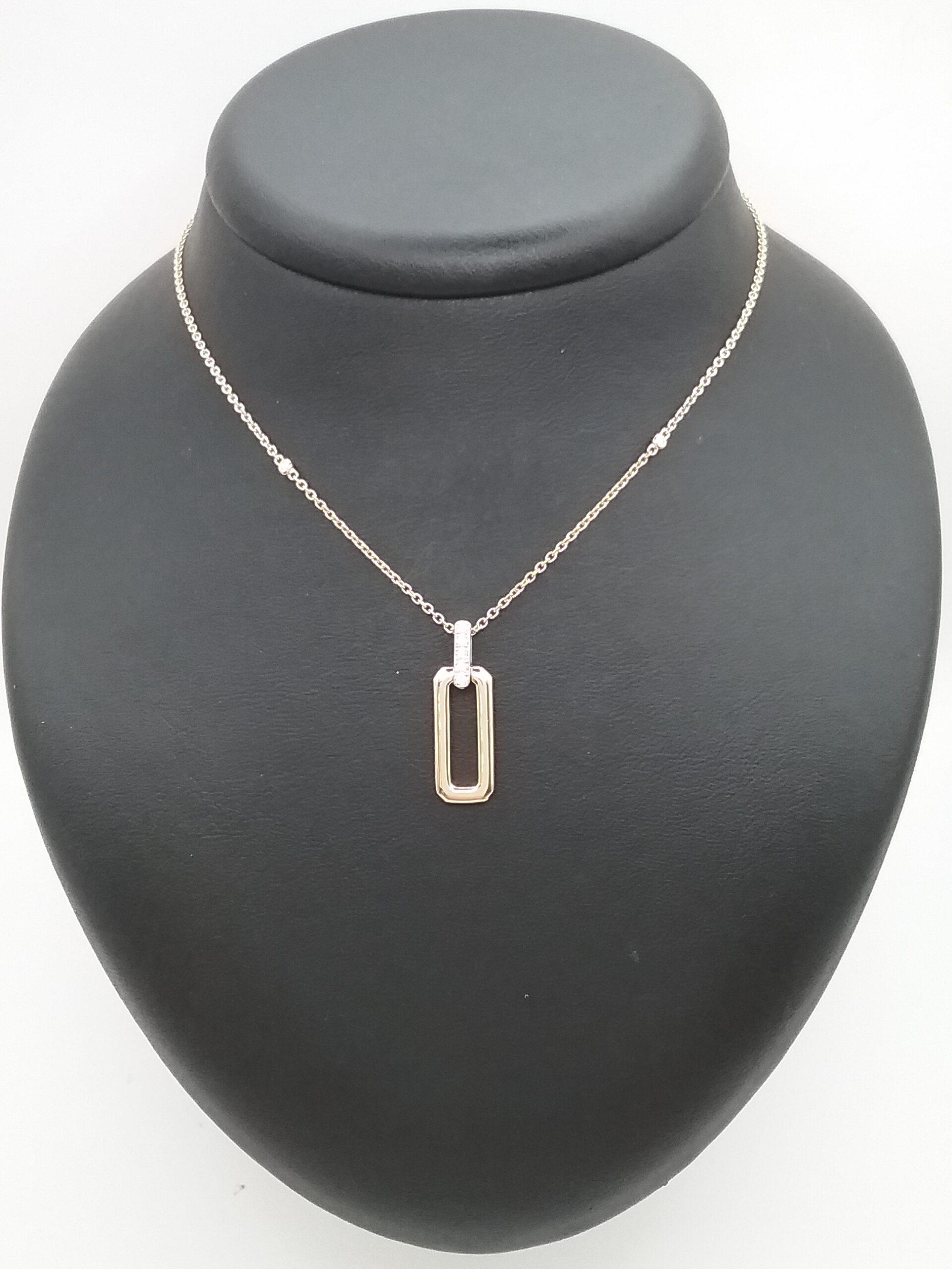 Collier en or jaune 750/1000e pesant 3,70 gr pendentif coulissant rectangulaire serti de diamants pesants 0,05 ct