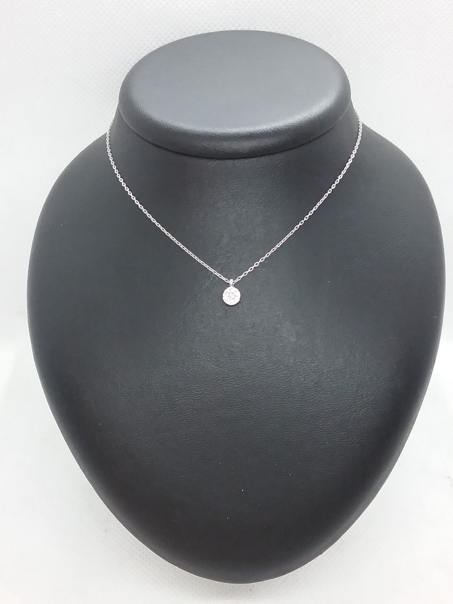 Collier pendentif en or blanc 750/1000e pesant 1,60 gr avec motif serti de diamants d’un poids total de 0,10 ct
