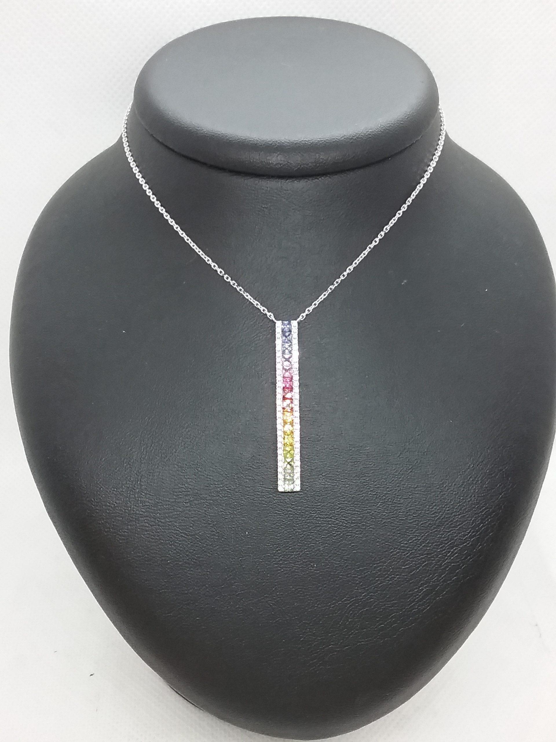 barrette verticale de 33 mm sertie d’1,10 ct de saphirs multicolores et de 0,35 ct de diamant